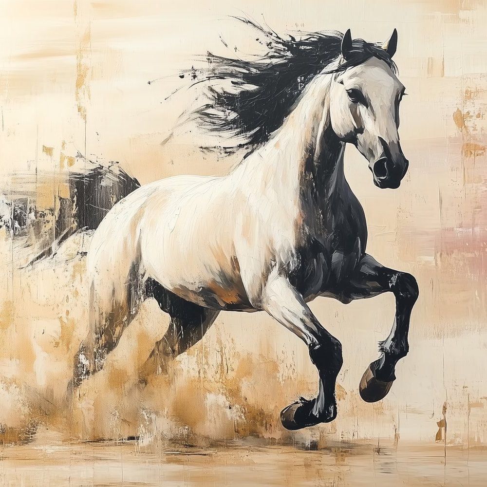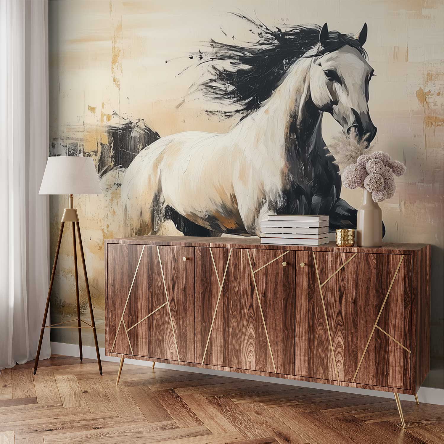 Terug naar collectie / Behang / Dynamische Zwart-Witte Paardensprong behang