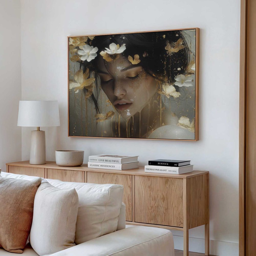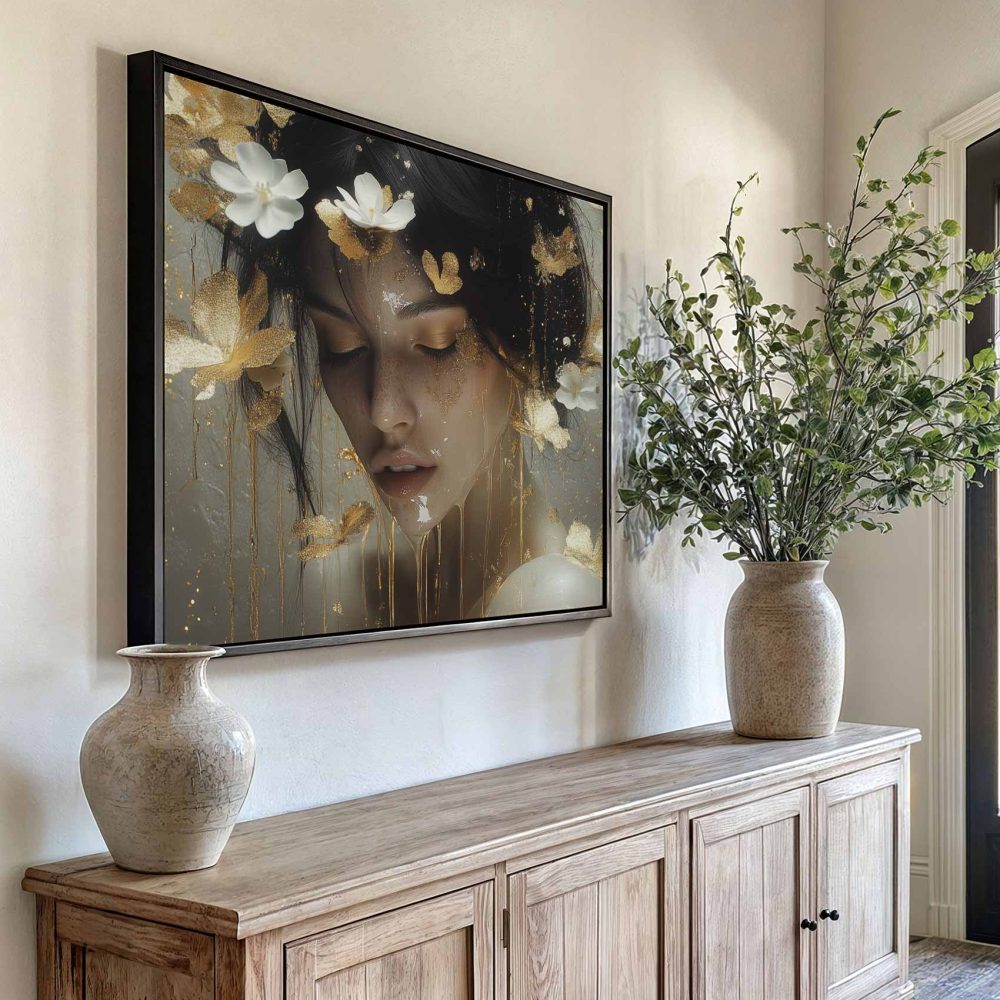 Terug naar collectie / Schilderijen / Bloemen Schilderij / Elegante bloemenkroon dame