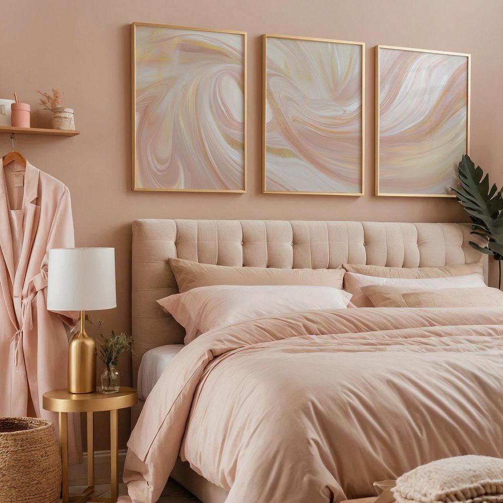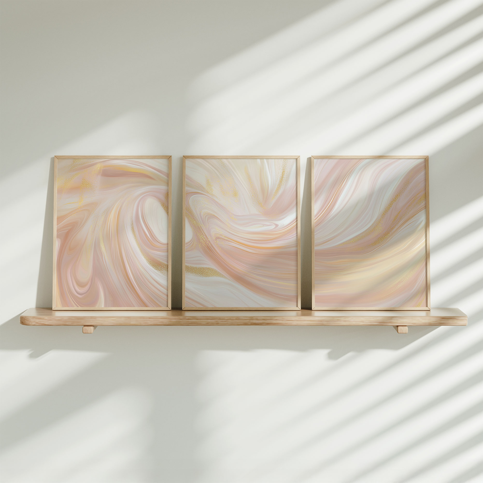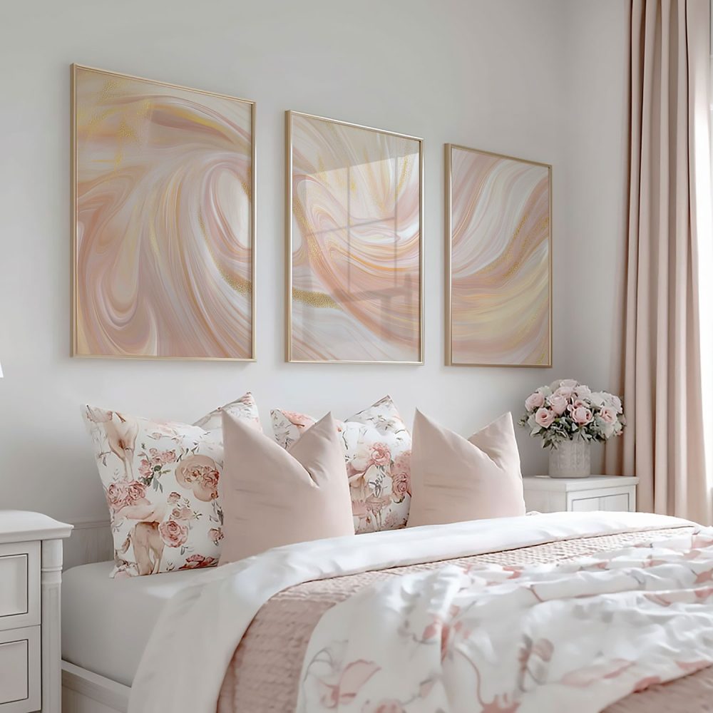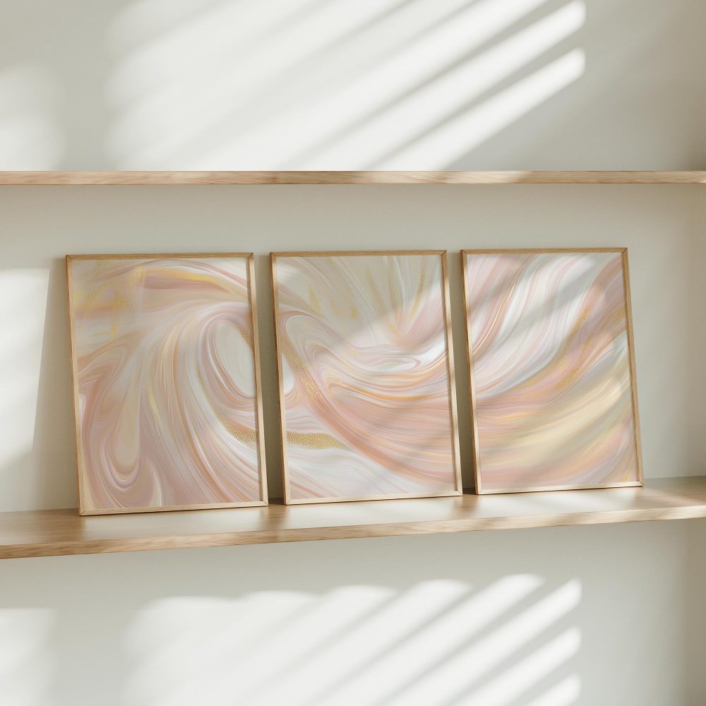 Elegante Roze Swirls met Gouden Accenten – Stijlvolle Wanddecoratie