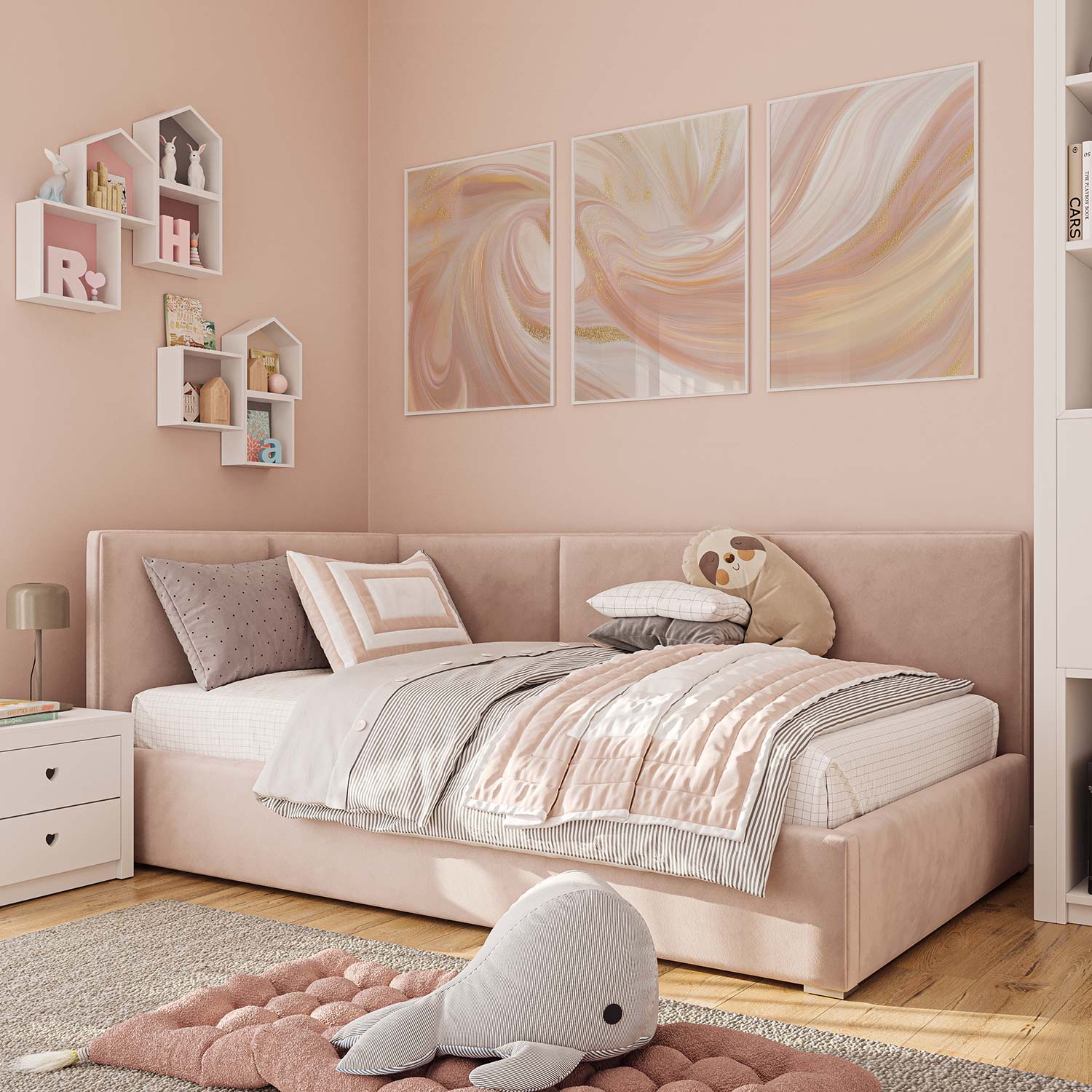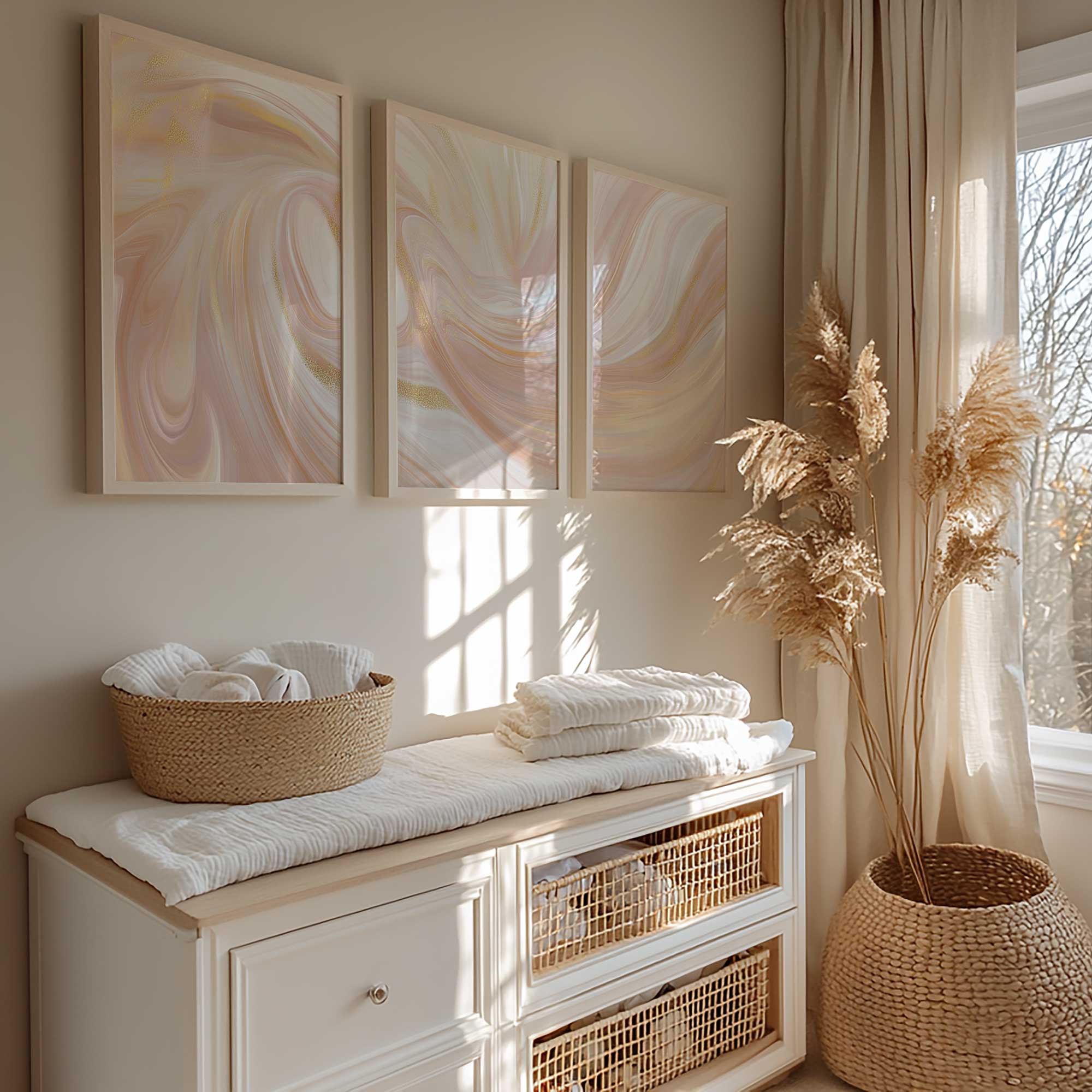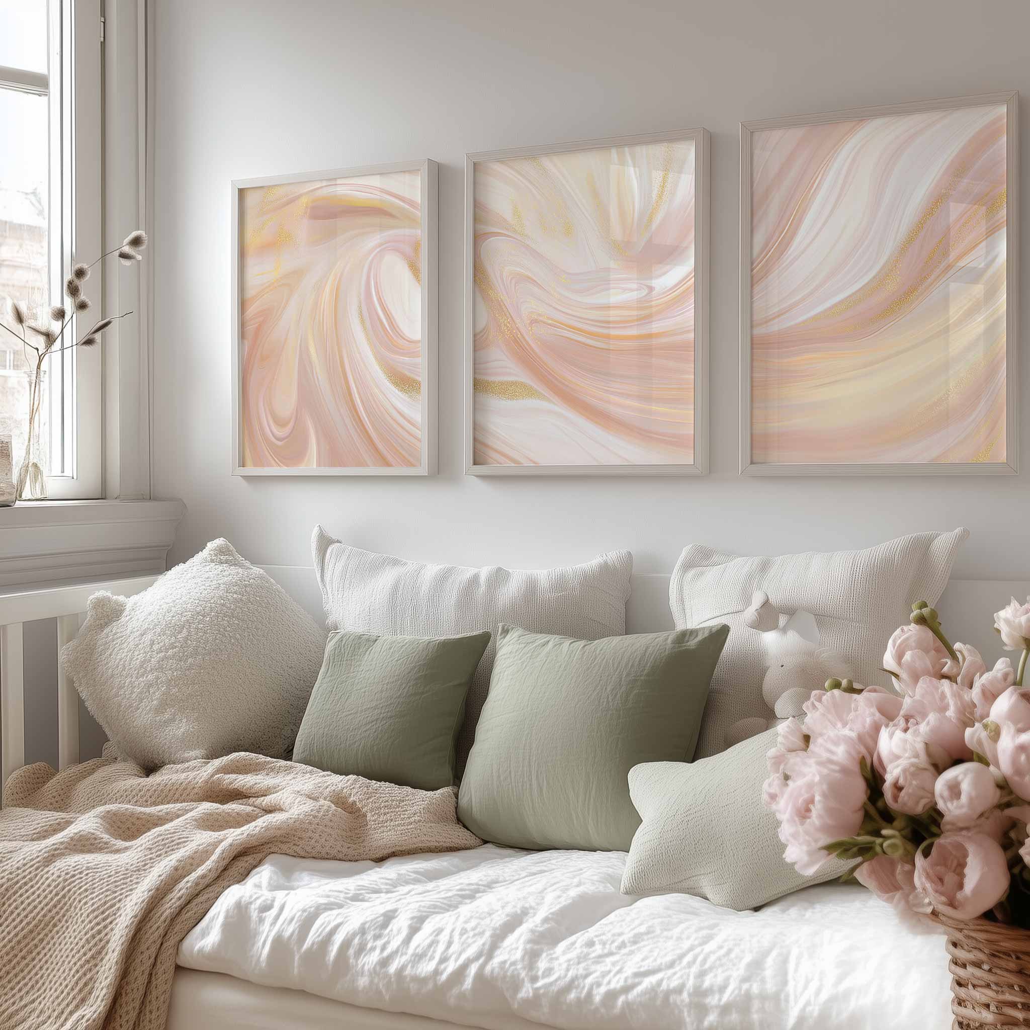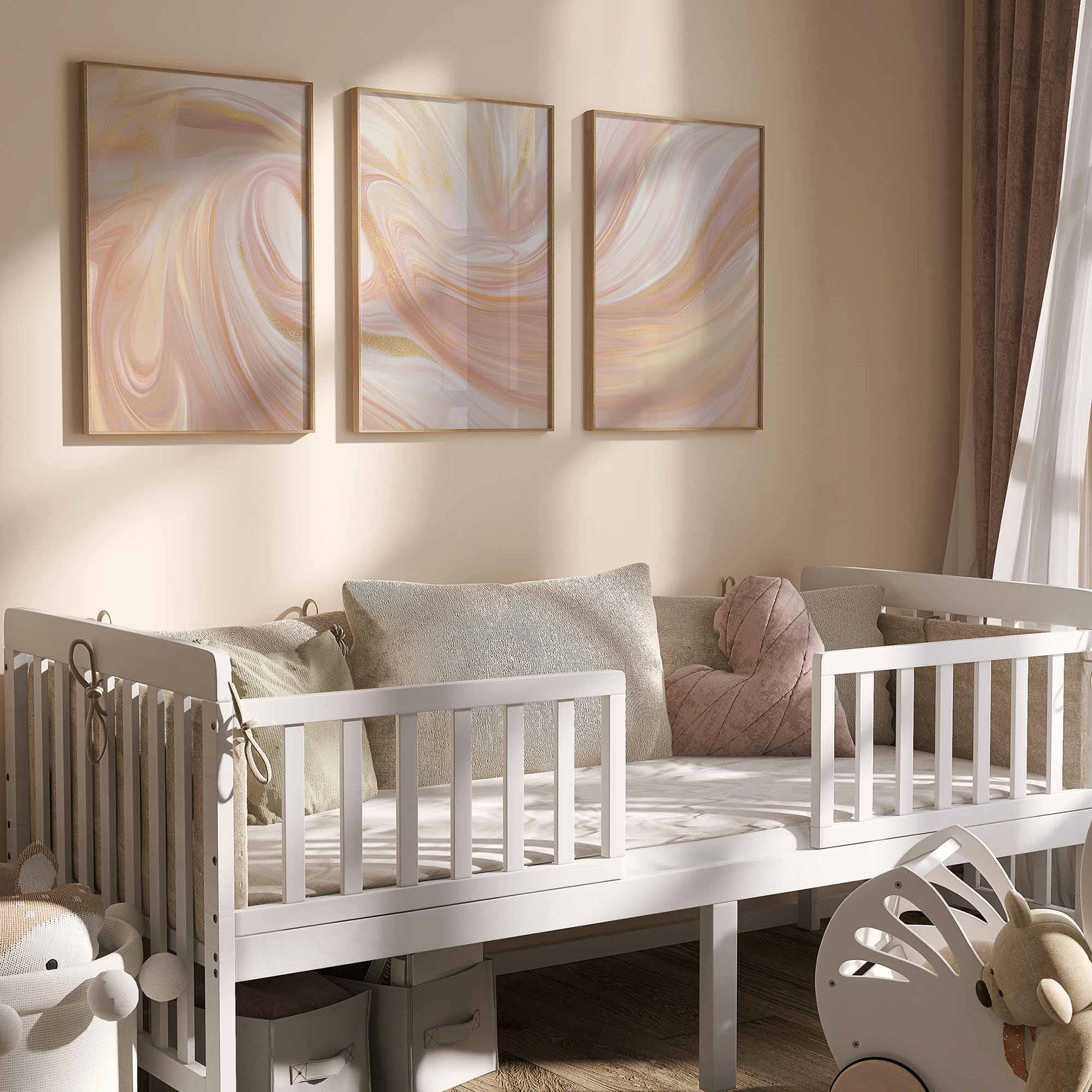 Terug naar collectie / Kinderkamer posters / Elegante Roze Swirls met Gouden Accenten – Stijlvolle Wanddecoratie