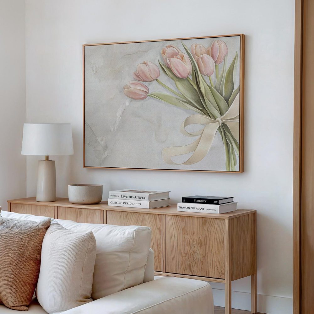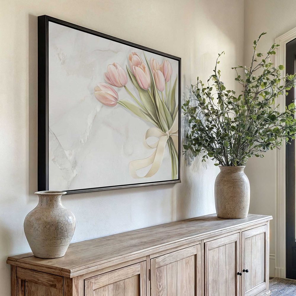 Terug naar collectie / Schilderijen / Bloemen Schilderij / Elegante roze tulpenboeket