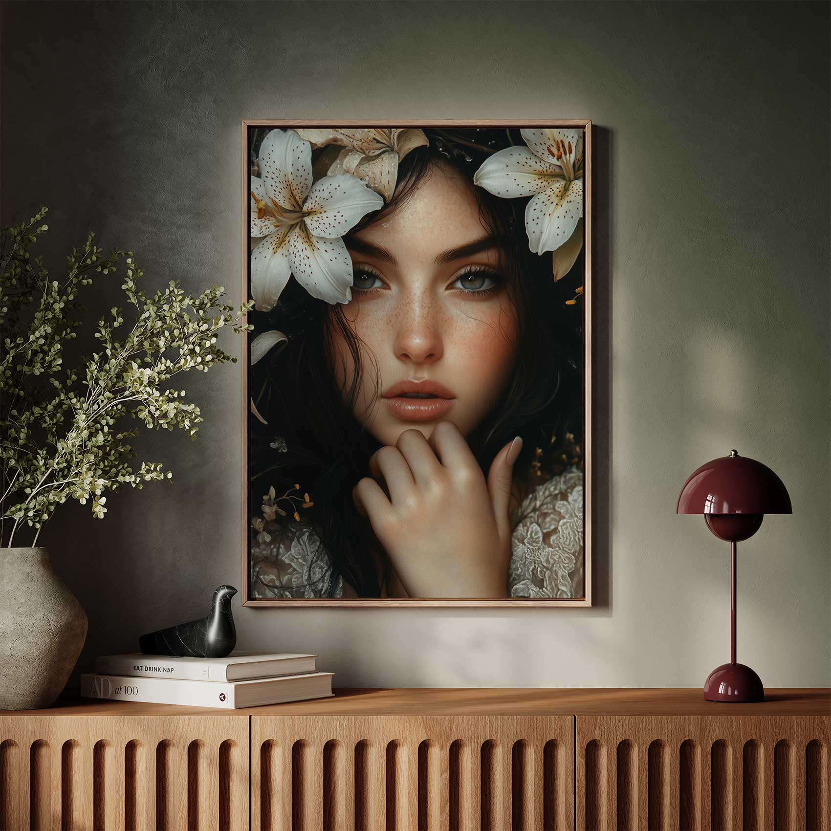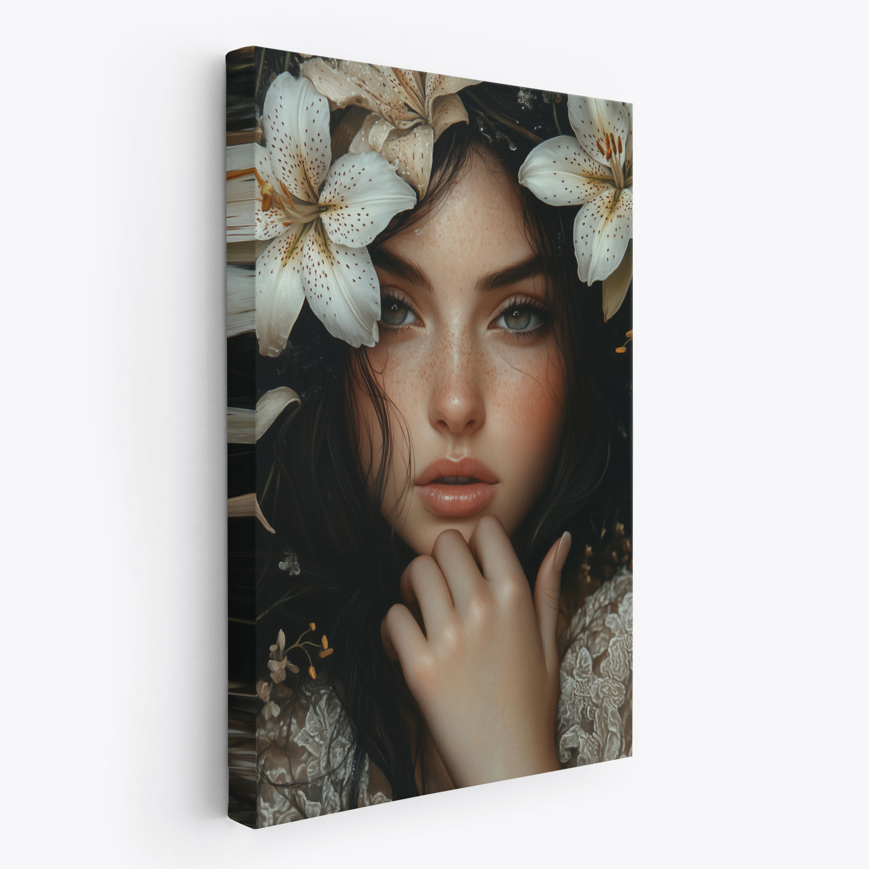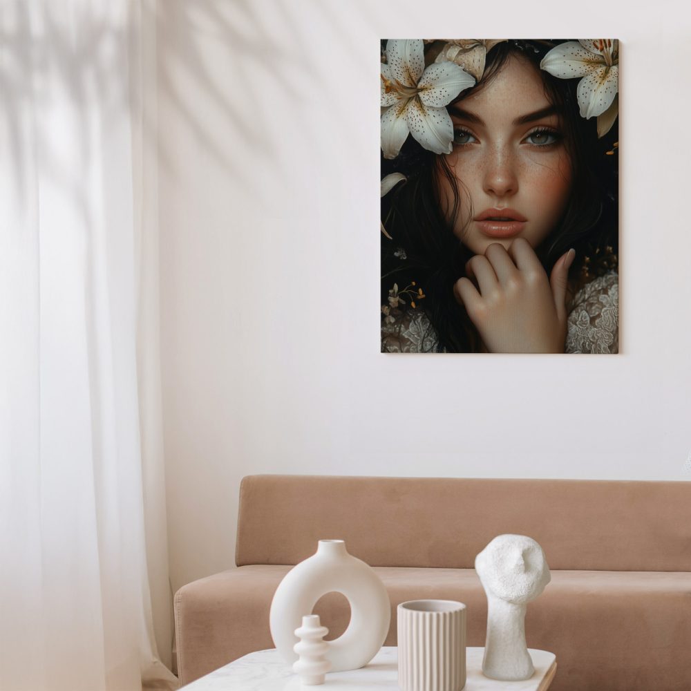 Terug naar collectie / Schilderijen / Bloemen Schilderij / Elegante vrouw met bloemenkroon