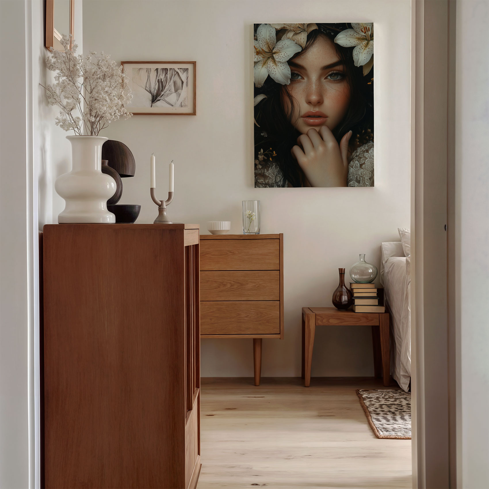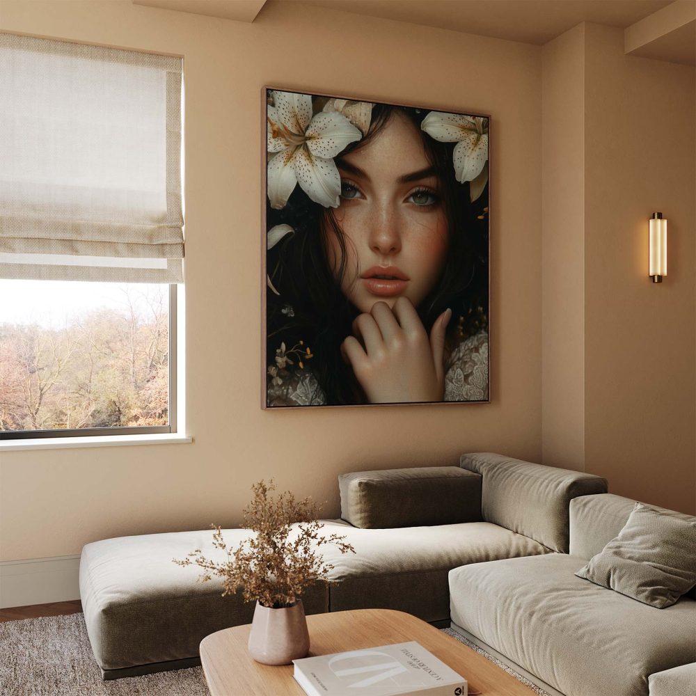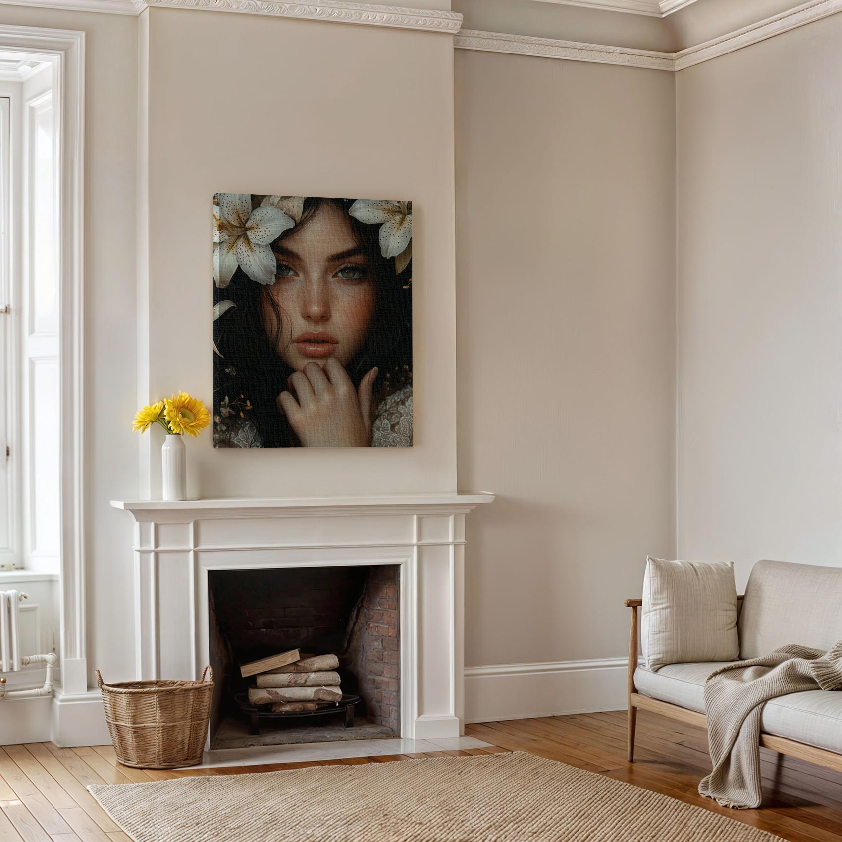 Terug naar collectie / Schilderijen / Bloemen Schilderij / Elegante vrouw met bloemenkroon