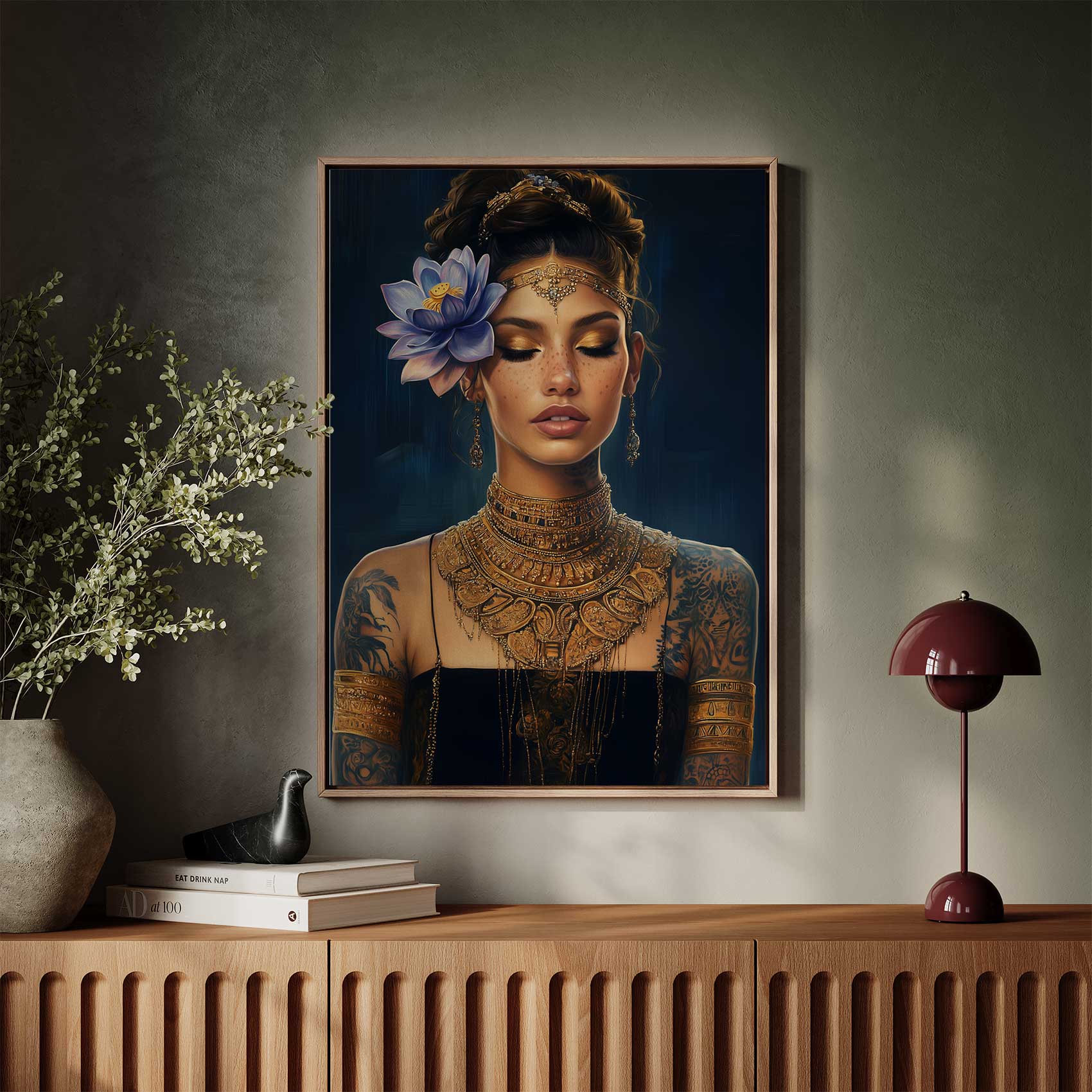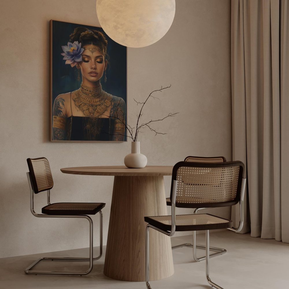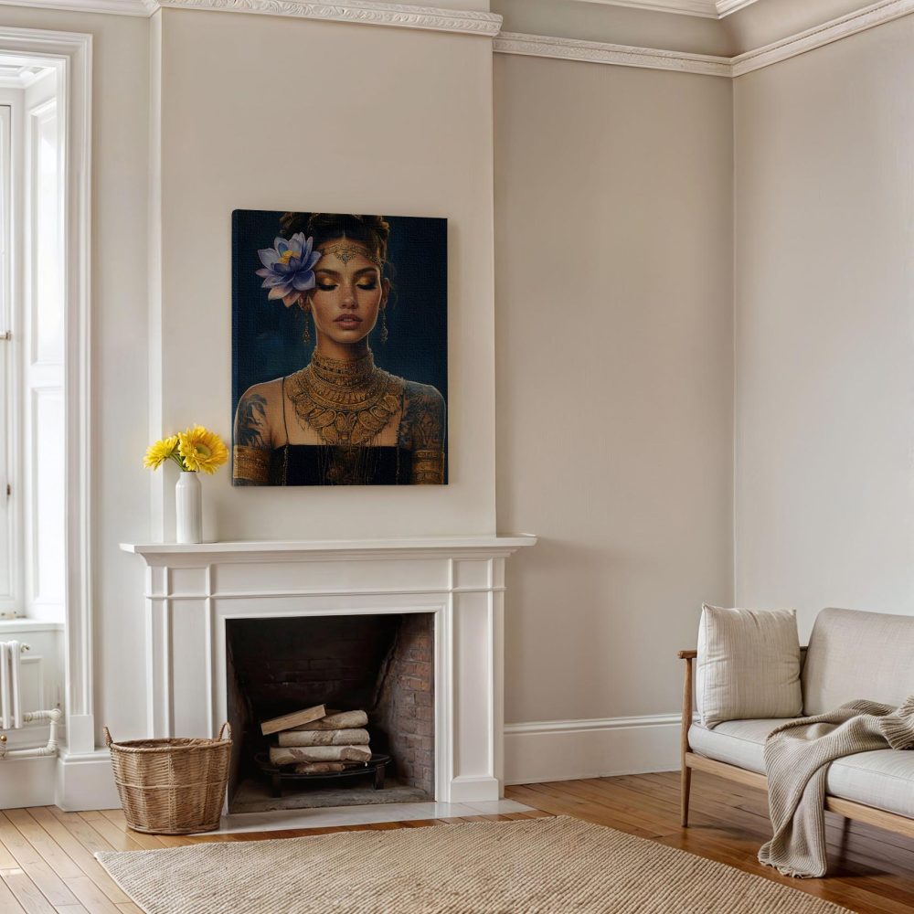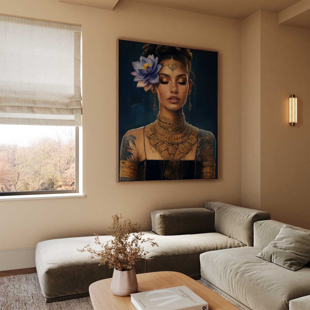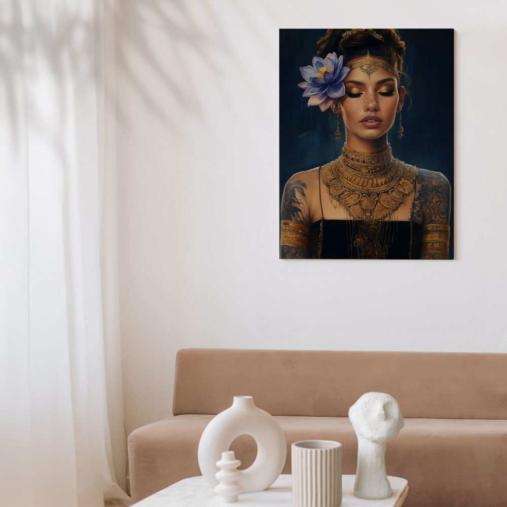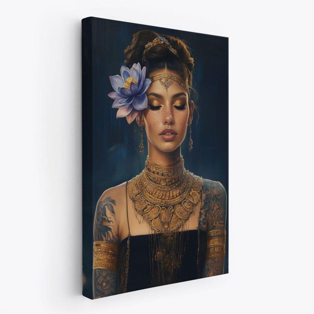 Terug naar collectie / Schilderijen / Bloemen Schilderij / Elegante vrouw met gouden sieraden