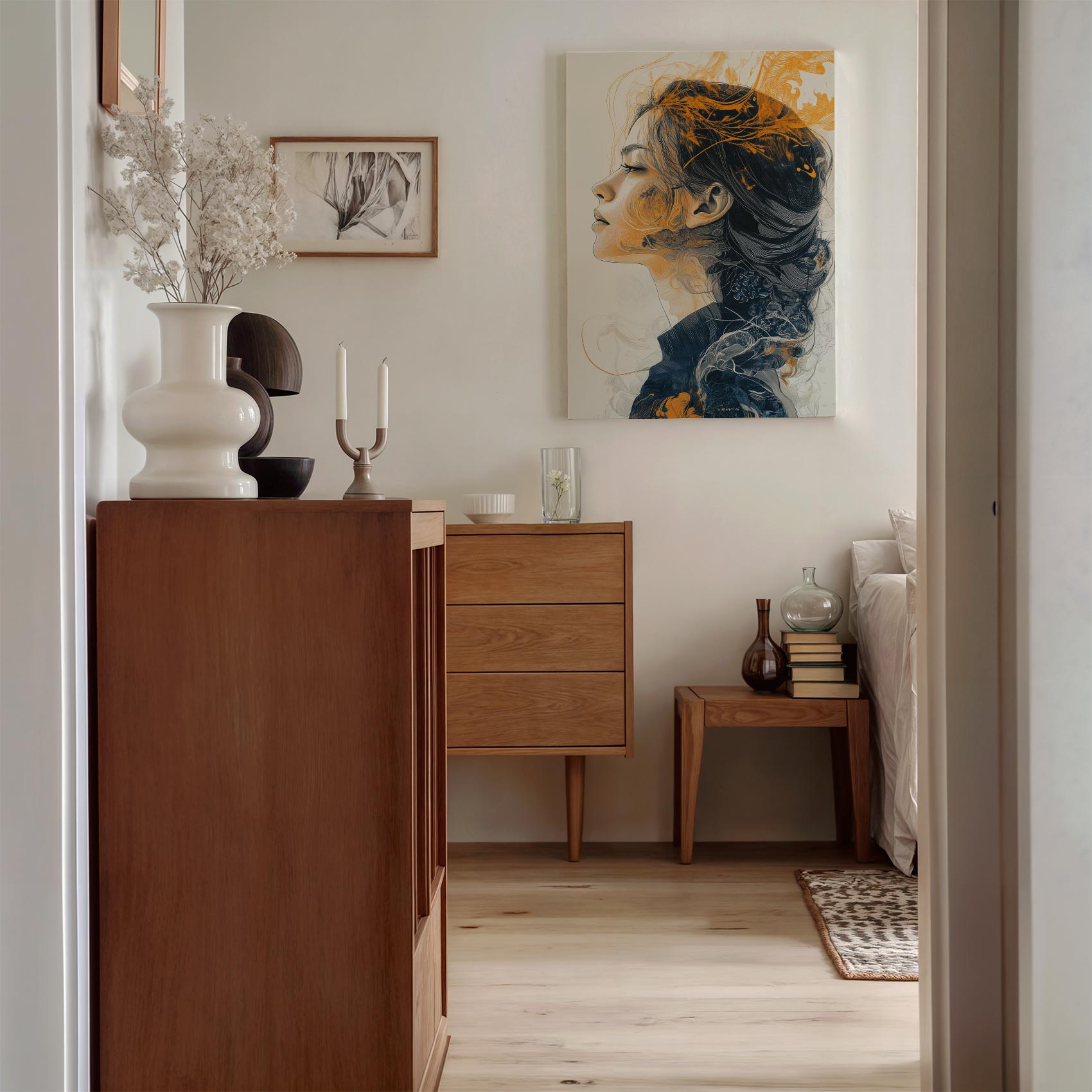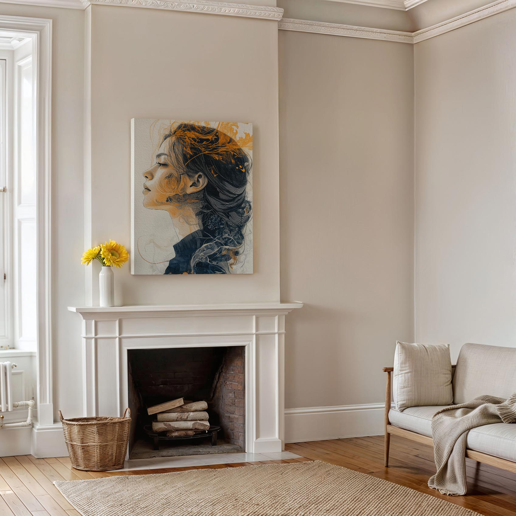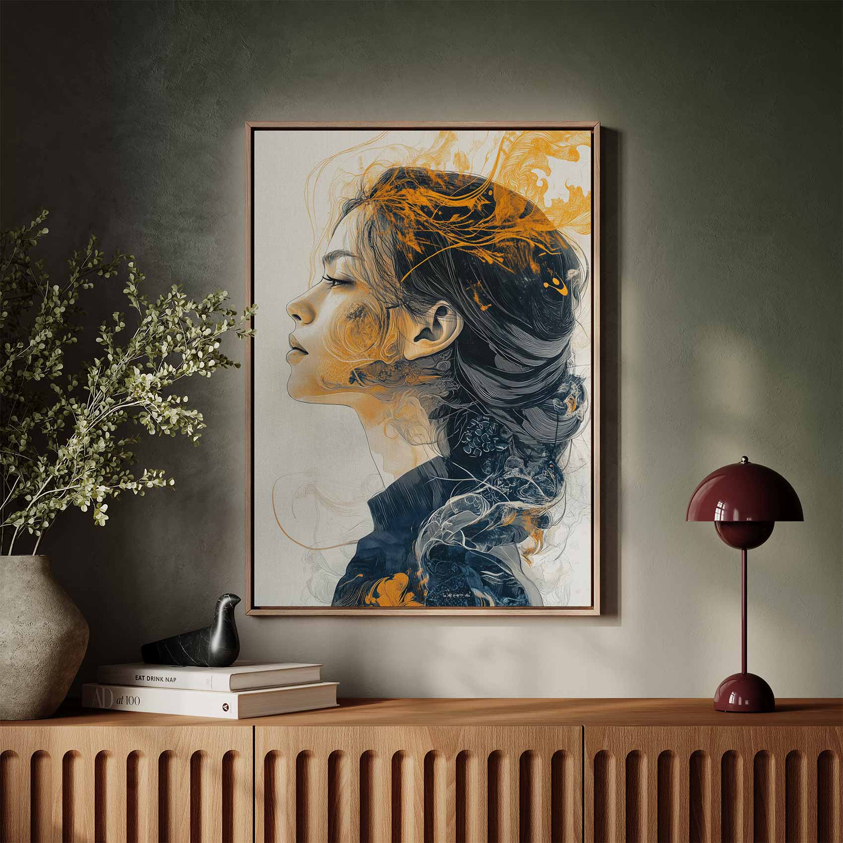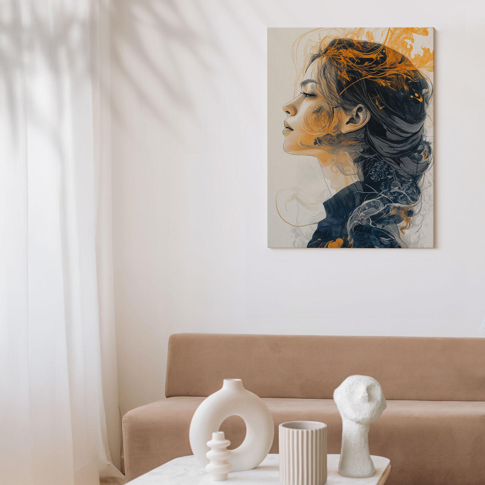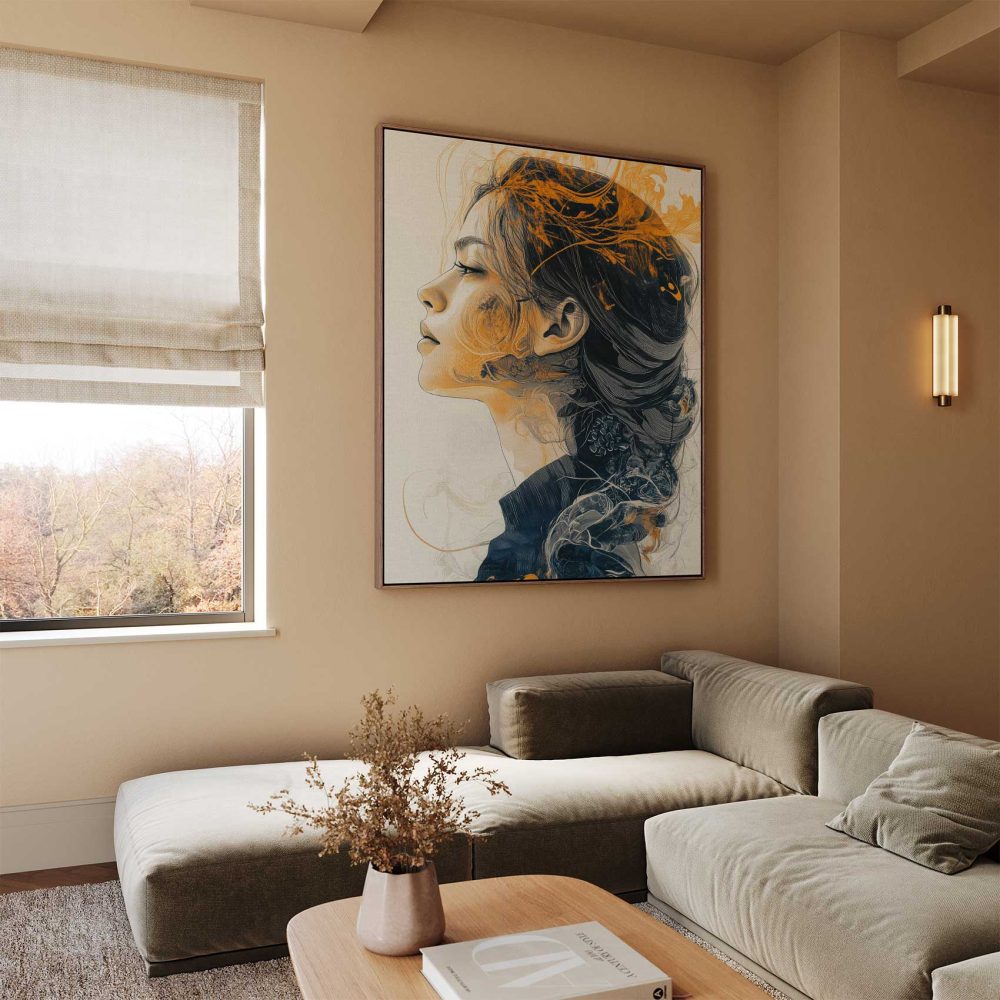 Terug naar collectie / Schilderijen / Fotografie Schilderij / Elegante vrouw met oranje haar