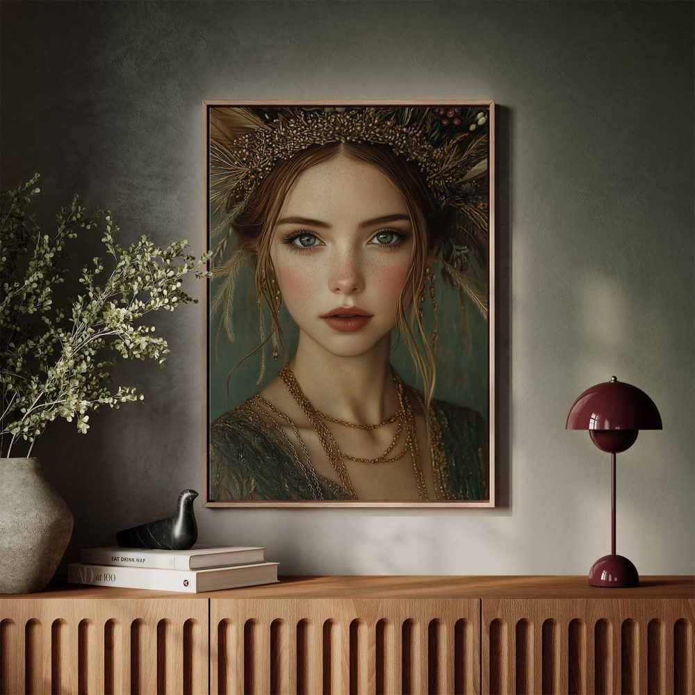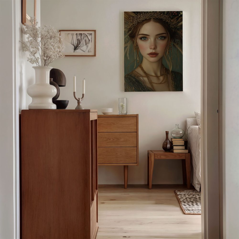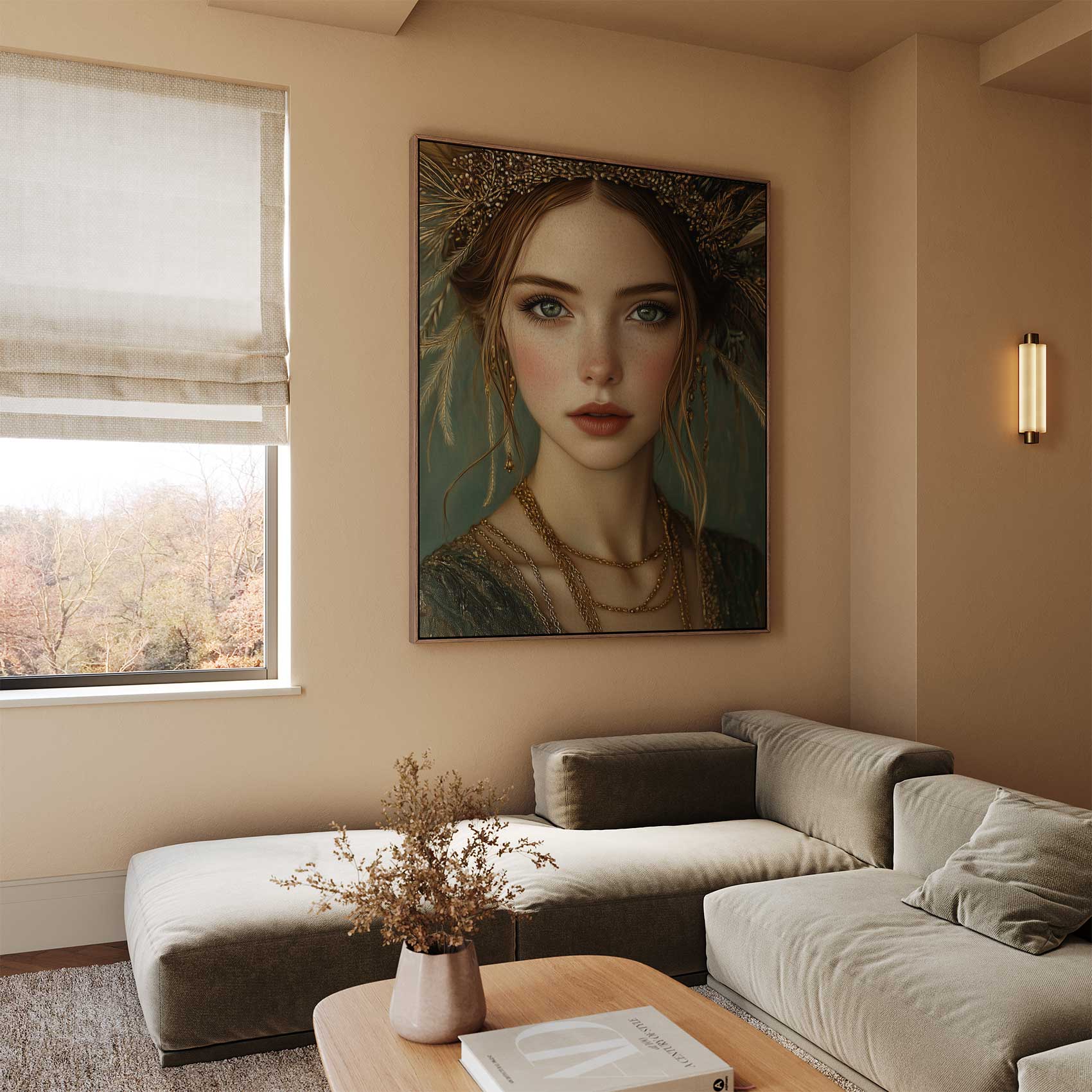 Terug naar collectie / Schilderijen / Exotisch Schilderij / Elegante vrouw met veren hoofdtooi