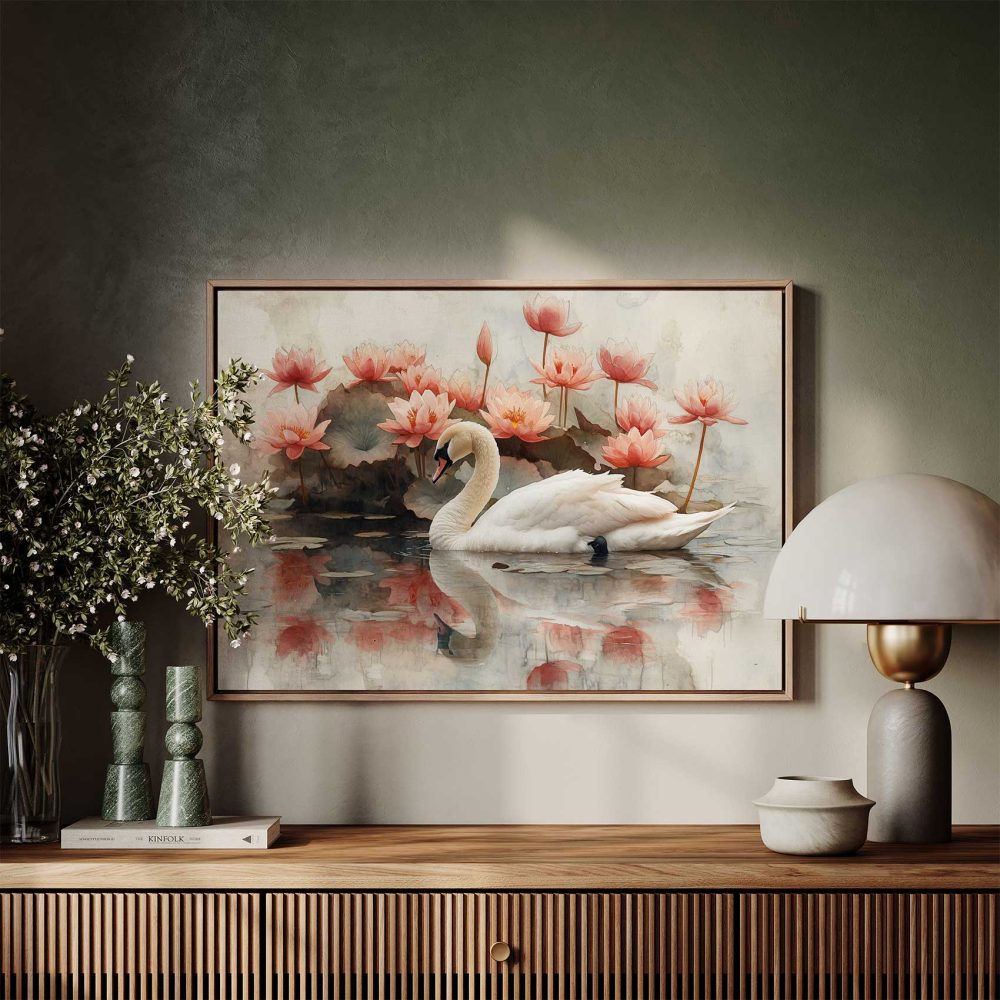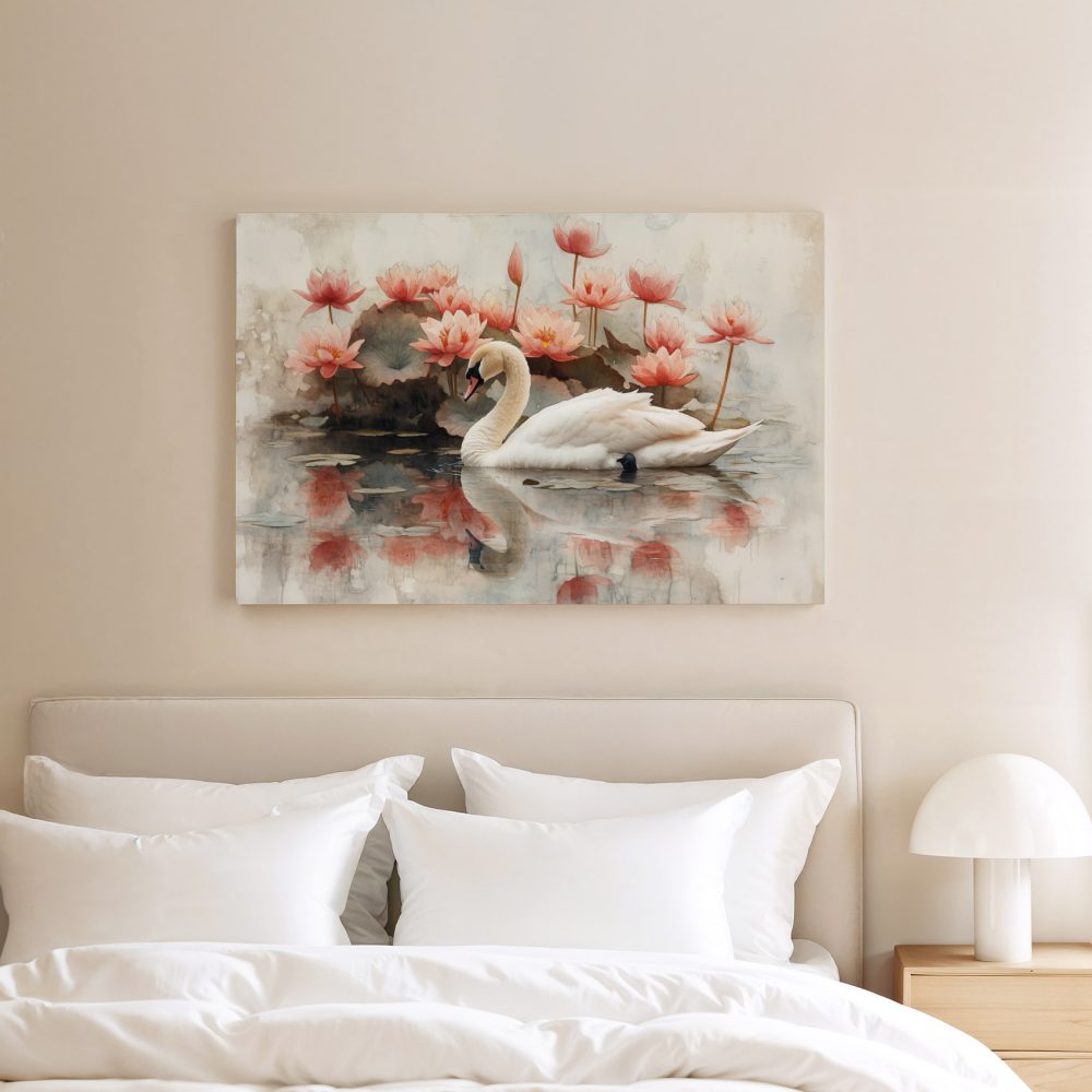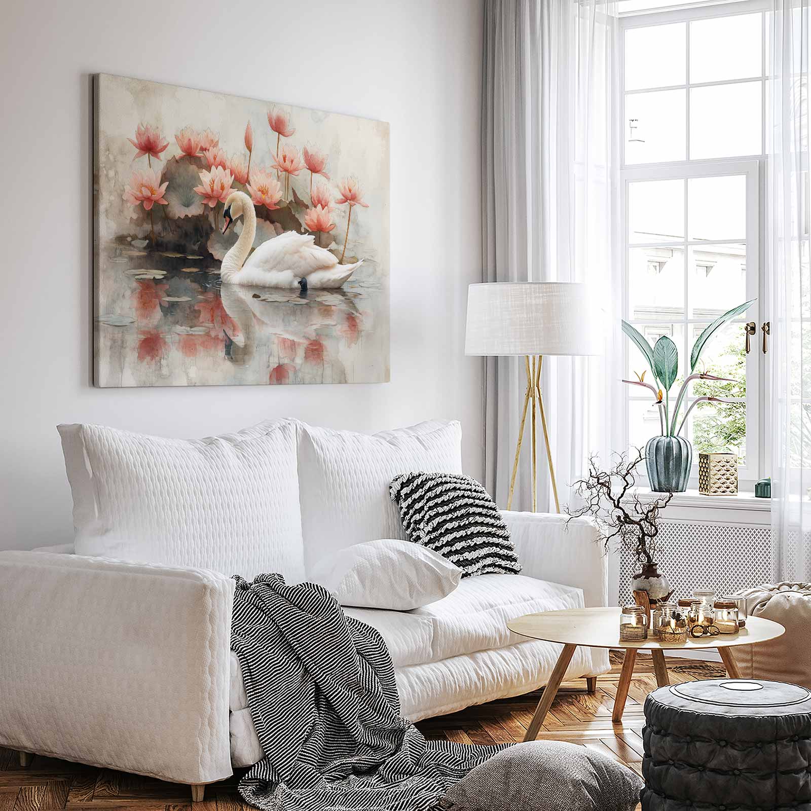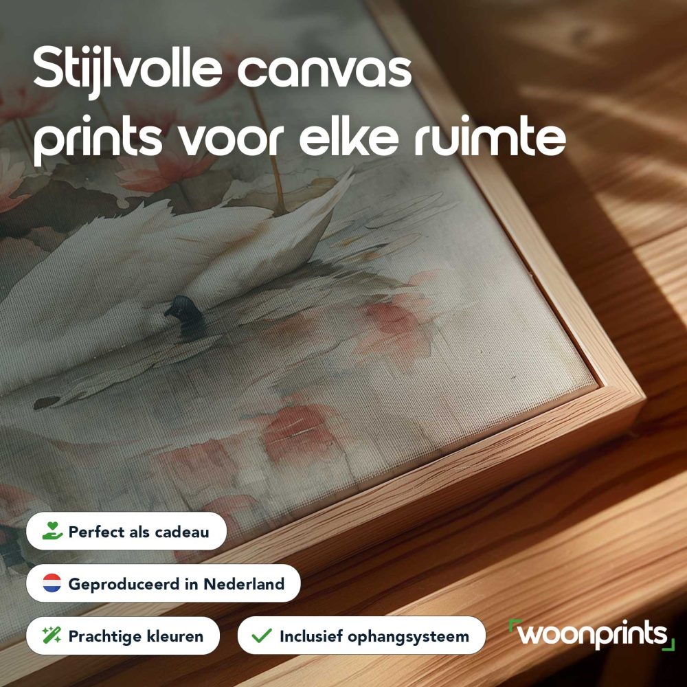 Terug naar collectie / Schilderijen / Bloemen Schilderij / Elegante waterververzwaan in bloemen