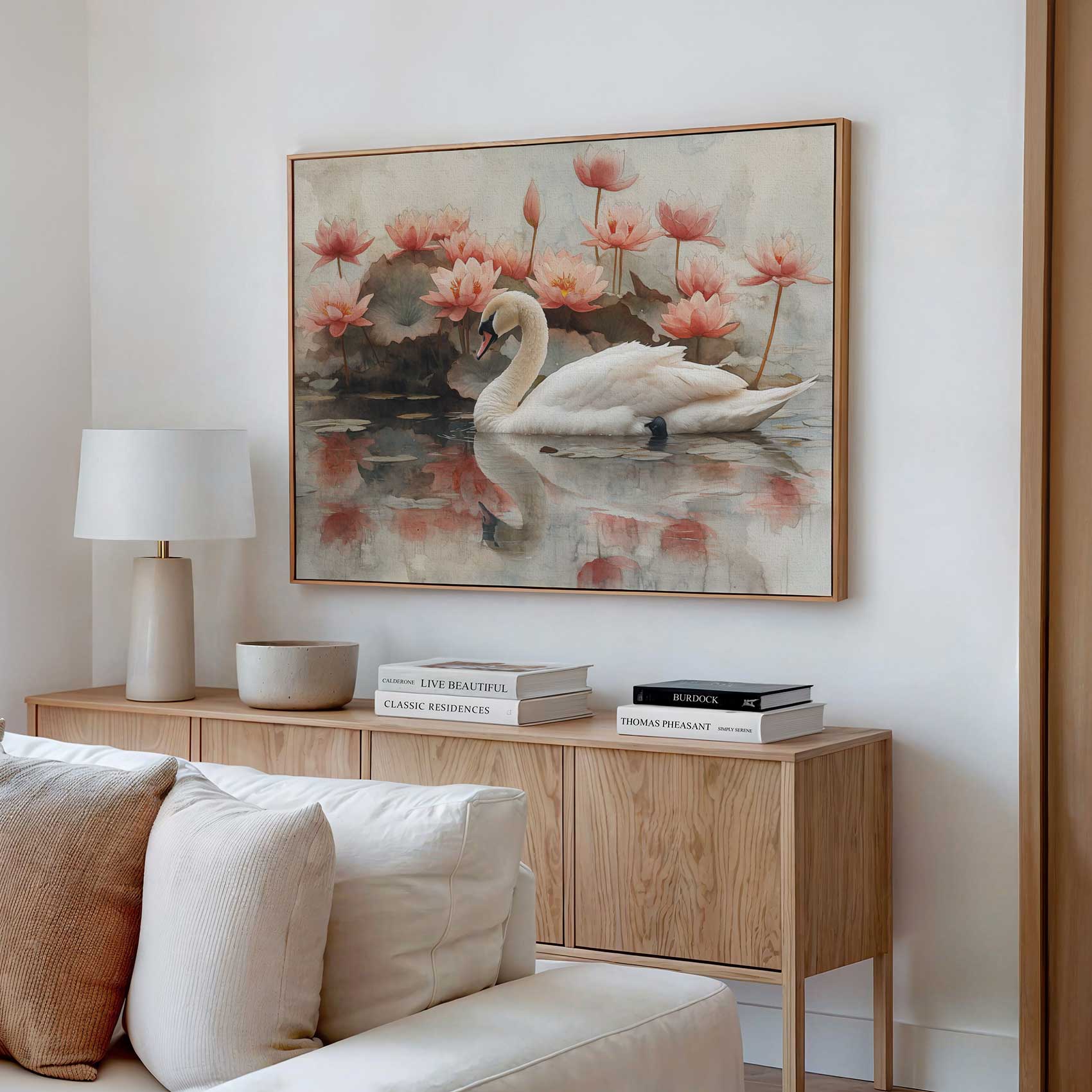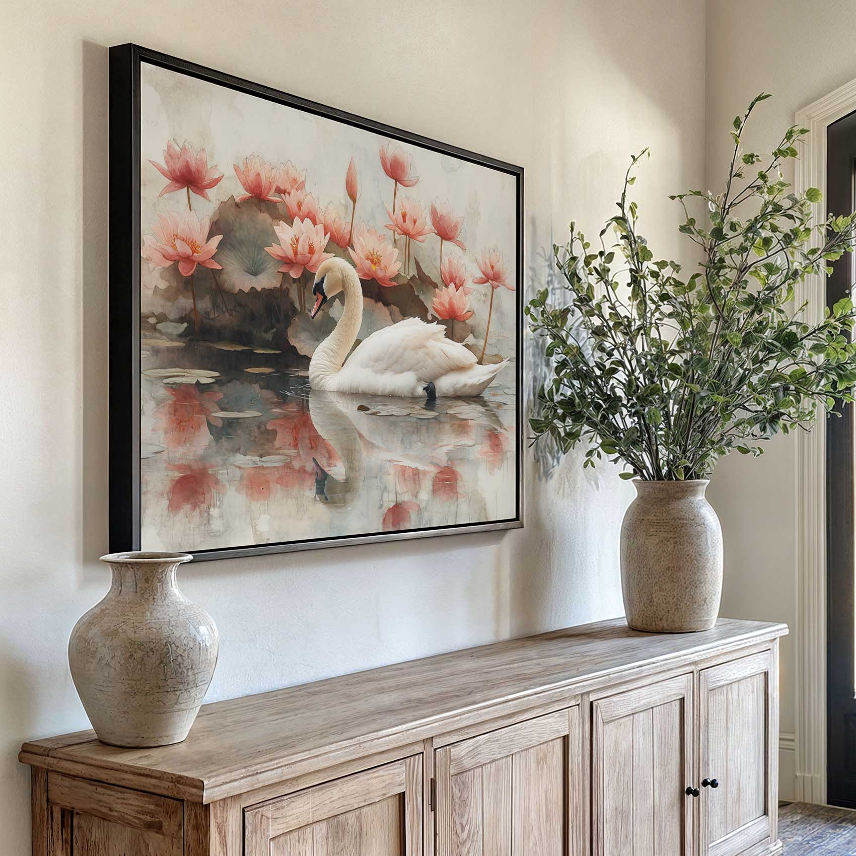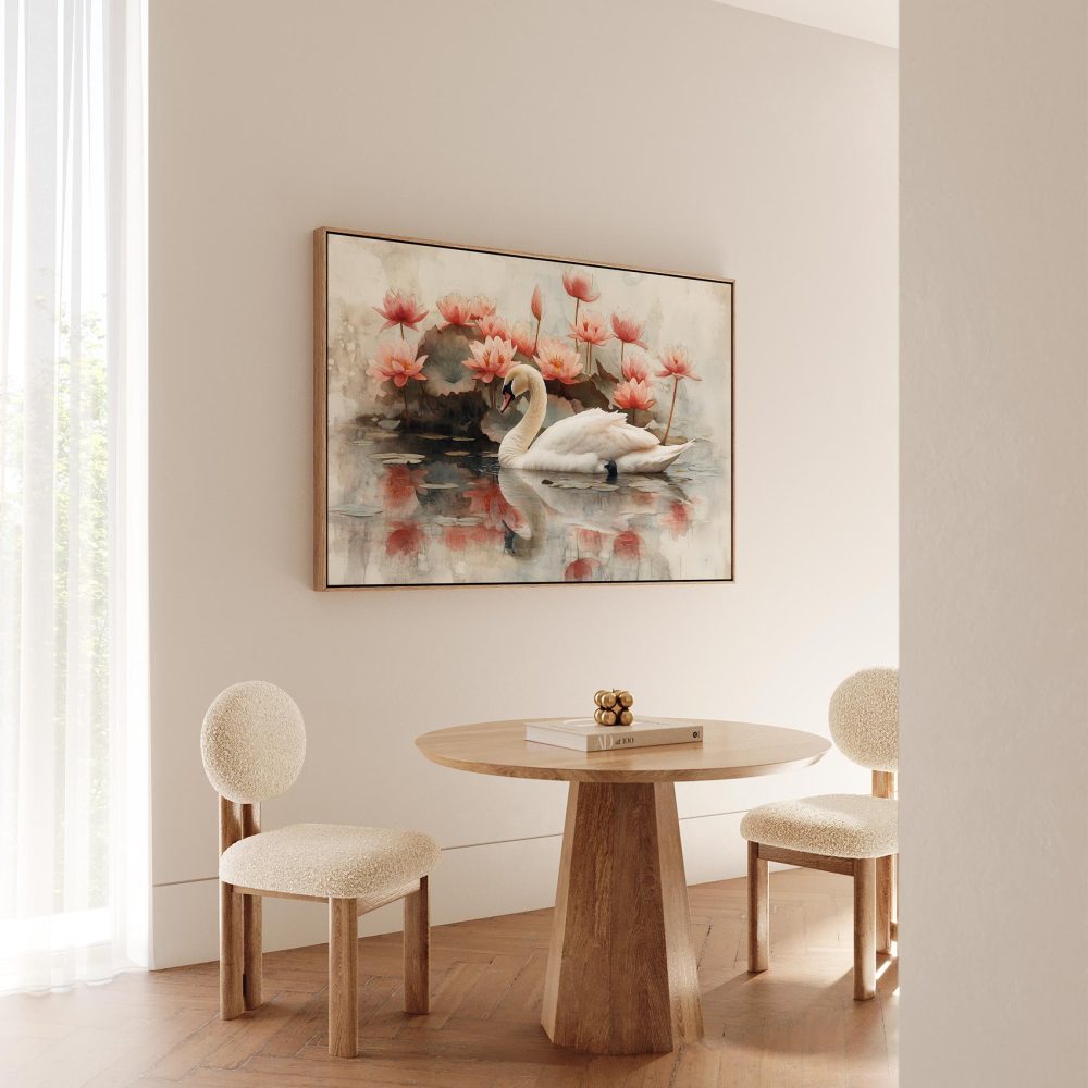 Terug naar collectie / Schilderijen / Bloemen Schilderij / Elegante waterververzwaan in bloemen