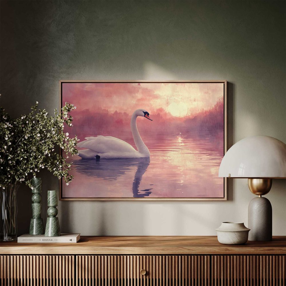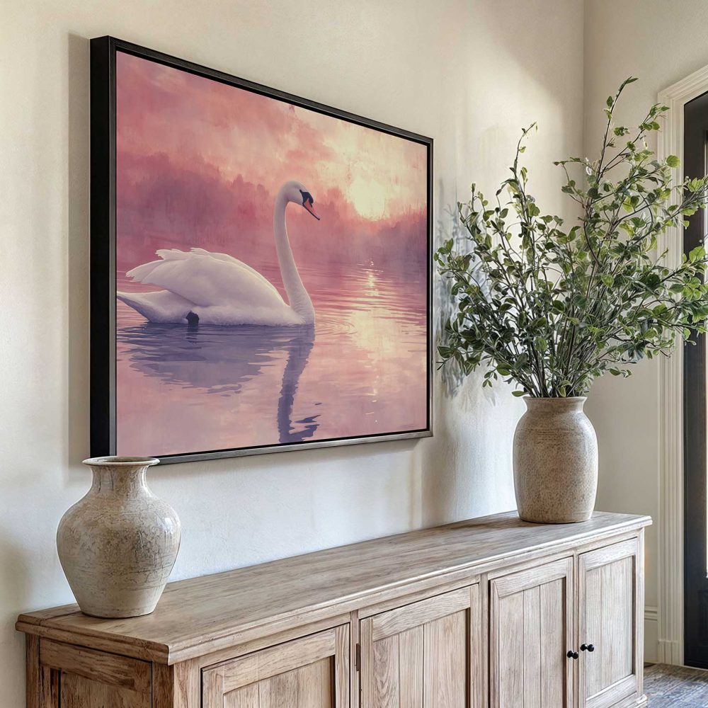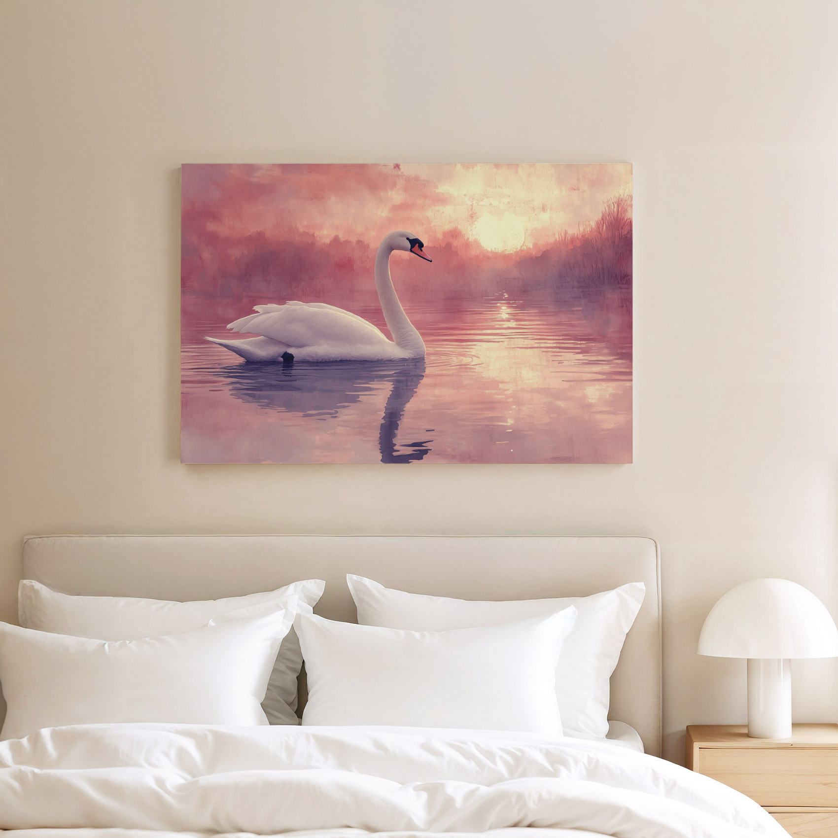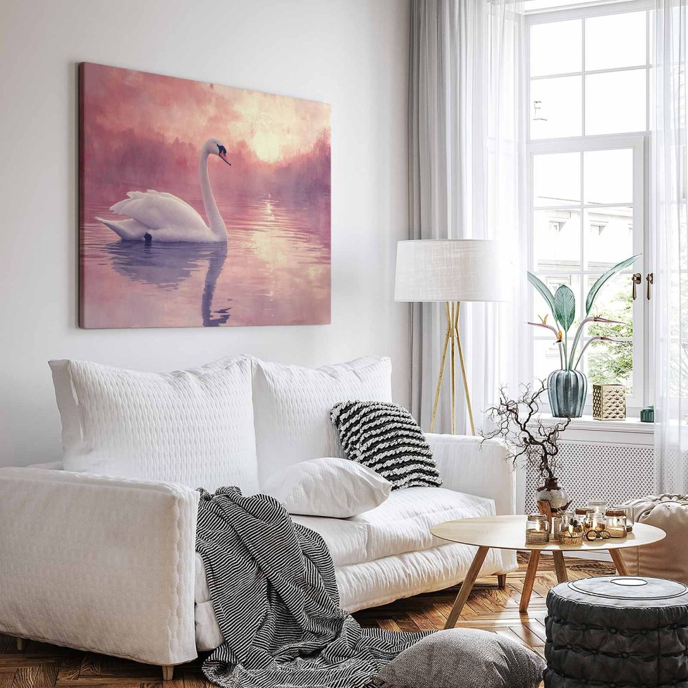 Terug naar collectie / Schilderijen / Dieren Schilderij / Elegante zwaan in zonsondergang