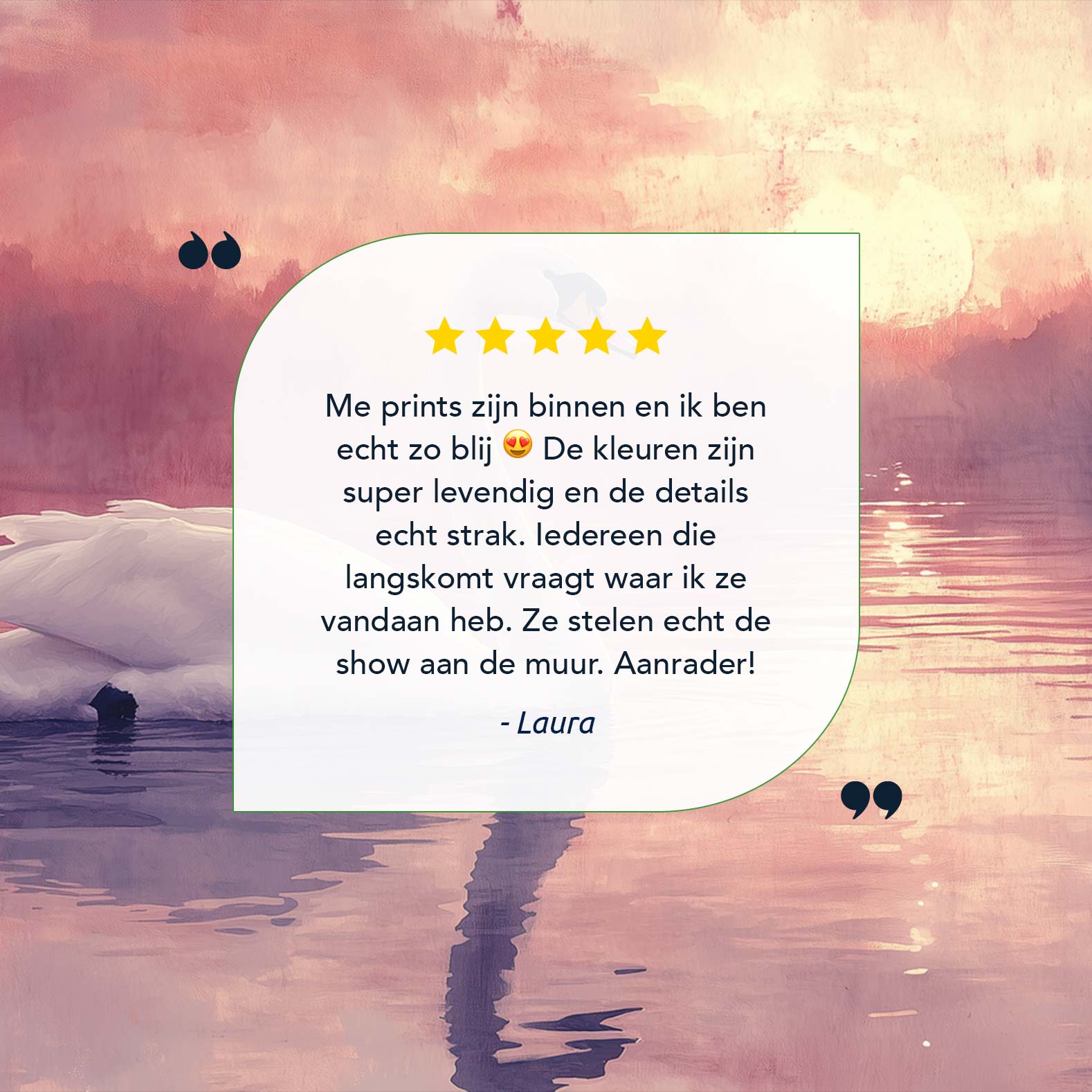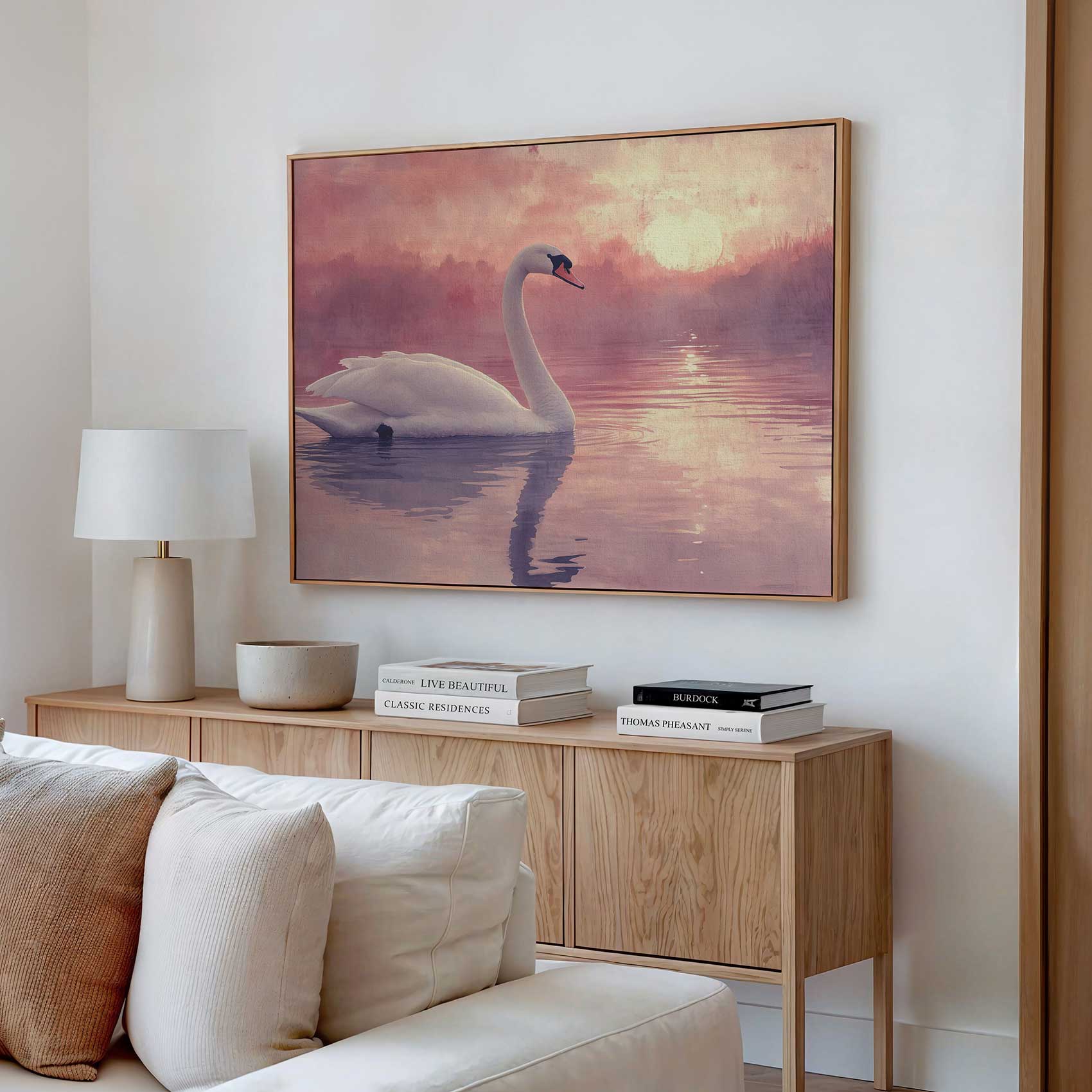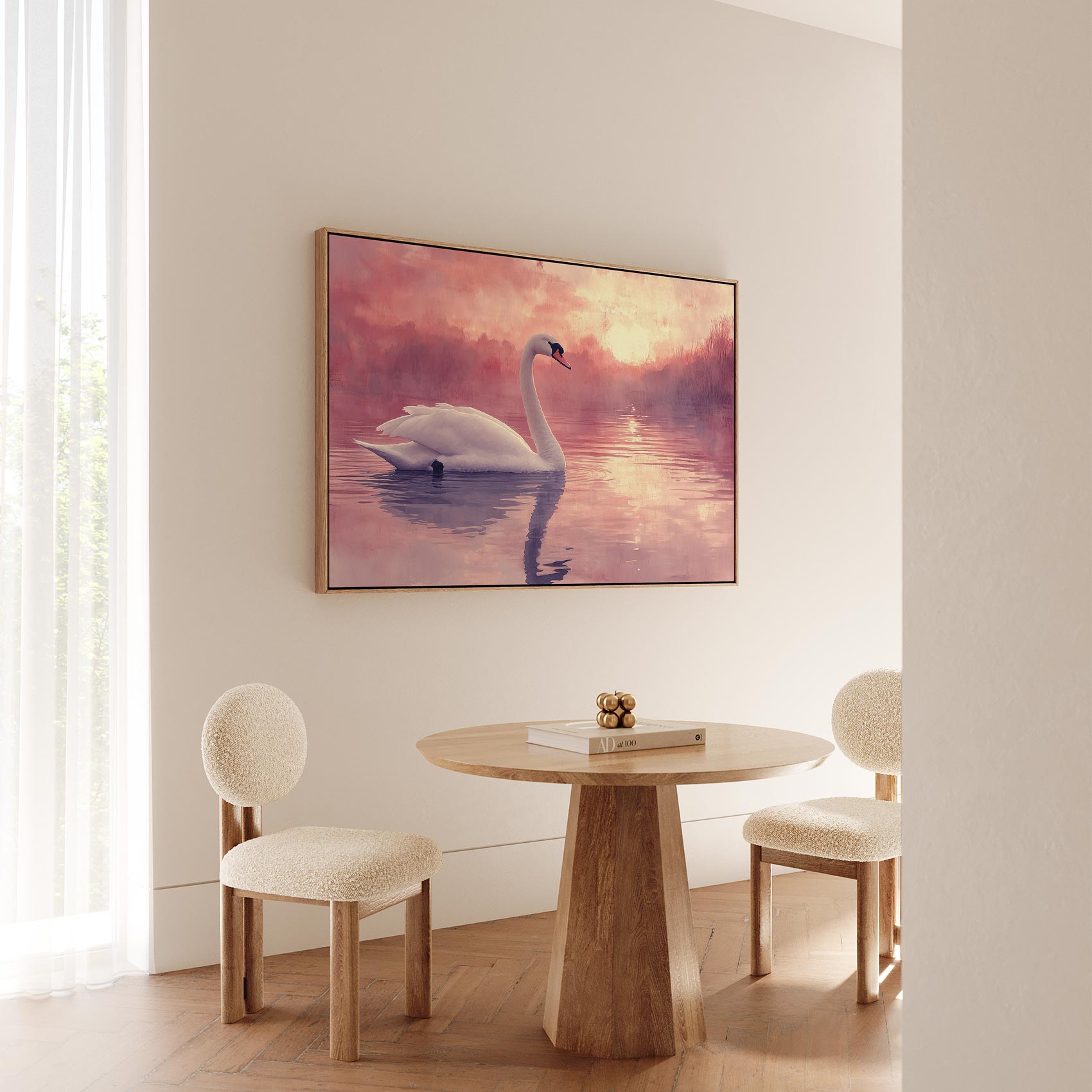 Terug naar collectie / Schilderijen / Dieren Schilderij / Elegante zwaan in zonsondergang