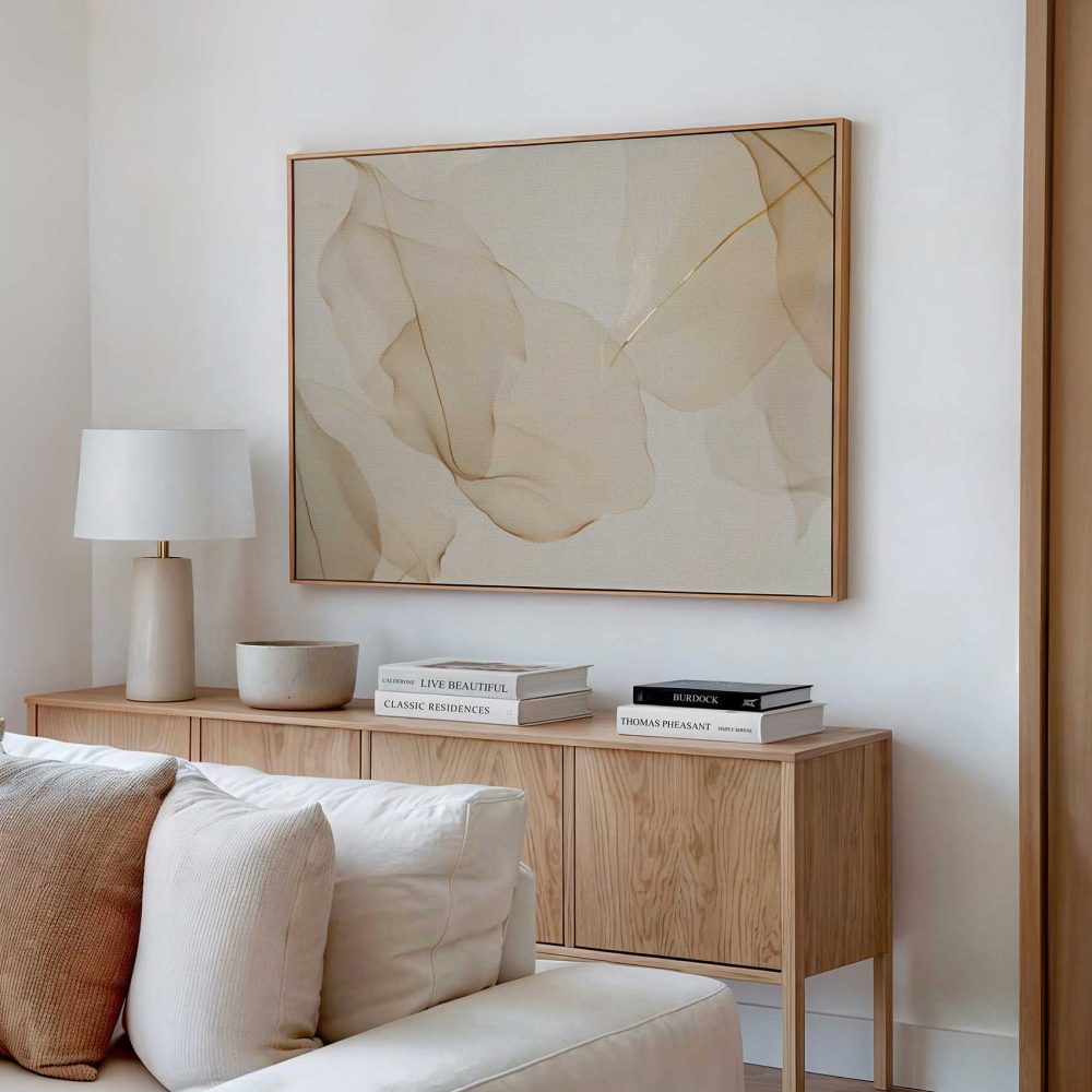 Terug naar collectie / Schilderijen / Abstract Schilderij / Ethereale zwevende herfstbladeren
