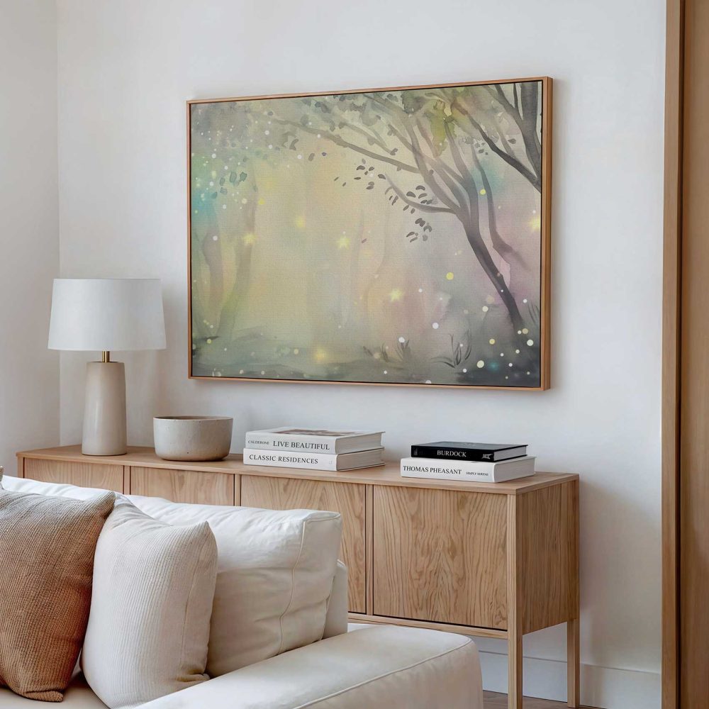 Terug naar collectie / Schilderijen / Bossen Schilderij / Etherisch bos waterverfschilderij