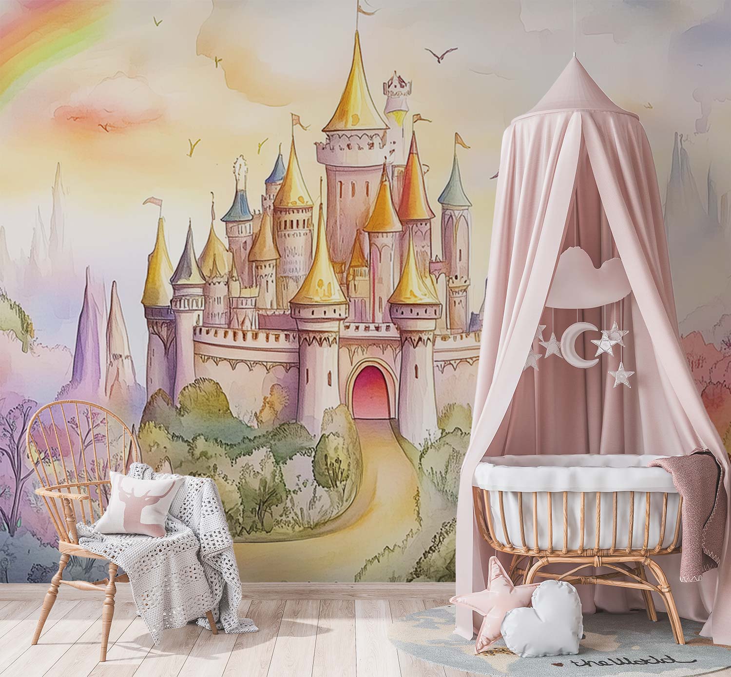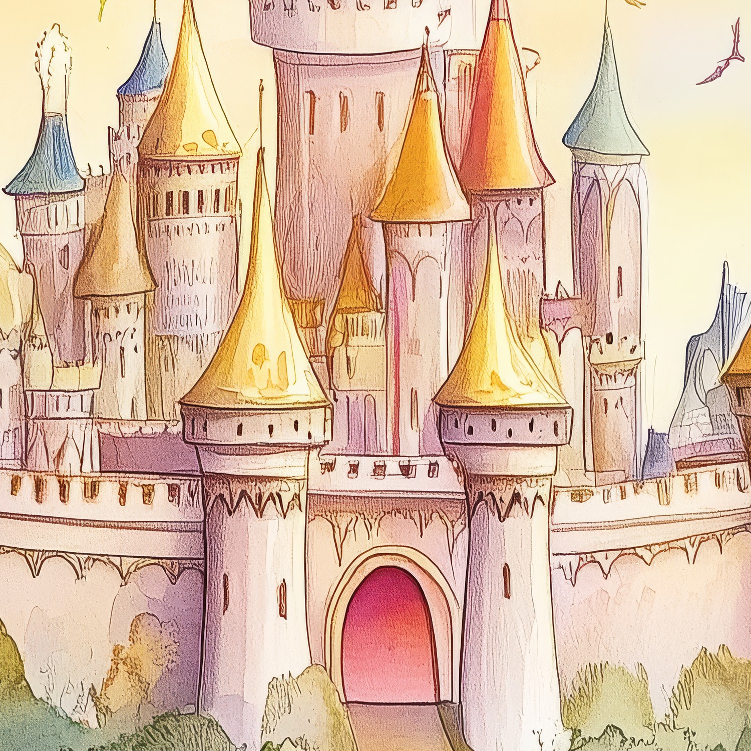 Fantastisch Watercolor Kasteel behang