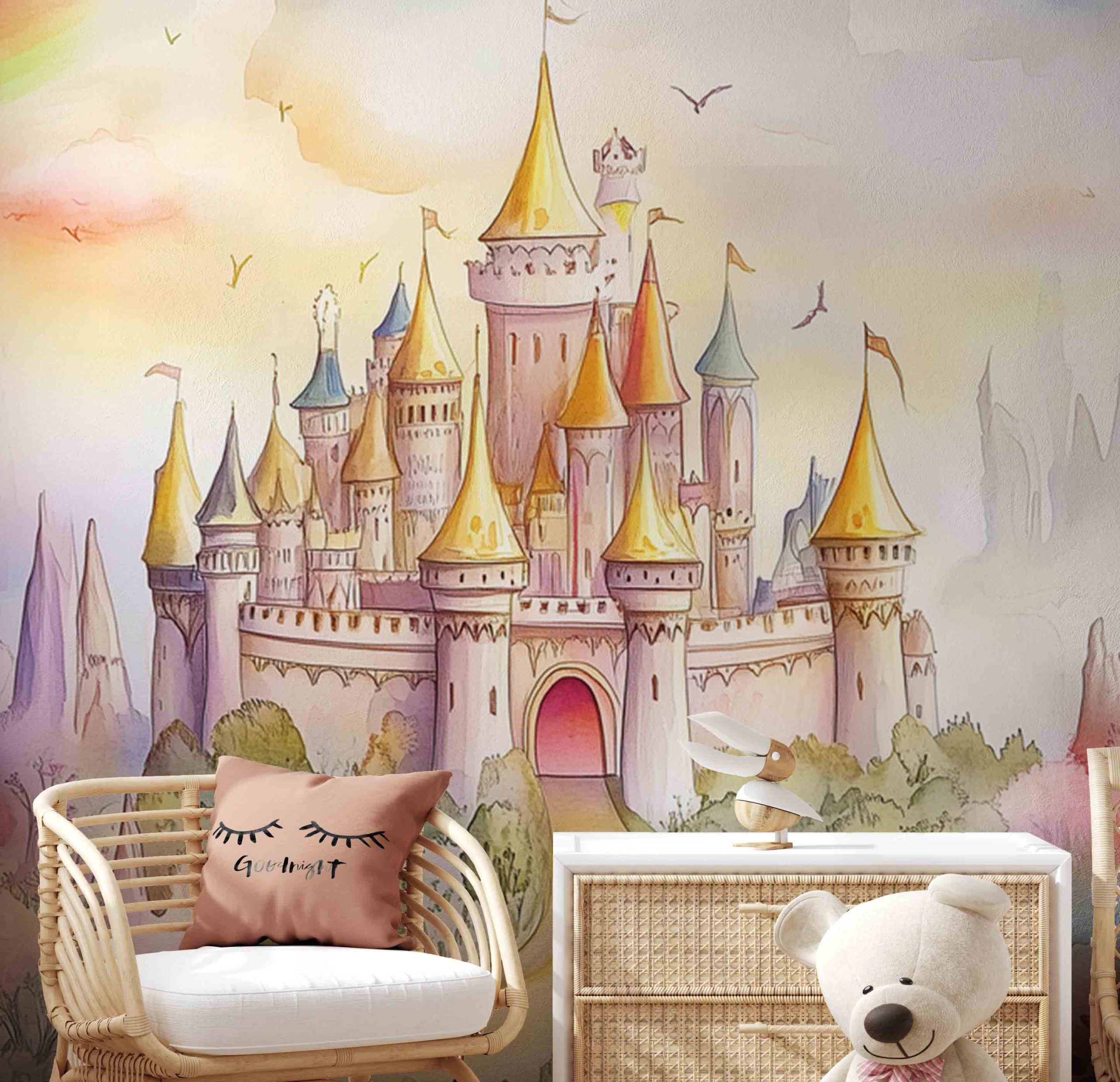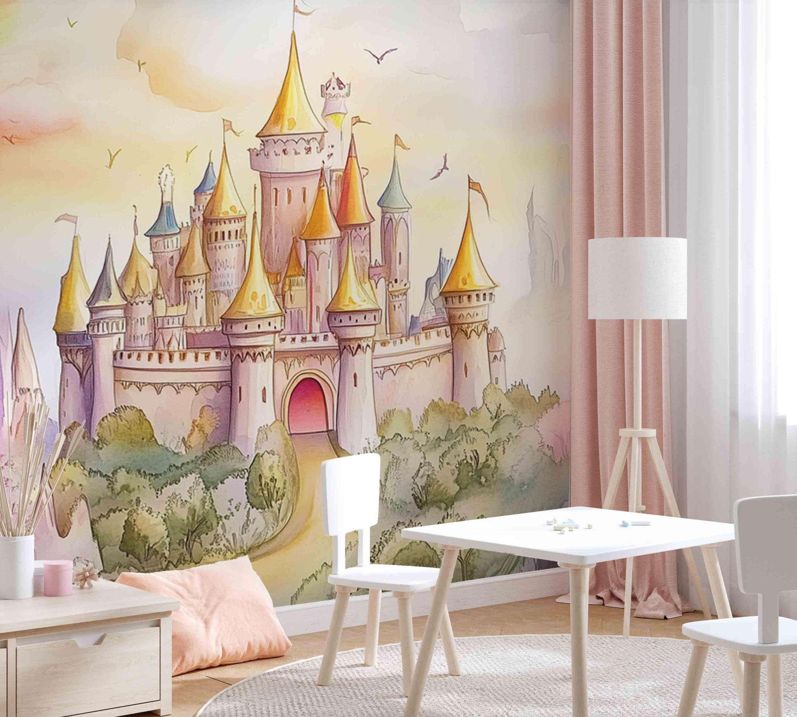 Terug naar collectie / Behang / Kinderkamer behang / Avontuurlijk behang / Fantastisch Watercolor Kasteel behang