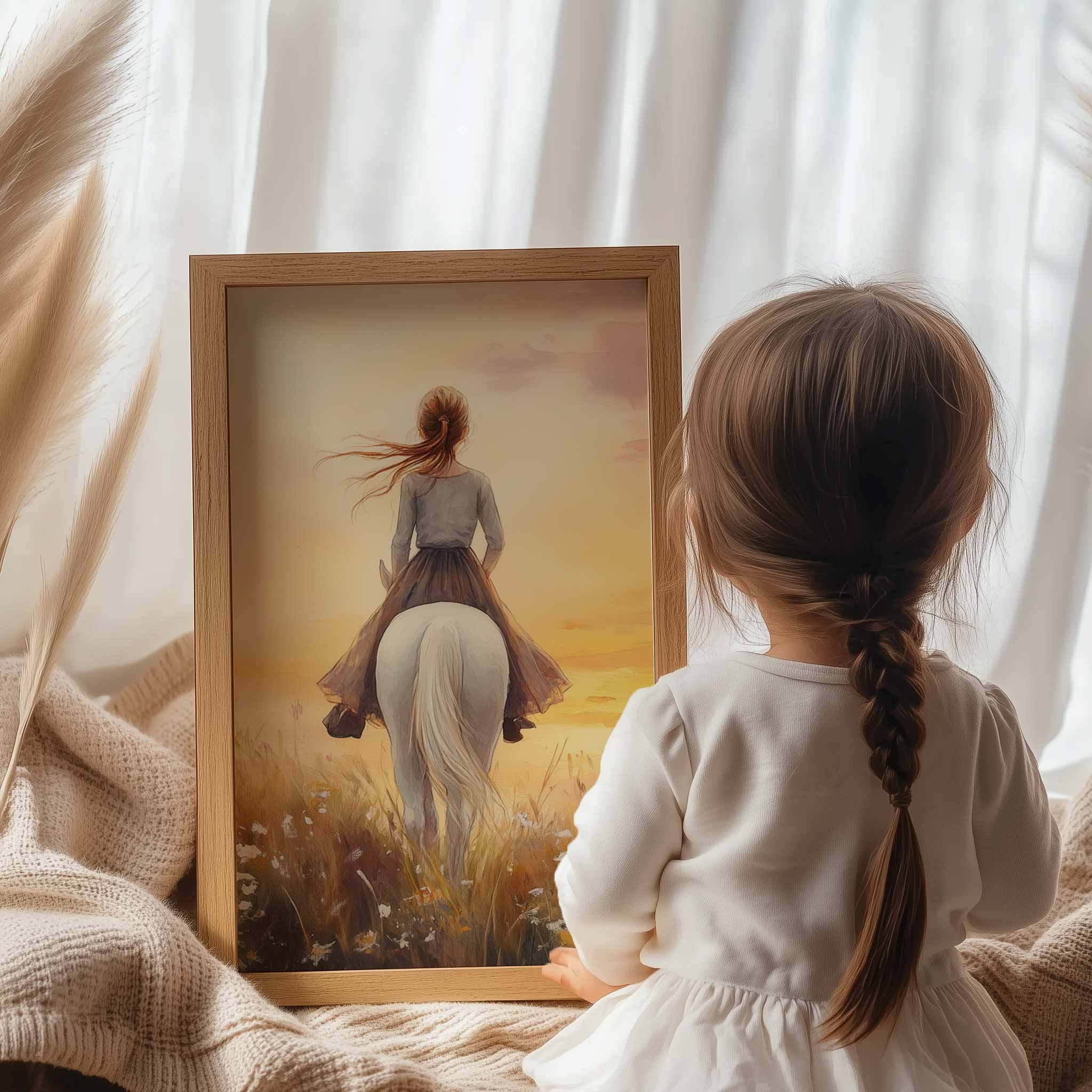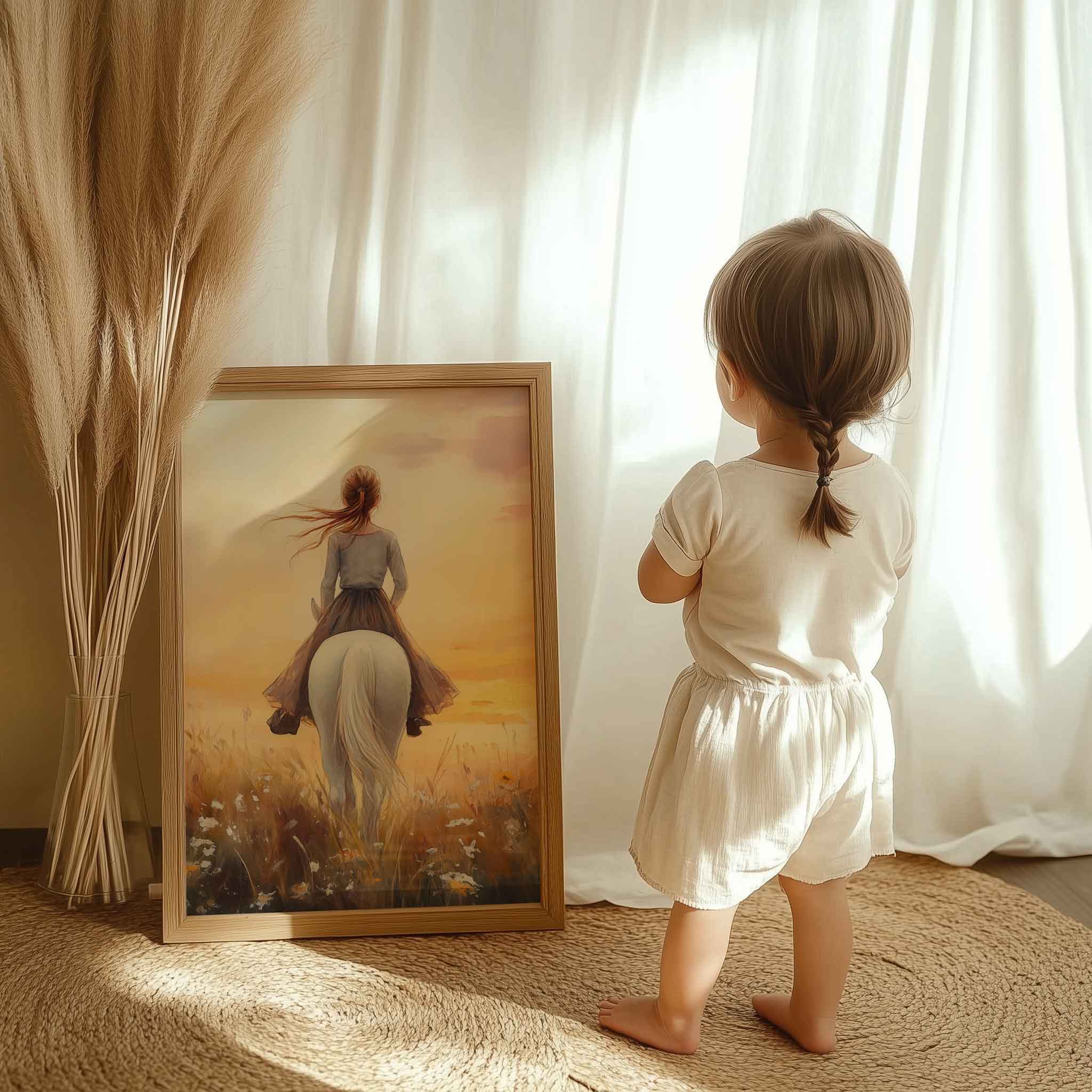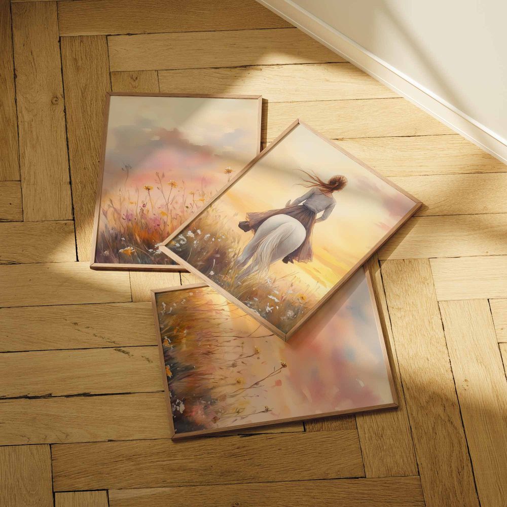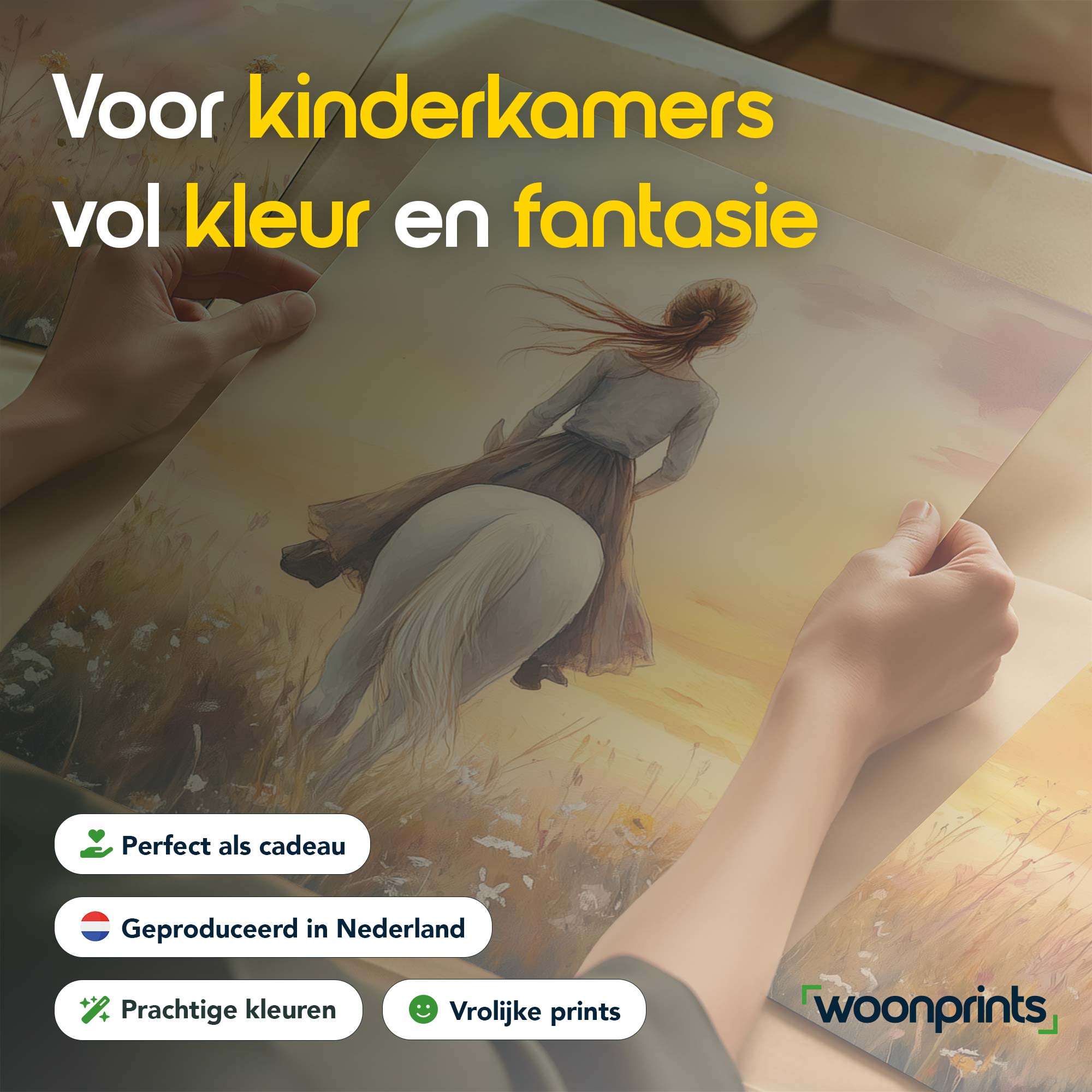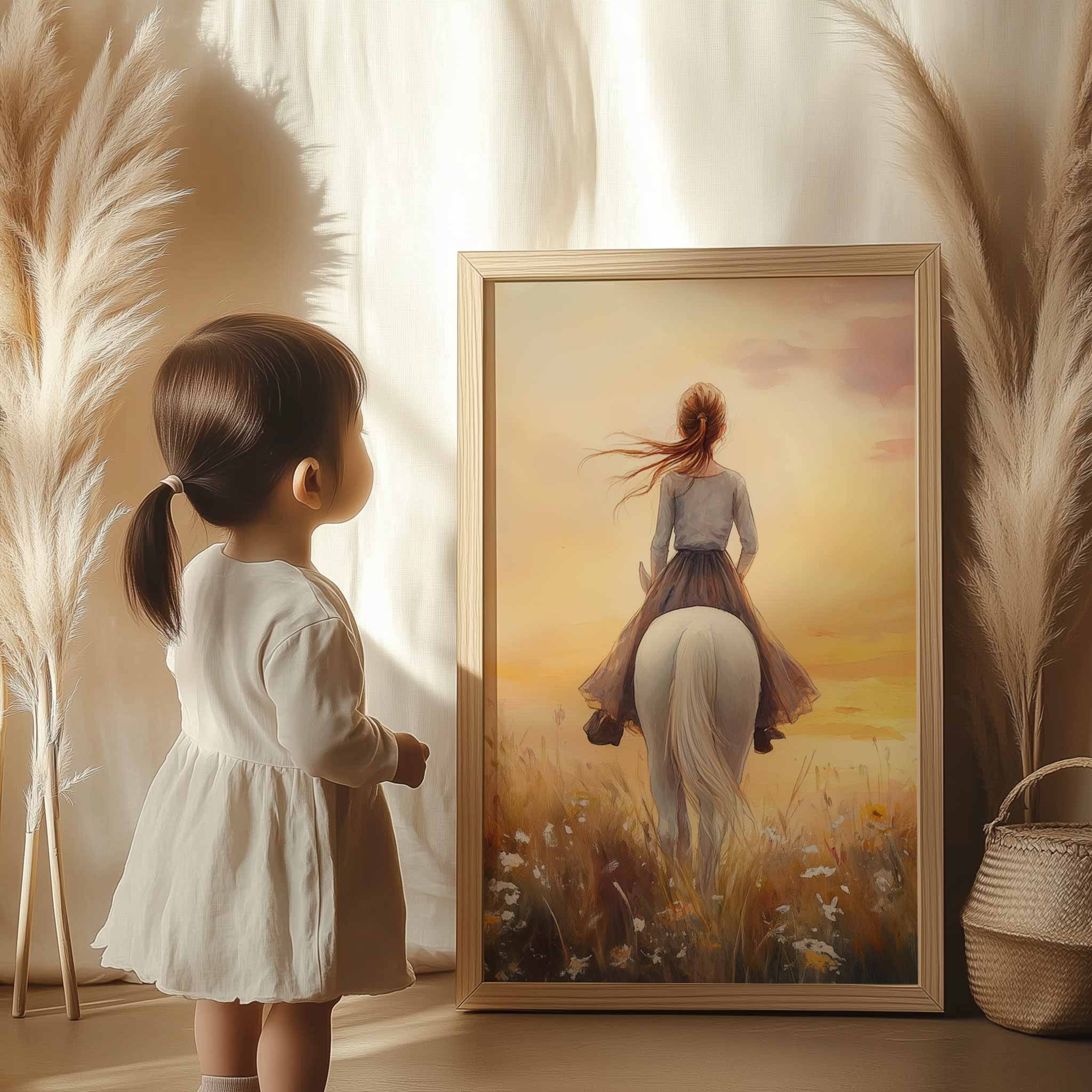 Terug naar collectie / Uncategorized / Feeërieke Droom: Vrouw en Paard in Bloemenveld
