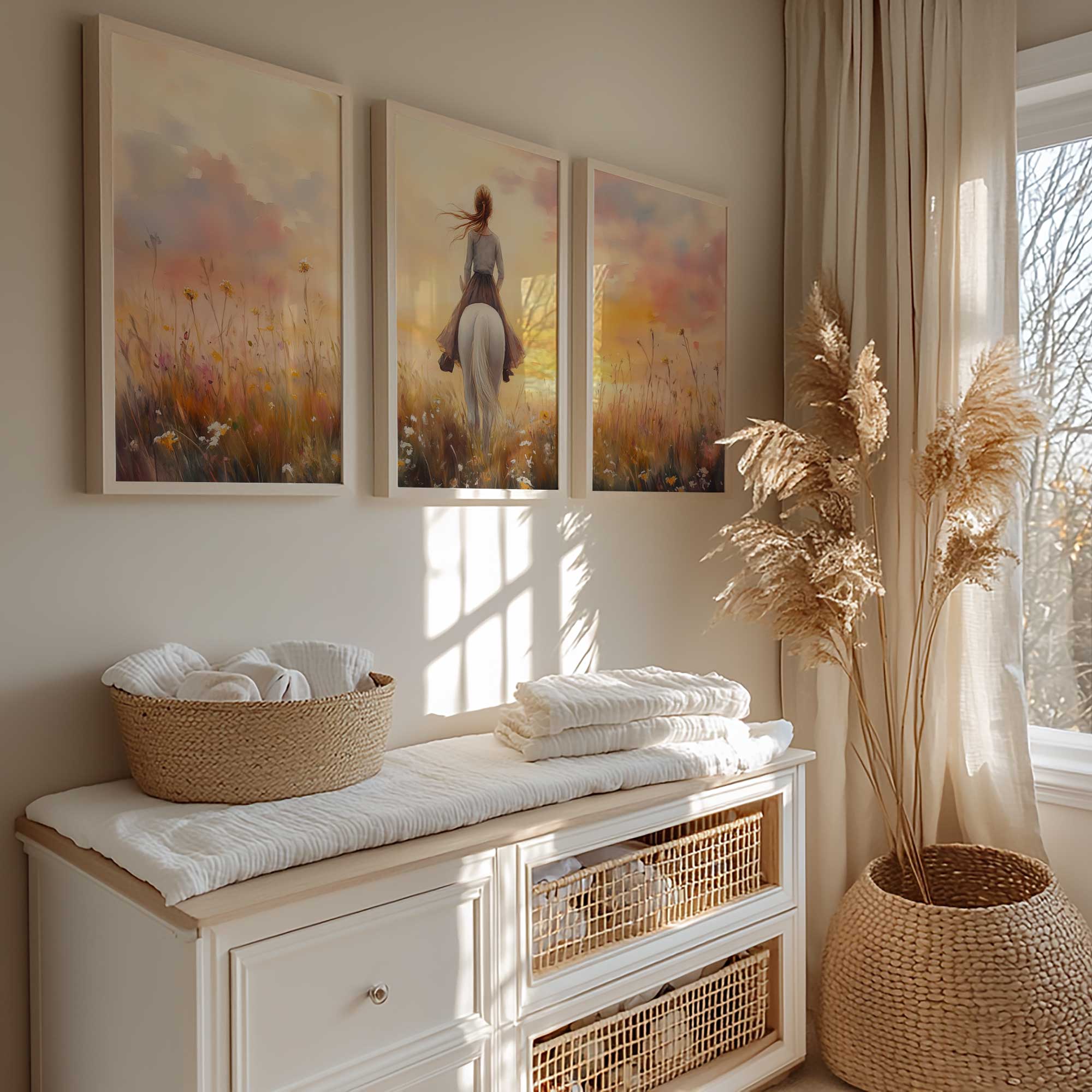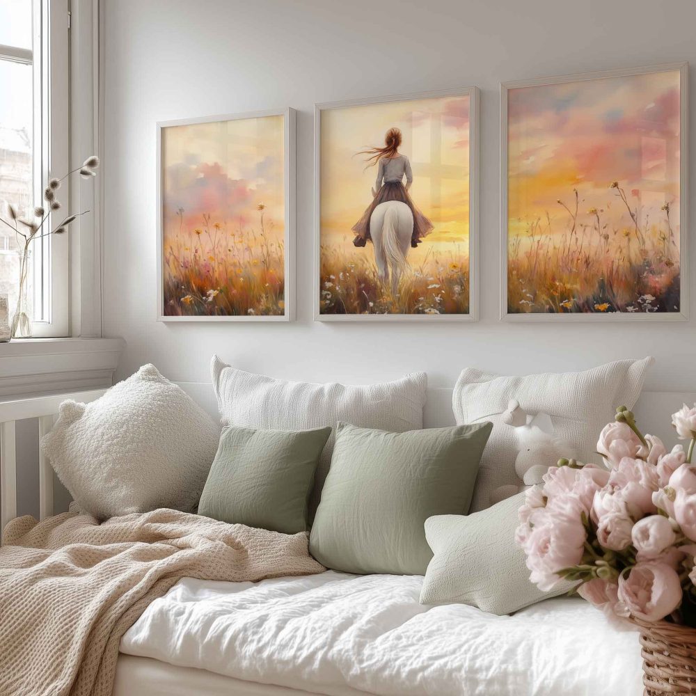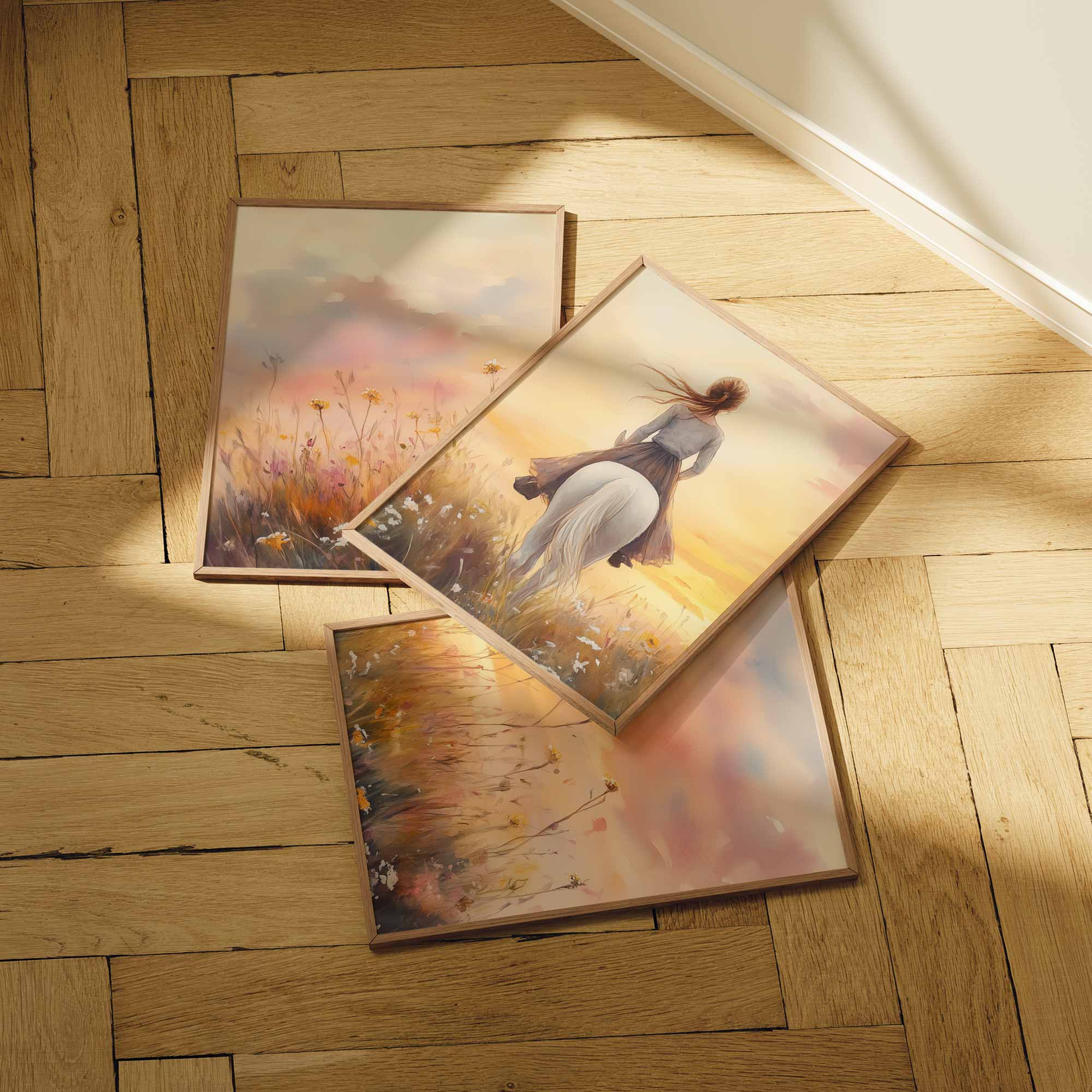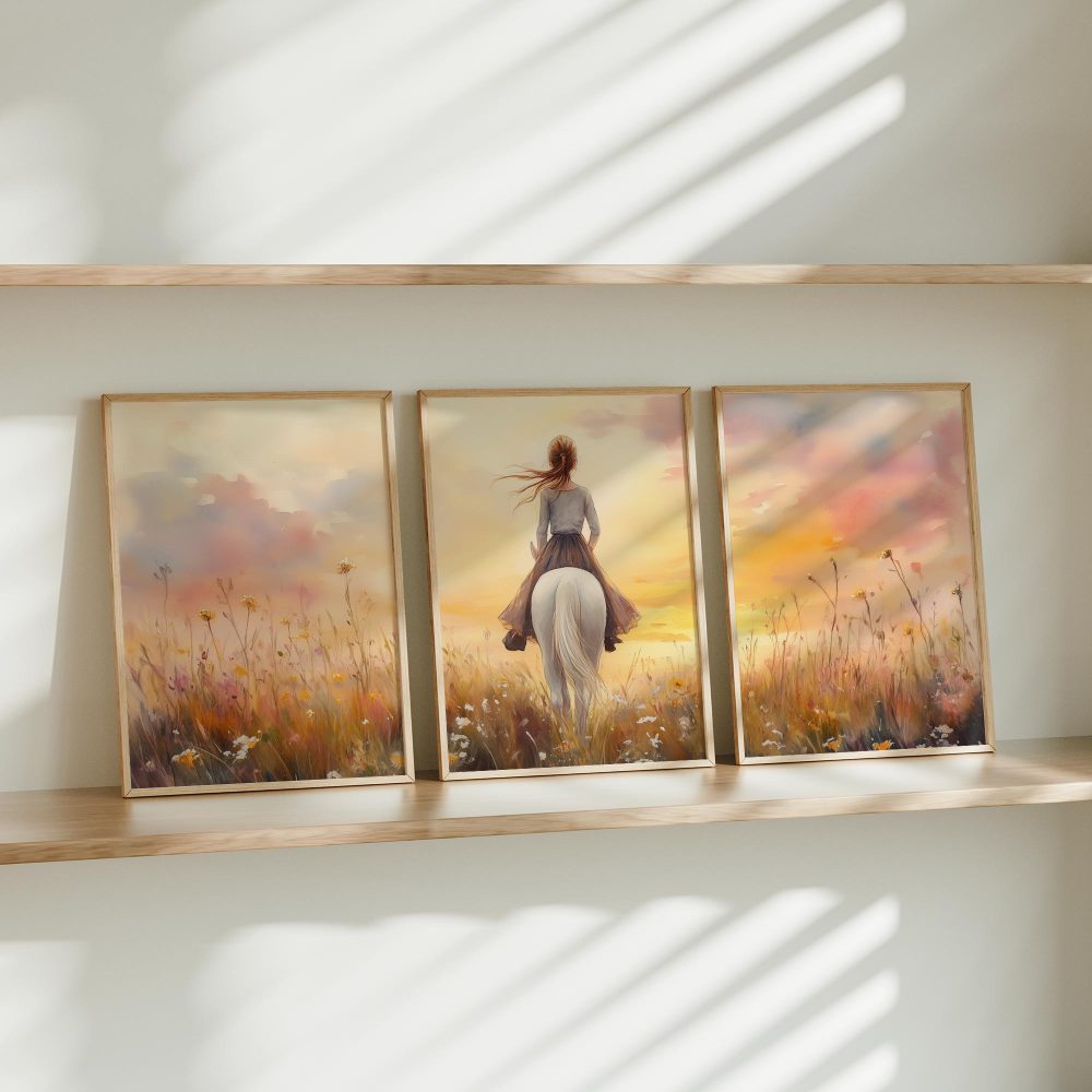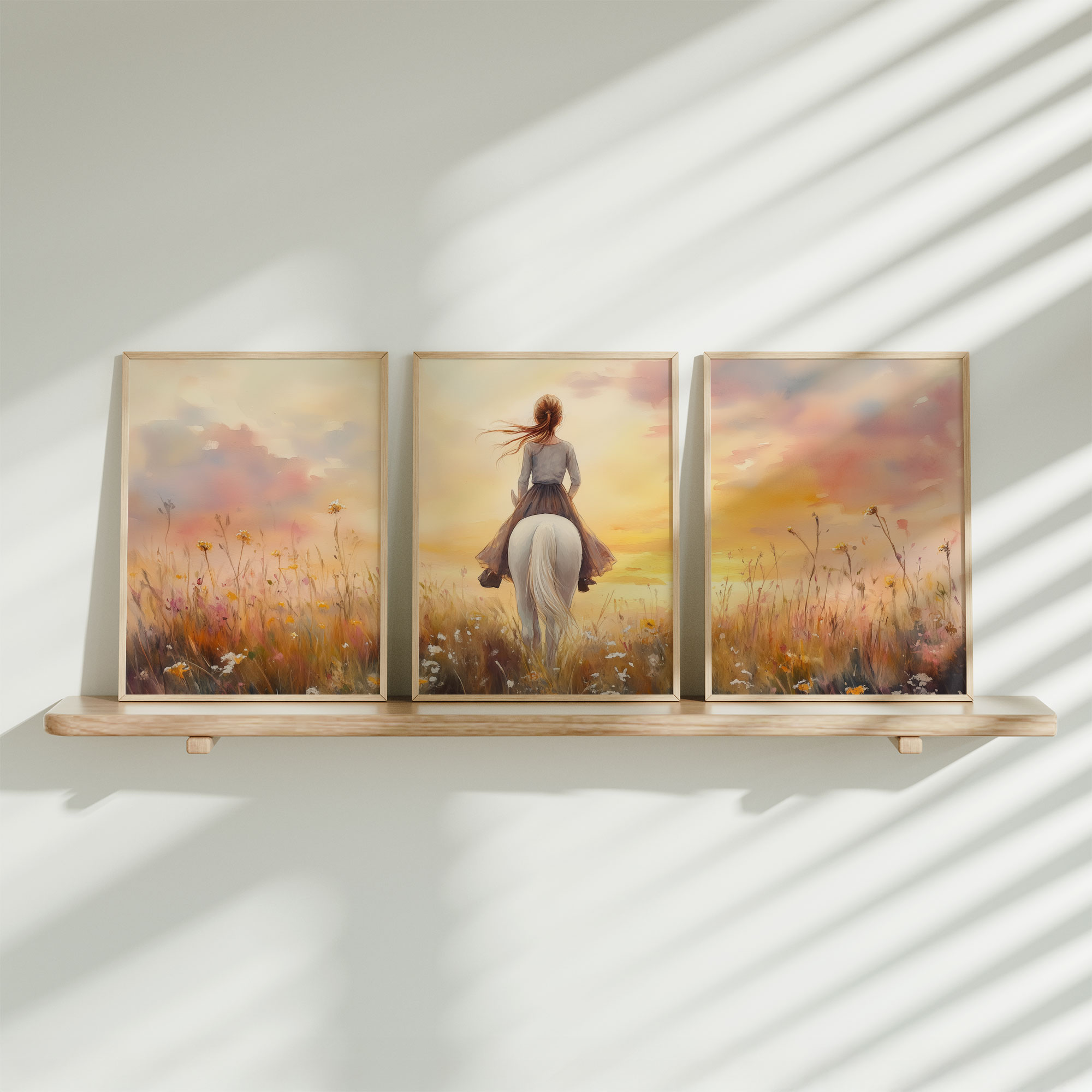 Terug naar collectie / Uncategorized / Feeërieke Droom: Vrouw en Paard in Bloemenveld