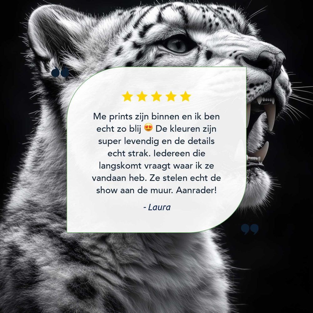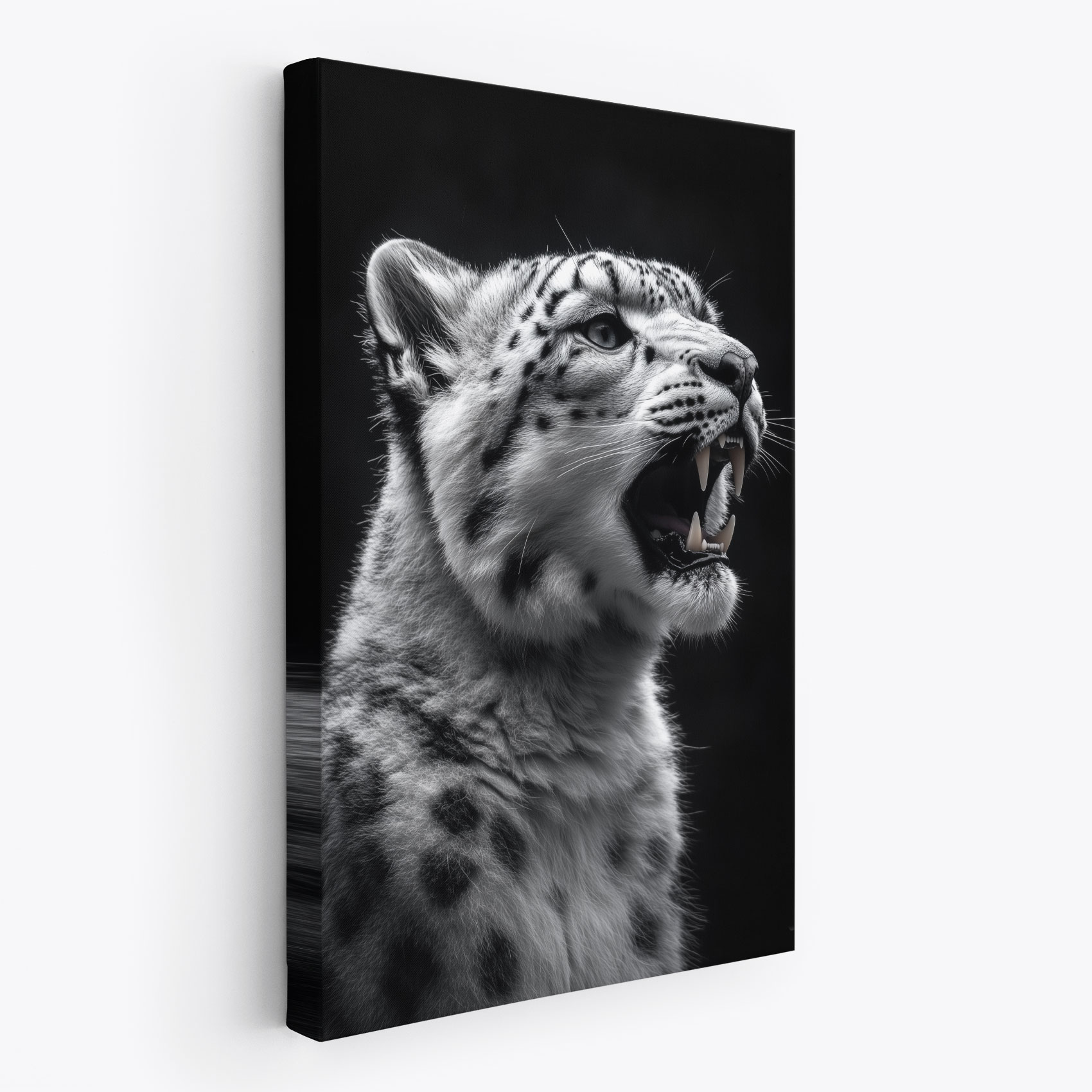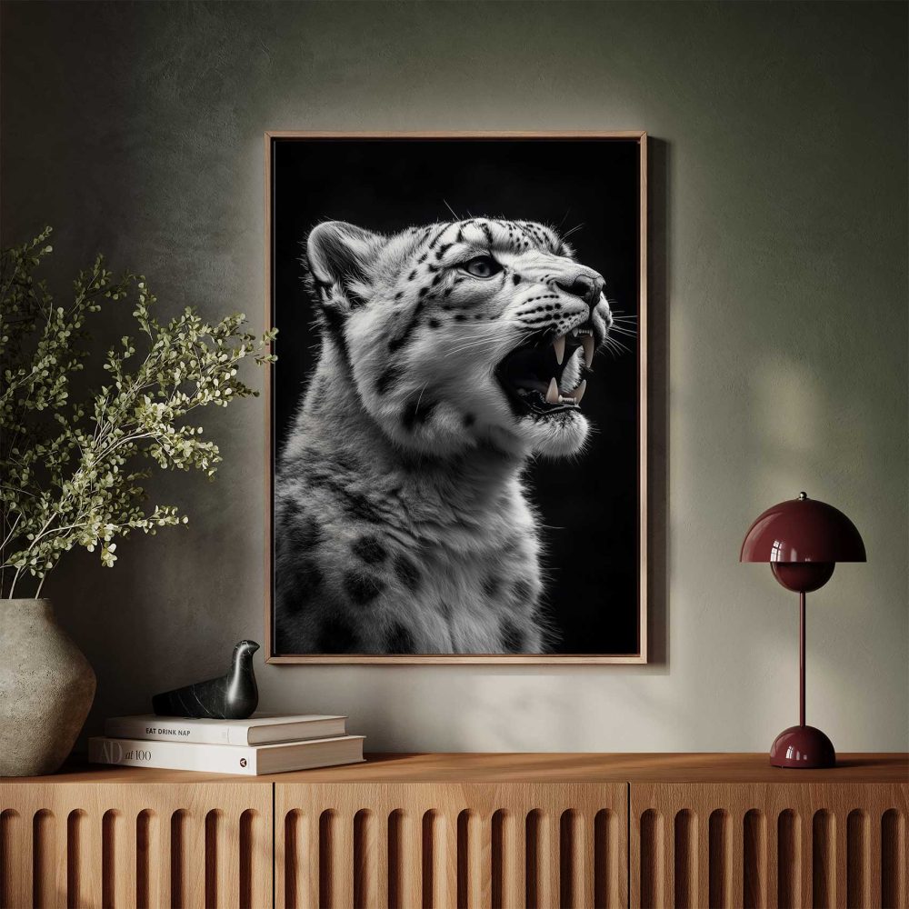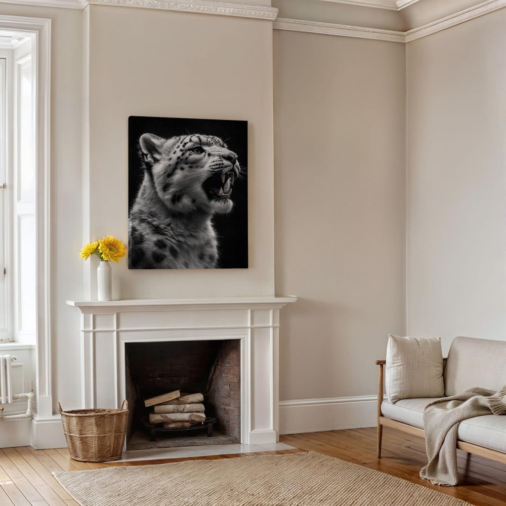 Terug naar collectie / Schilderijen / Dieren Schilderij / Fel Zwart-Wit Sneeuwluipaard