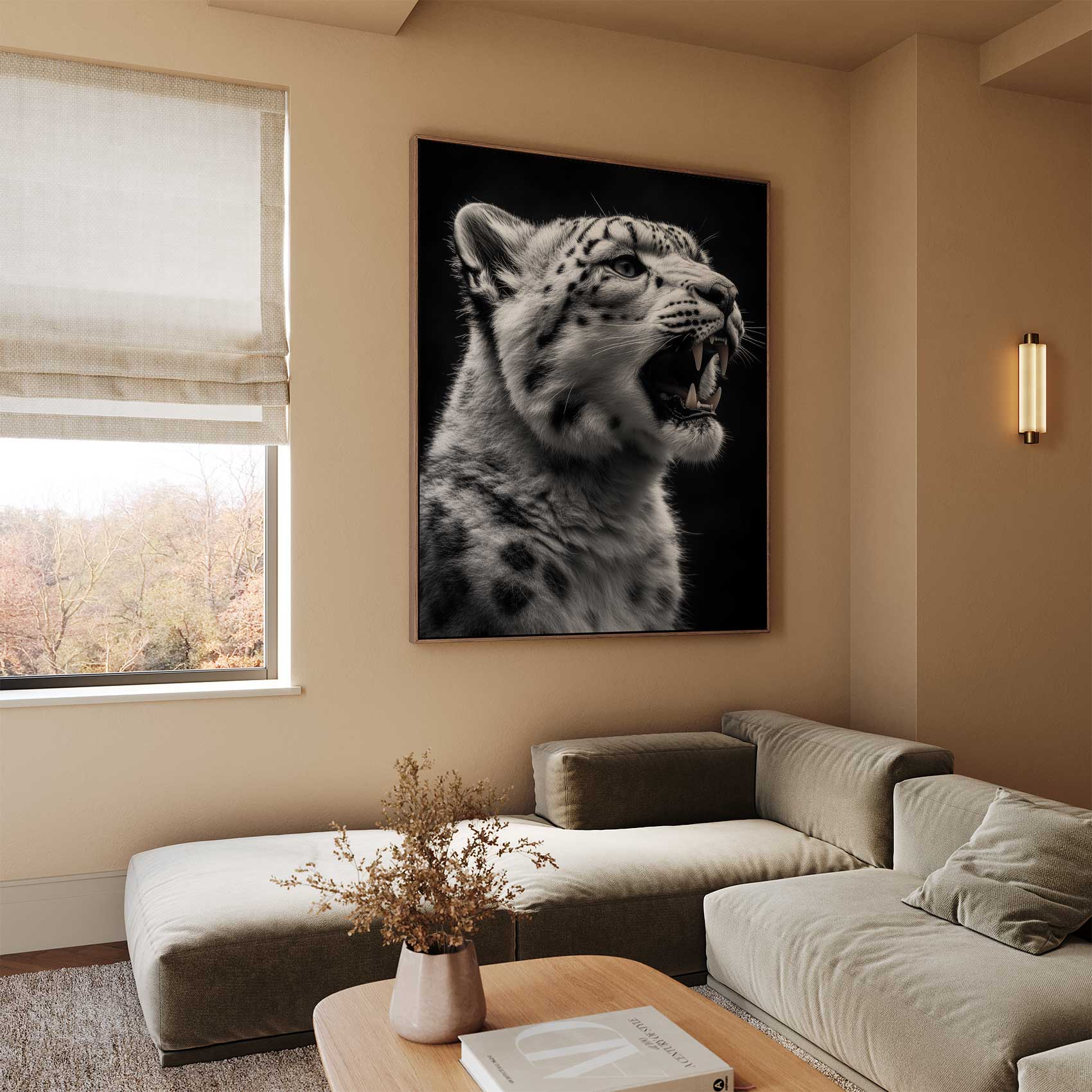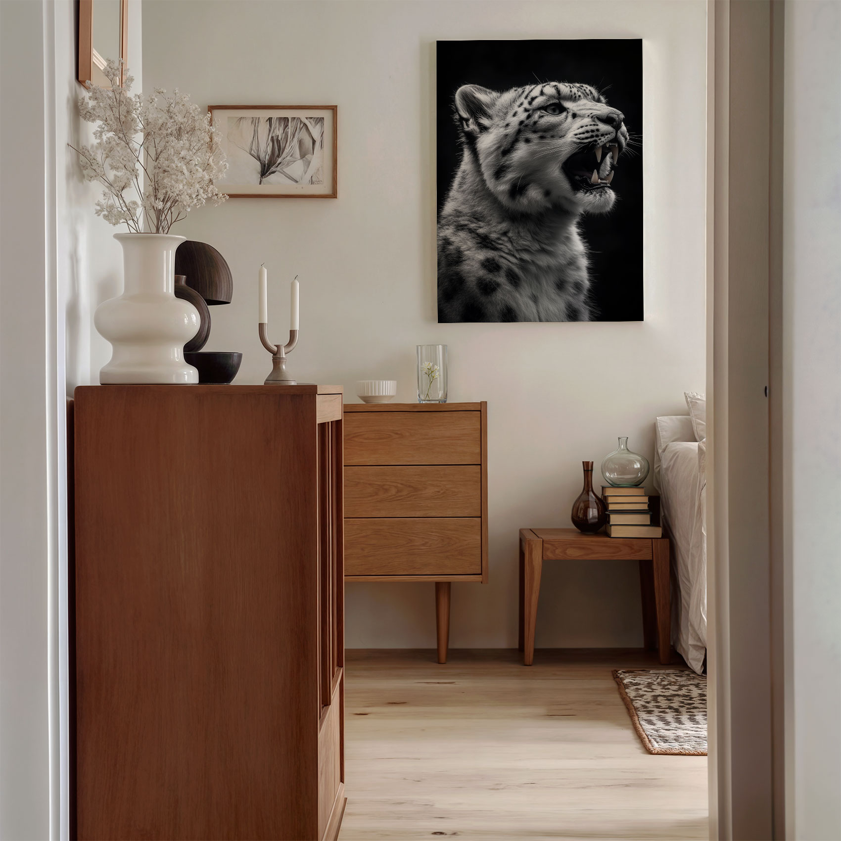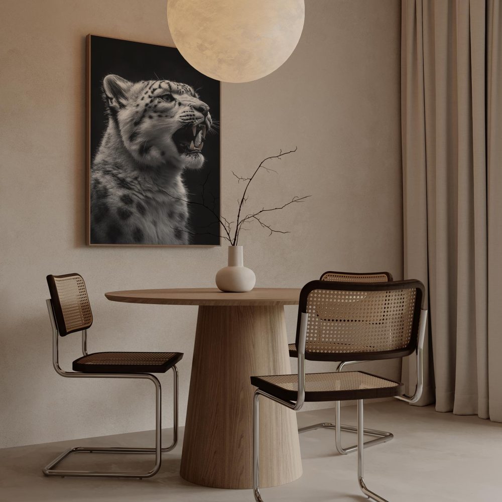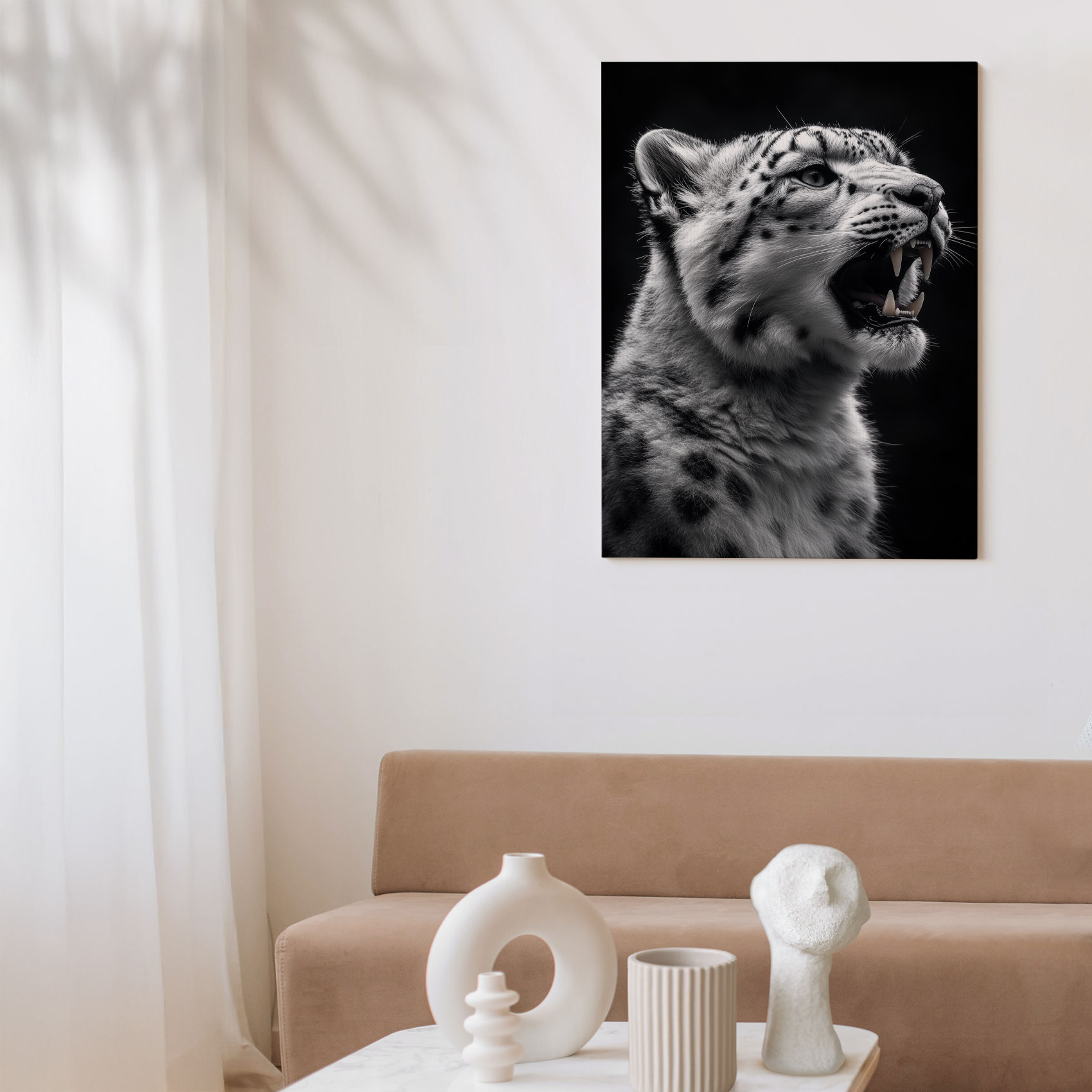 Terug naar collectie / Schilderijen / Dieren Schilderij / Fel Zwart-Wit Sneeuwluipaard