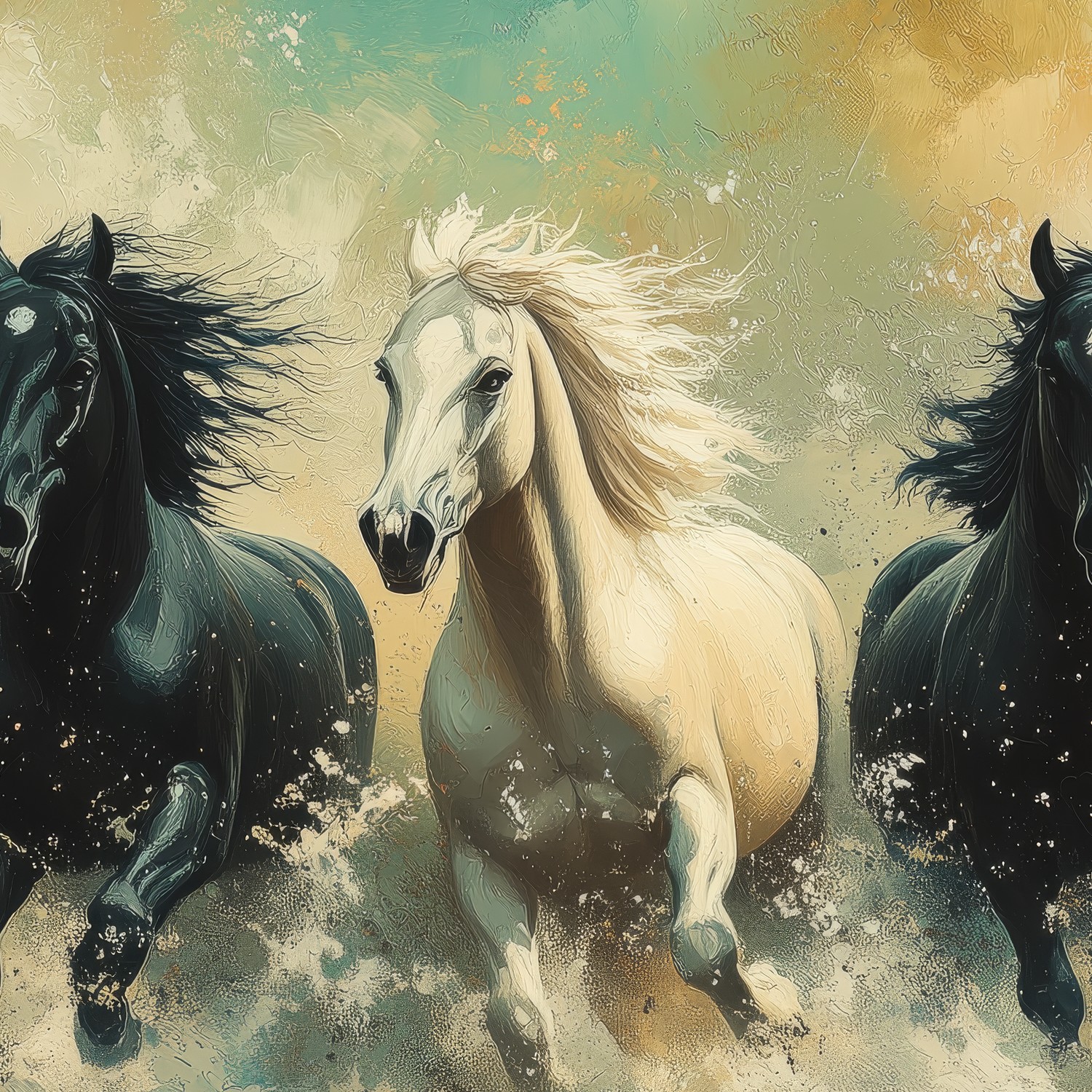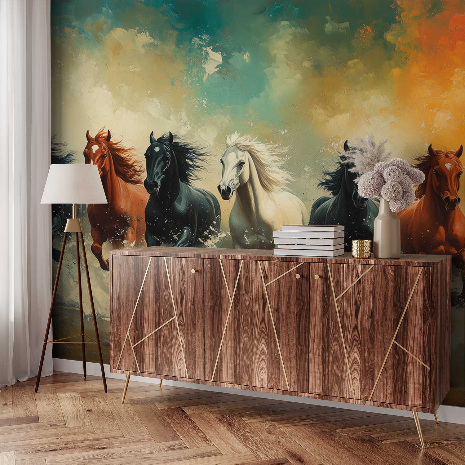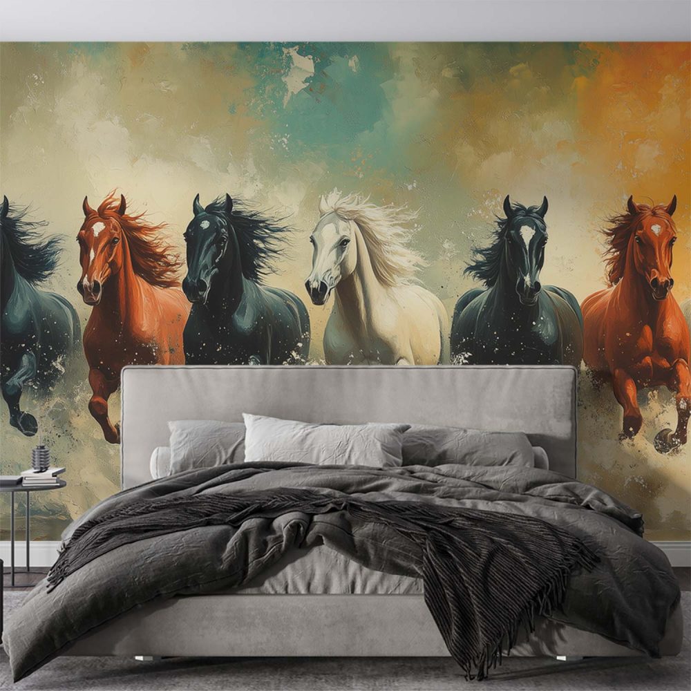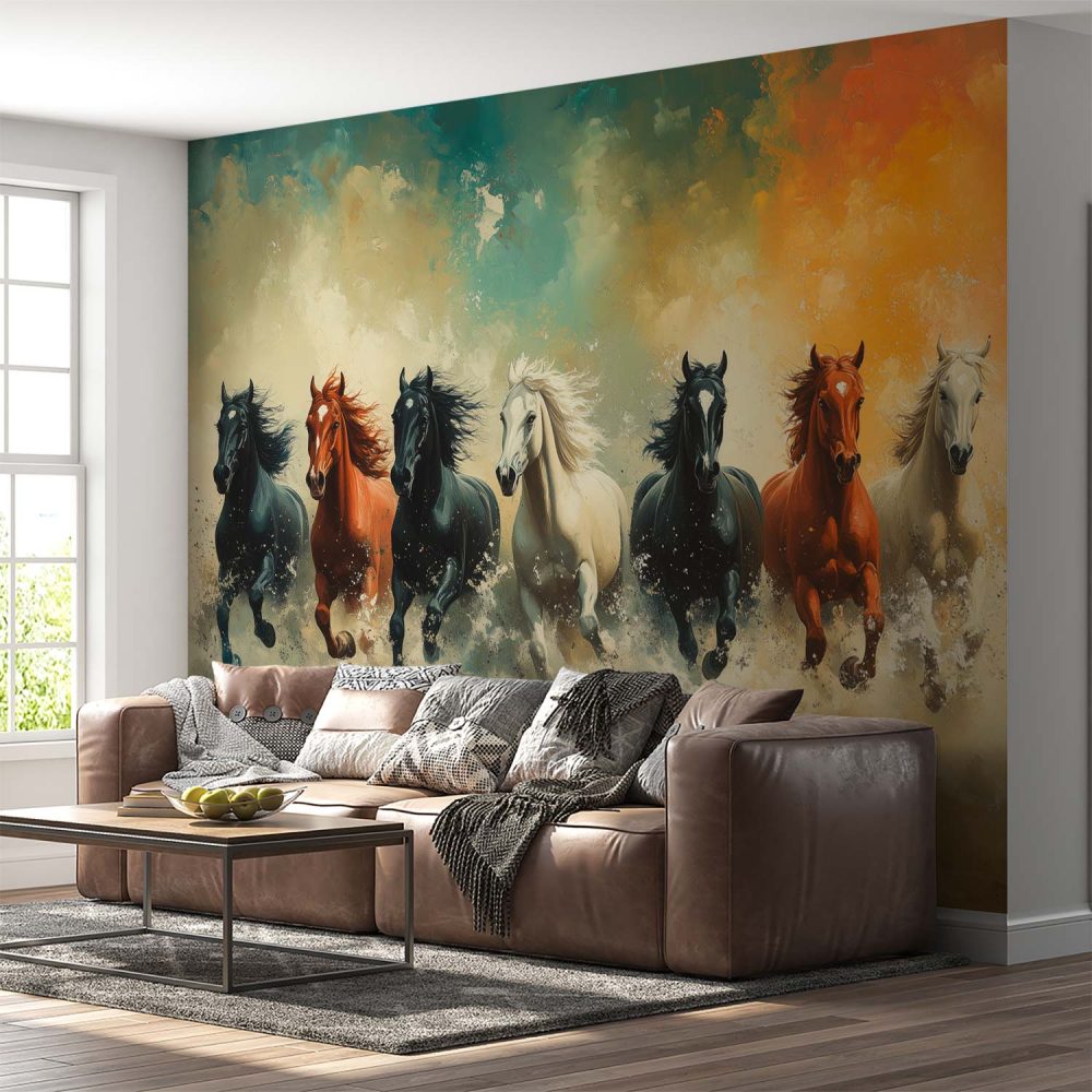 Terug naar collectie / Behang / Abstract behang / Galloperende Paarden in Water behang