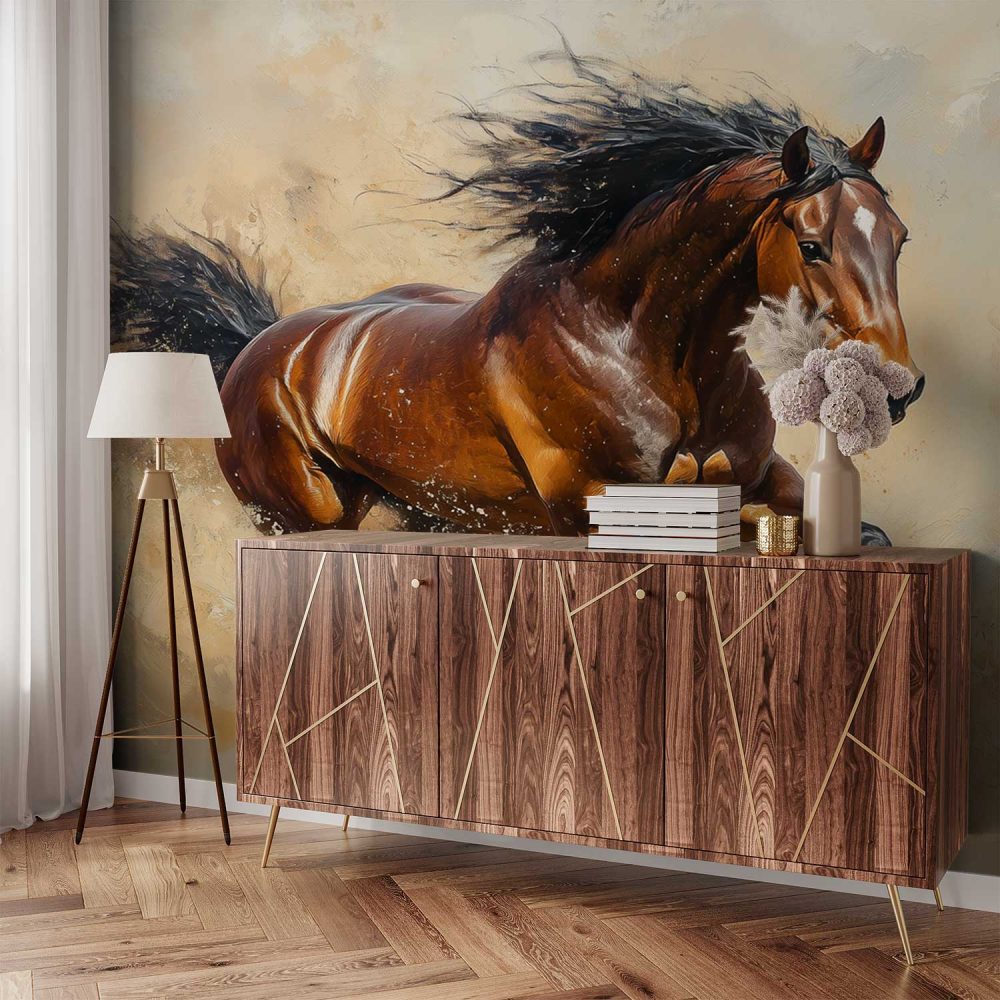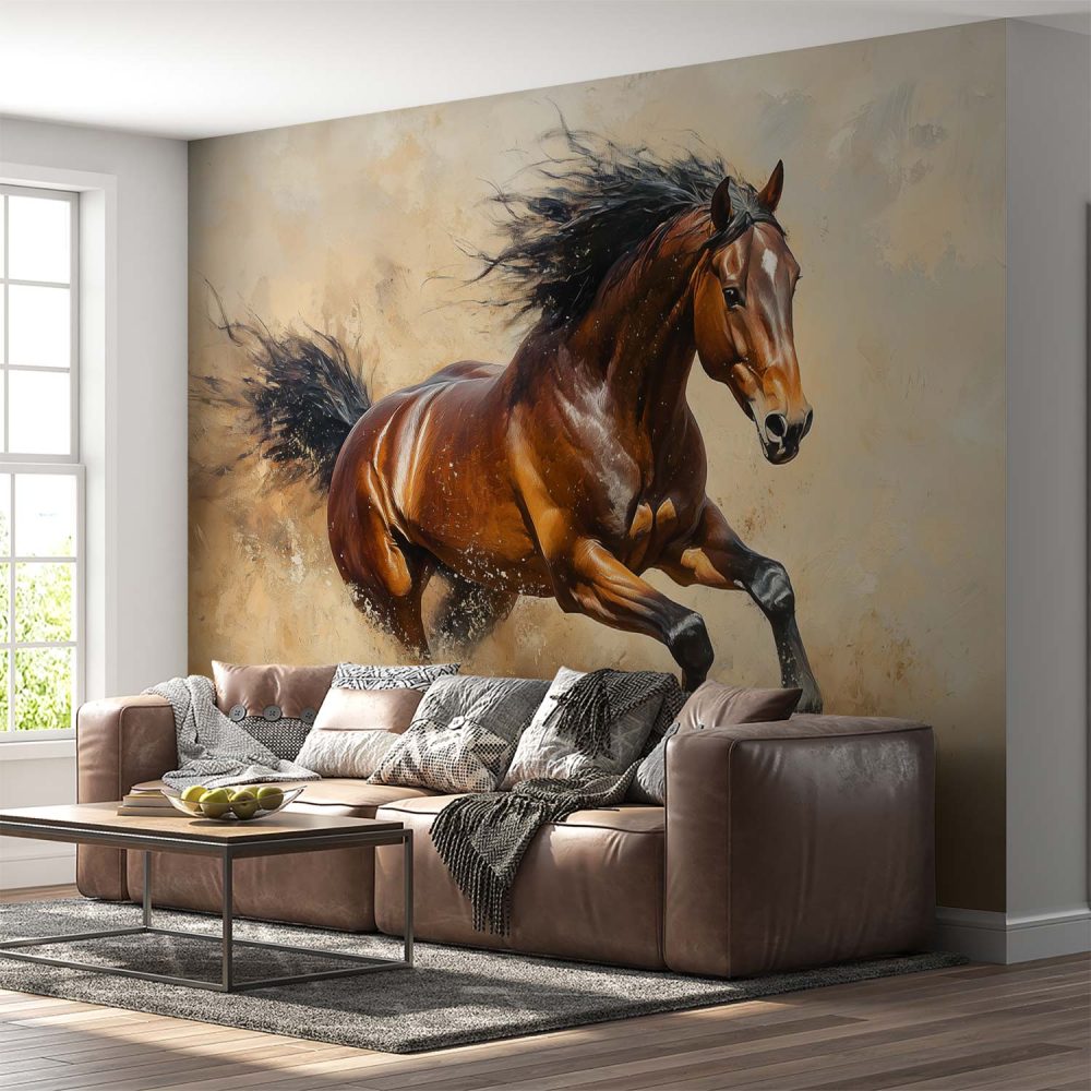 Galopperend bruin paard behang