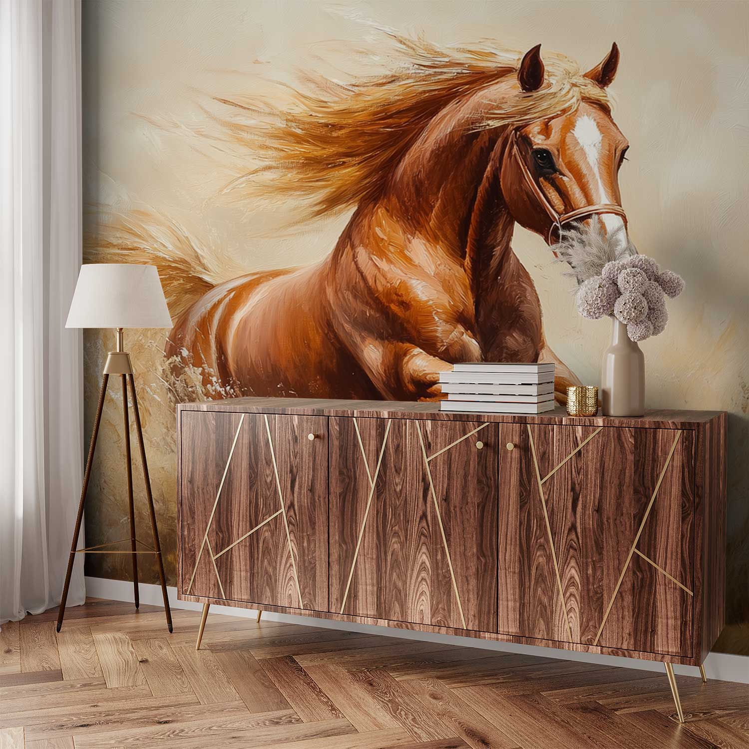Terug naar collectie / Behang / Galopperend Bruin Paard behang