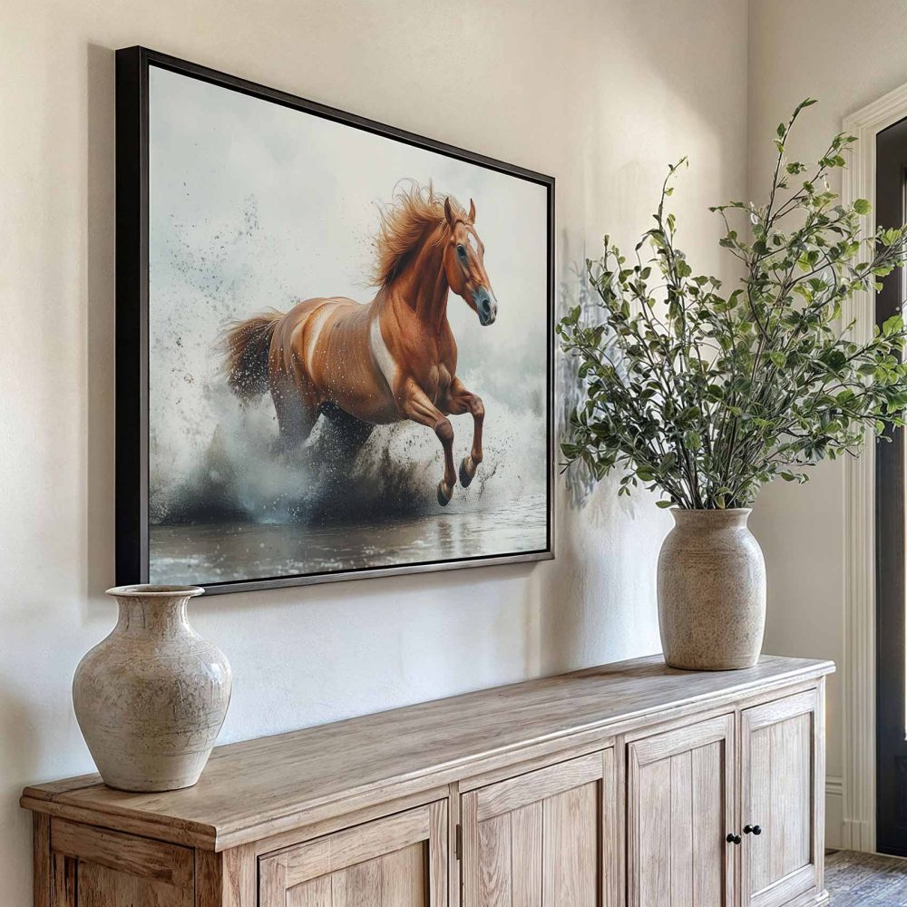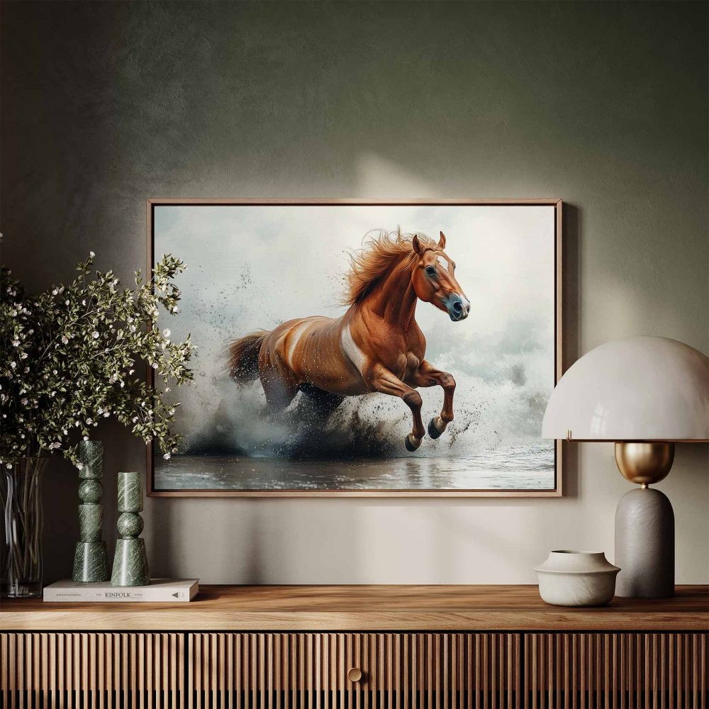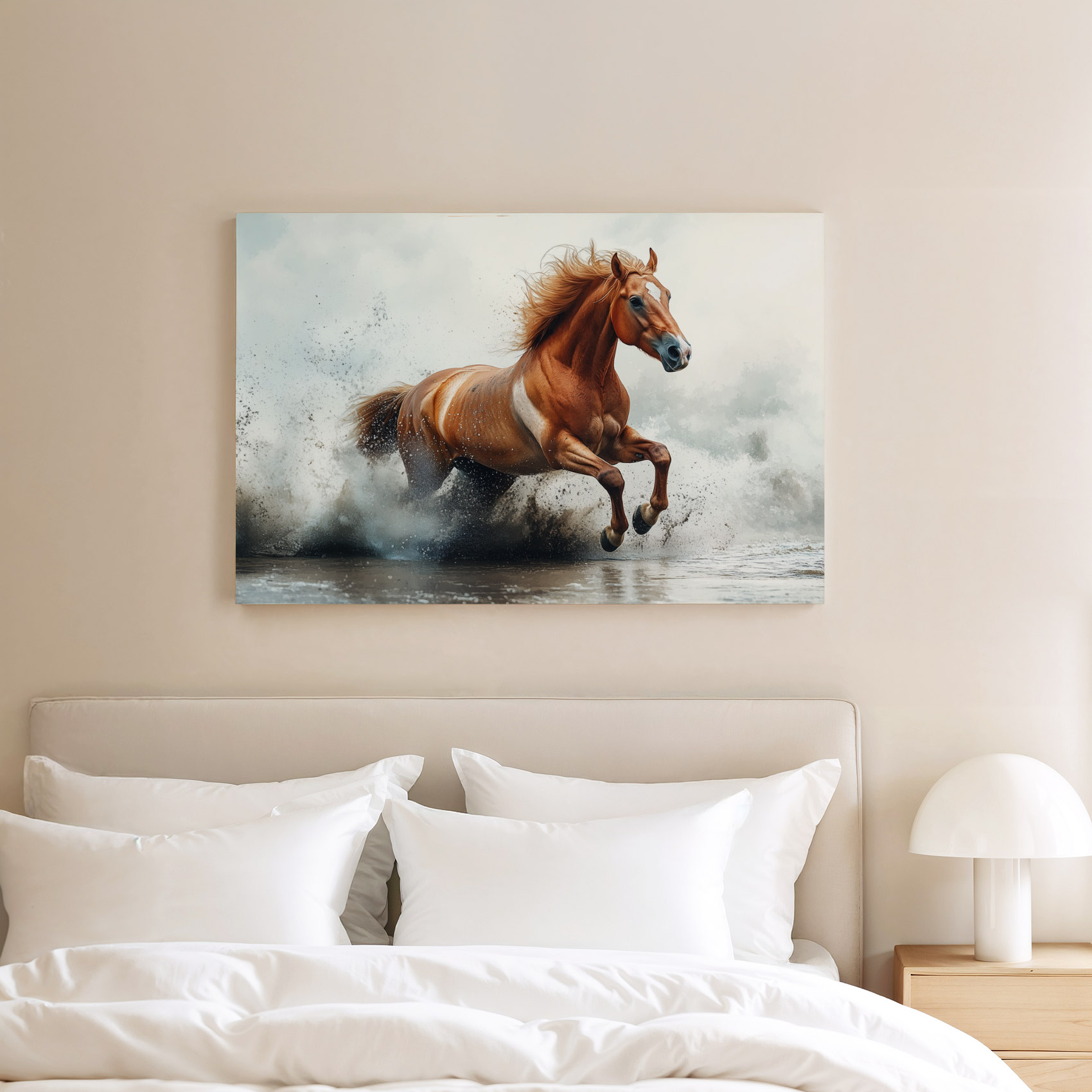 Terug naar collectie / Schilderijen / Dieren Schilderij / Galopperend paard in water