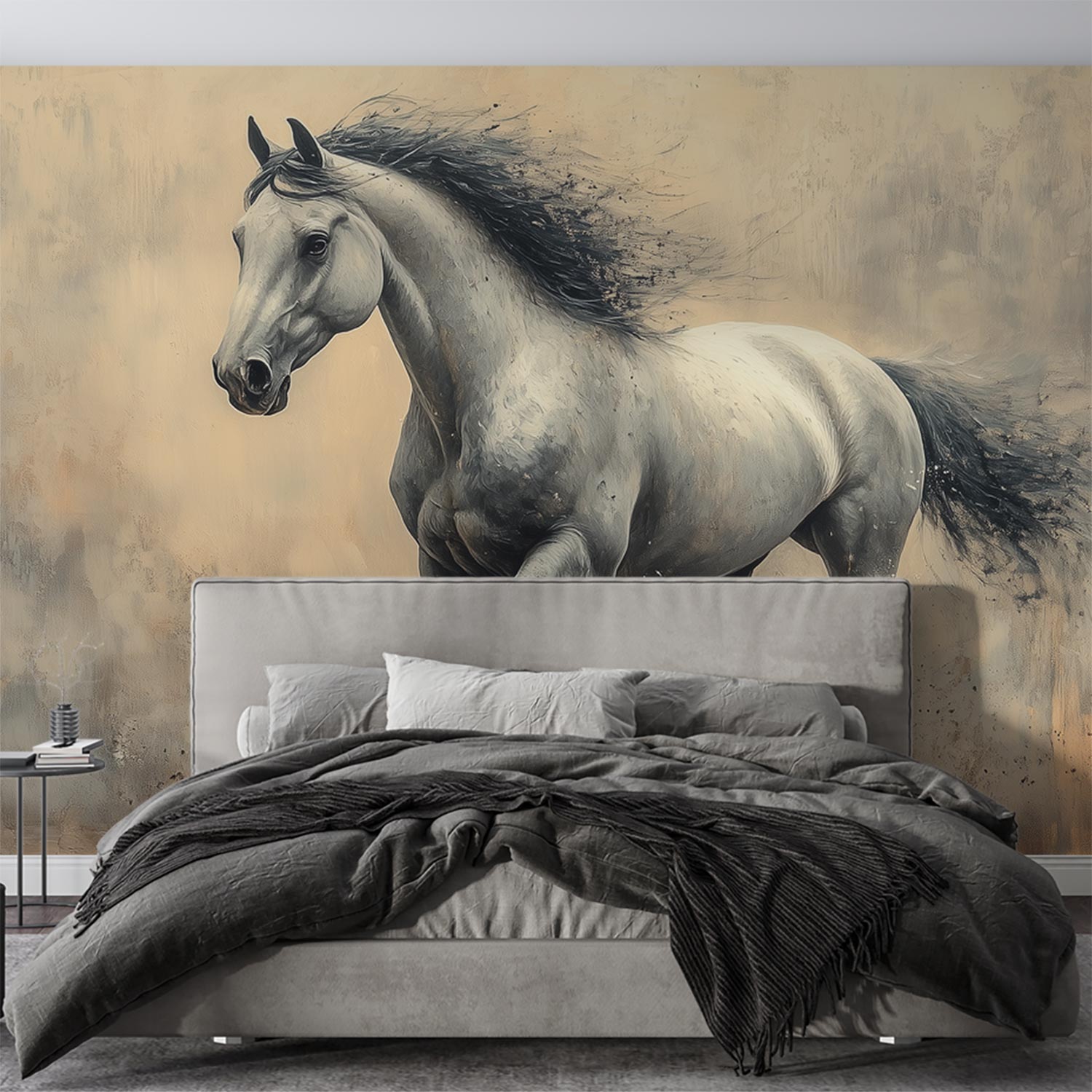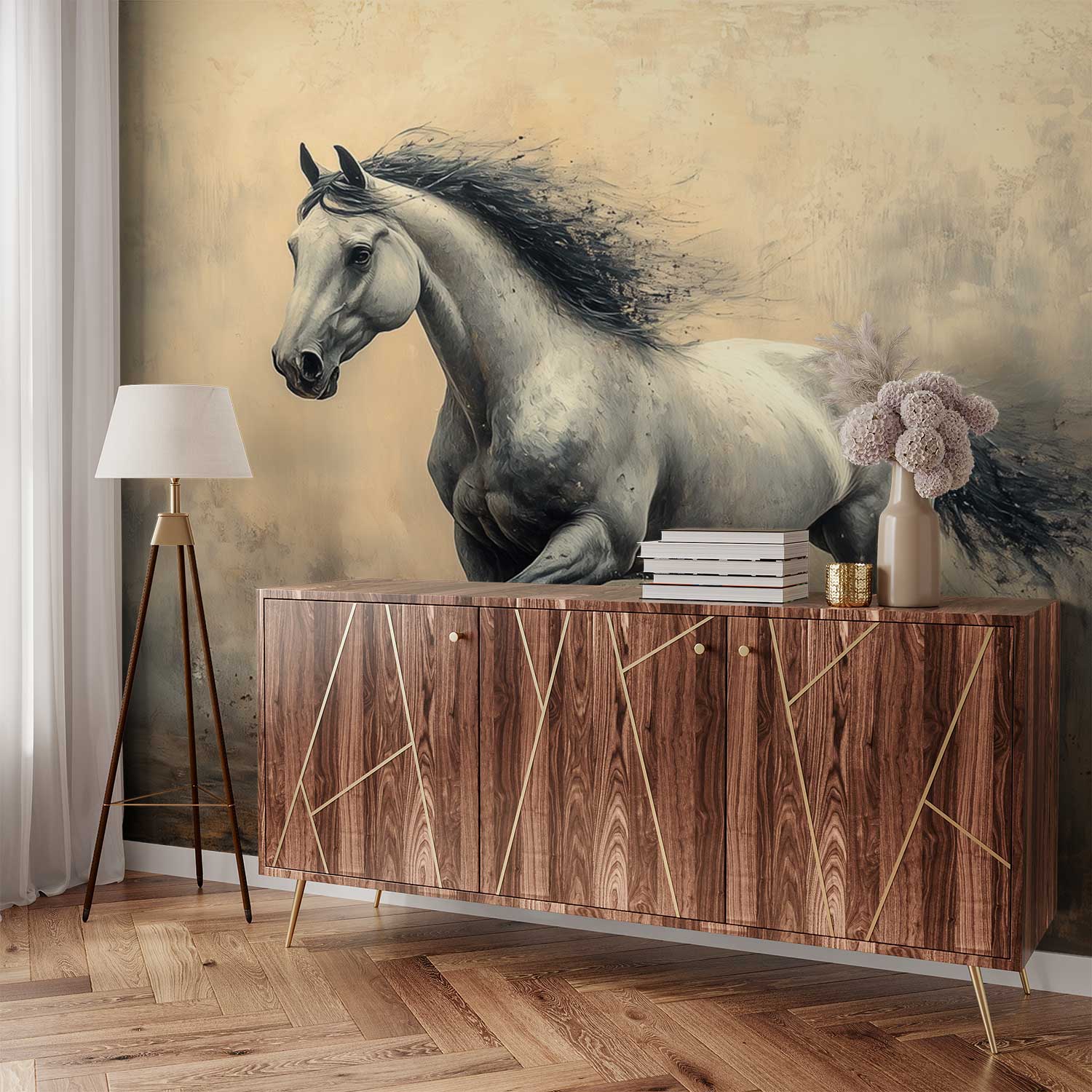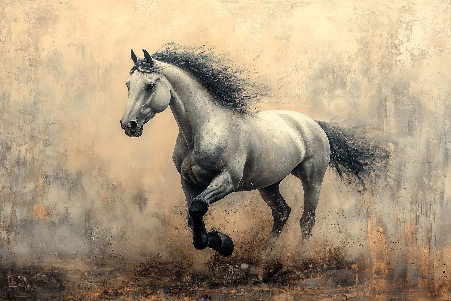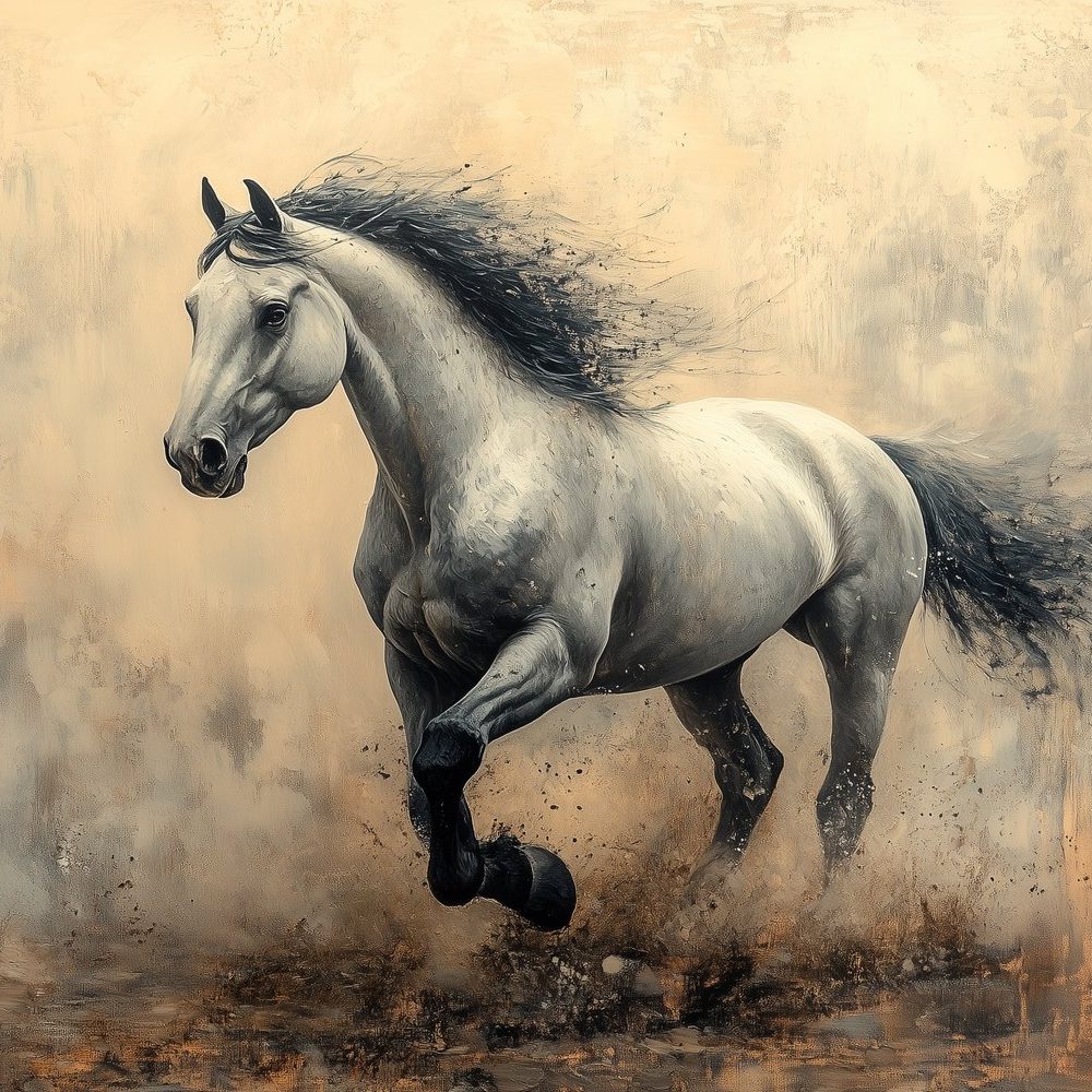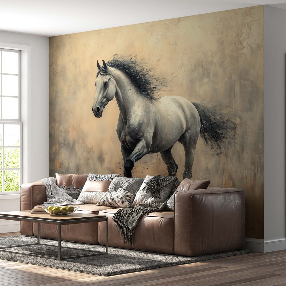 Galopperend Paard in Zwart-Wit behang