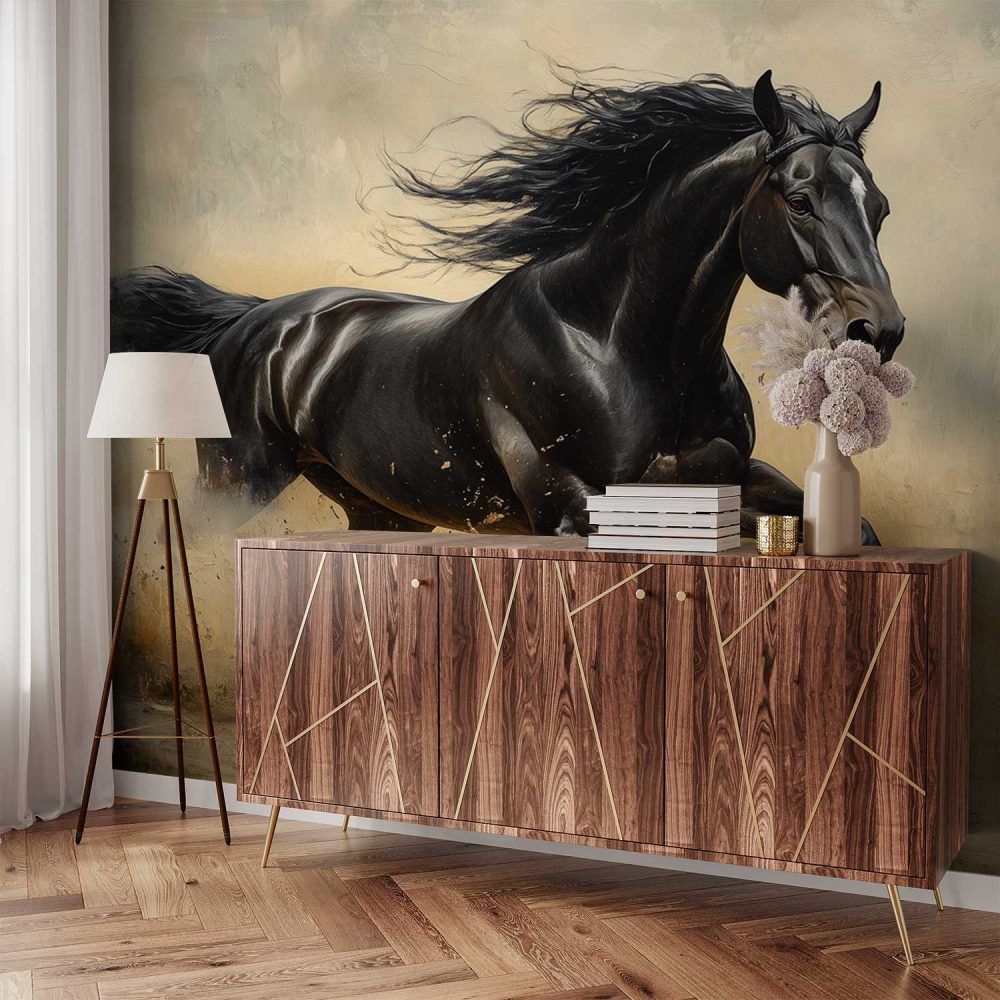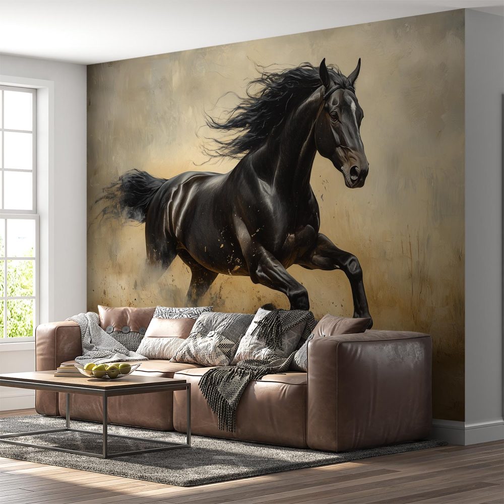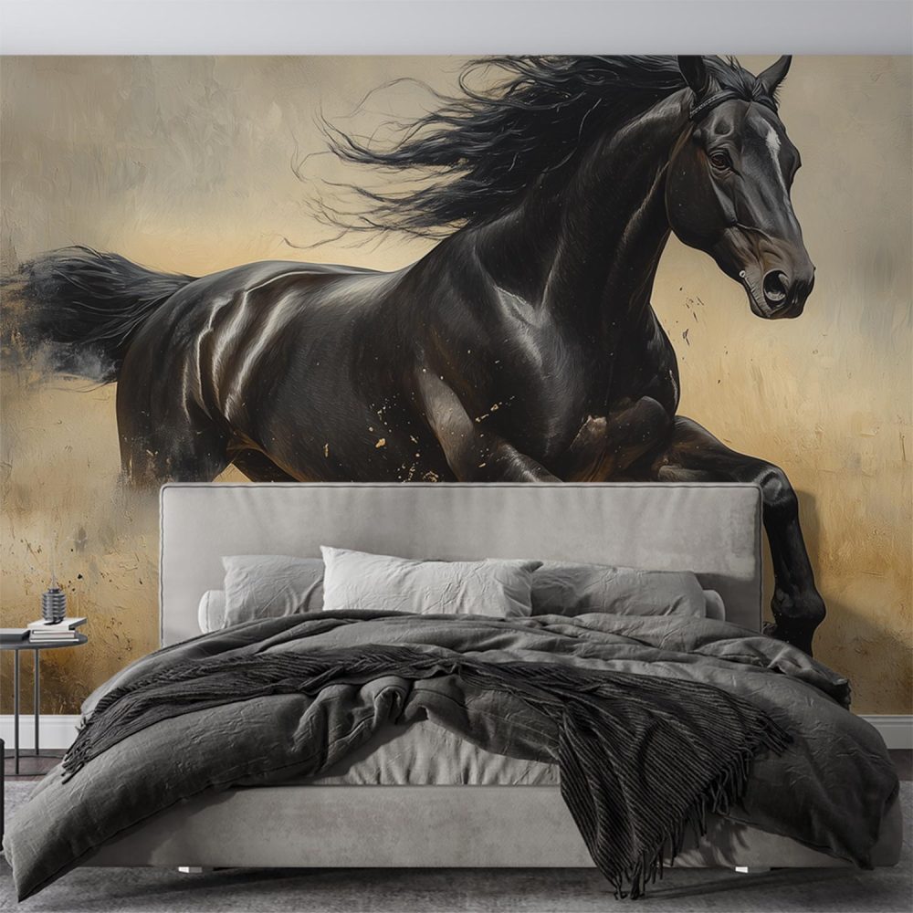 Galopperend Zwart Paard behang