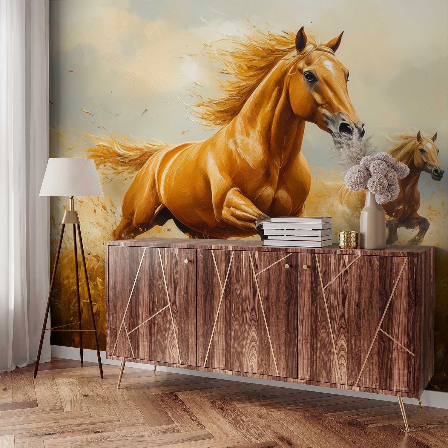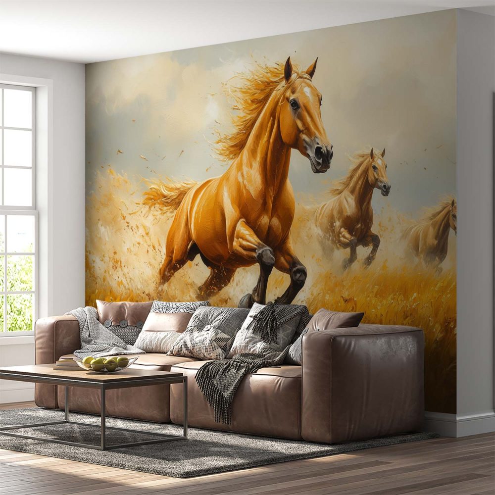 Galopperende Gouden Paarden behang