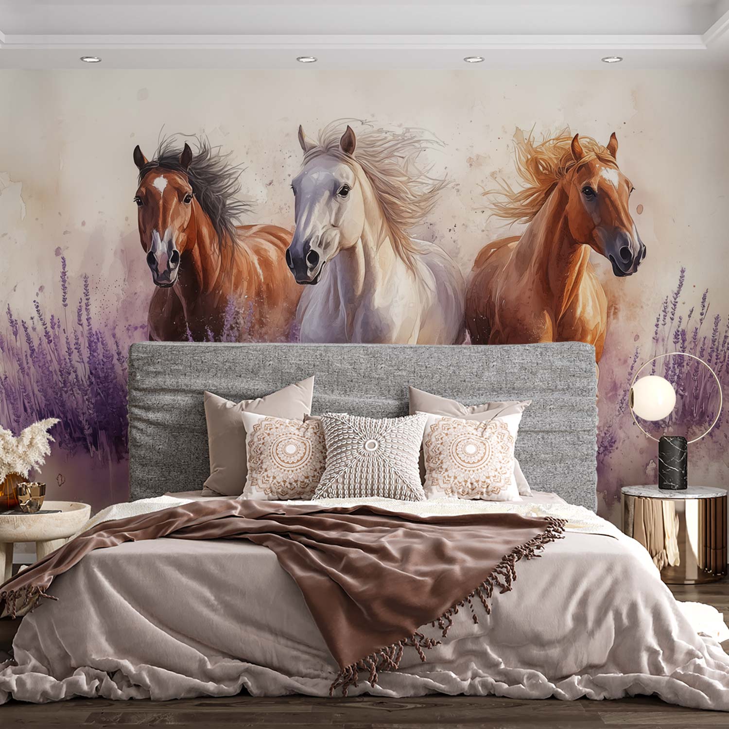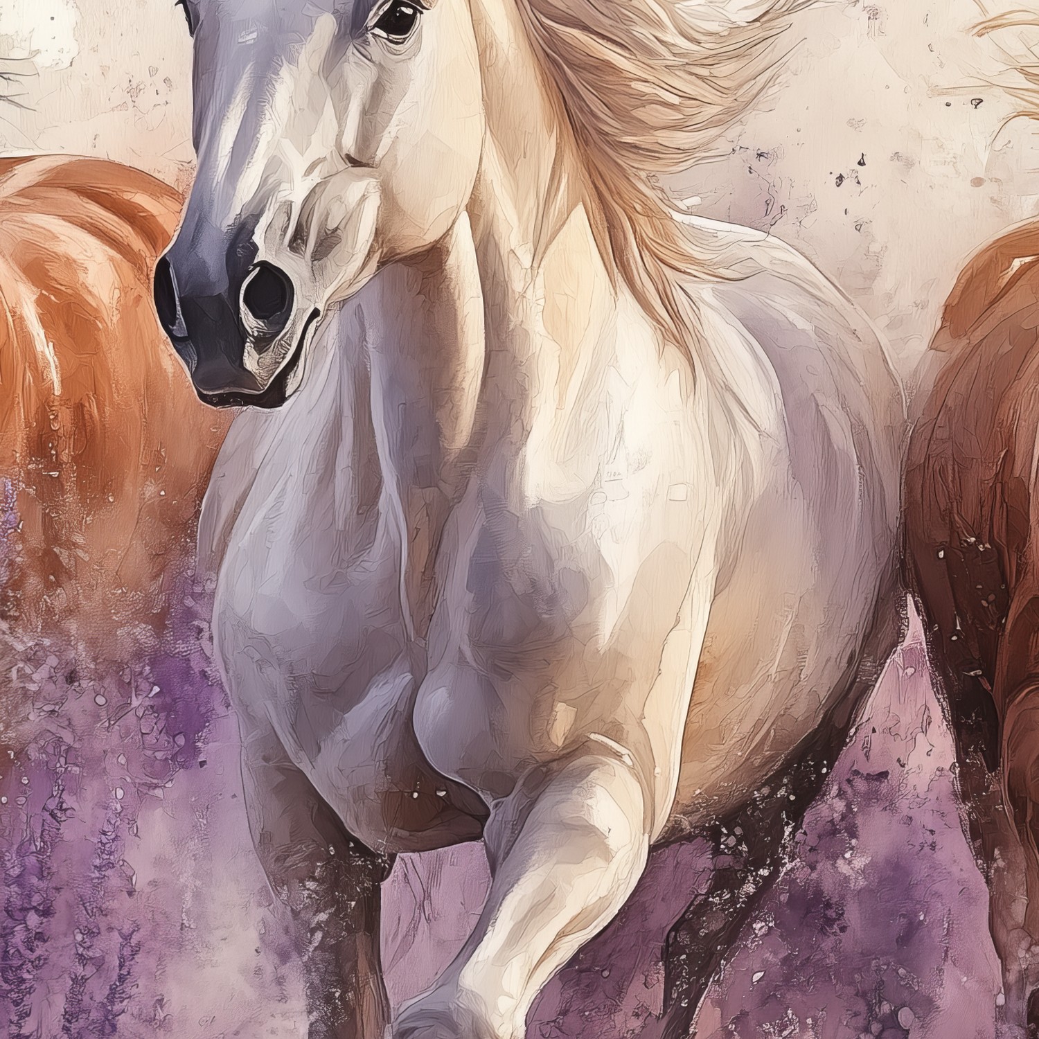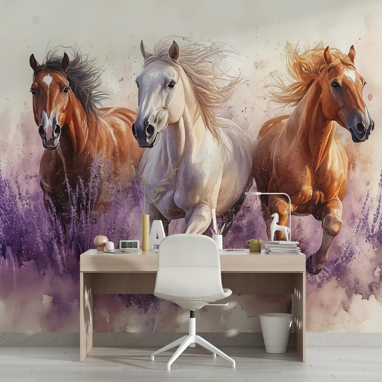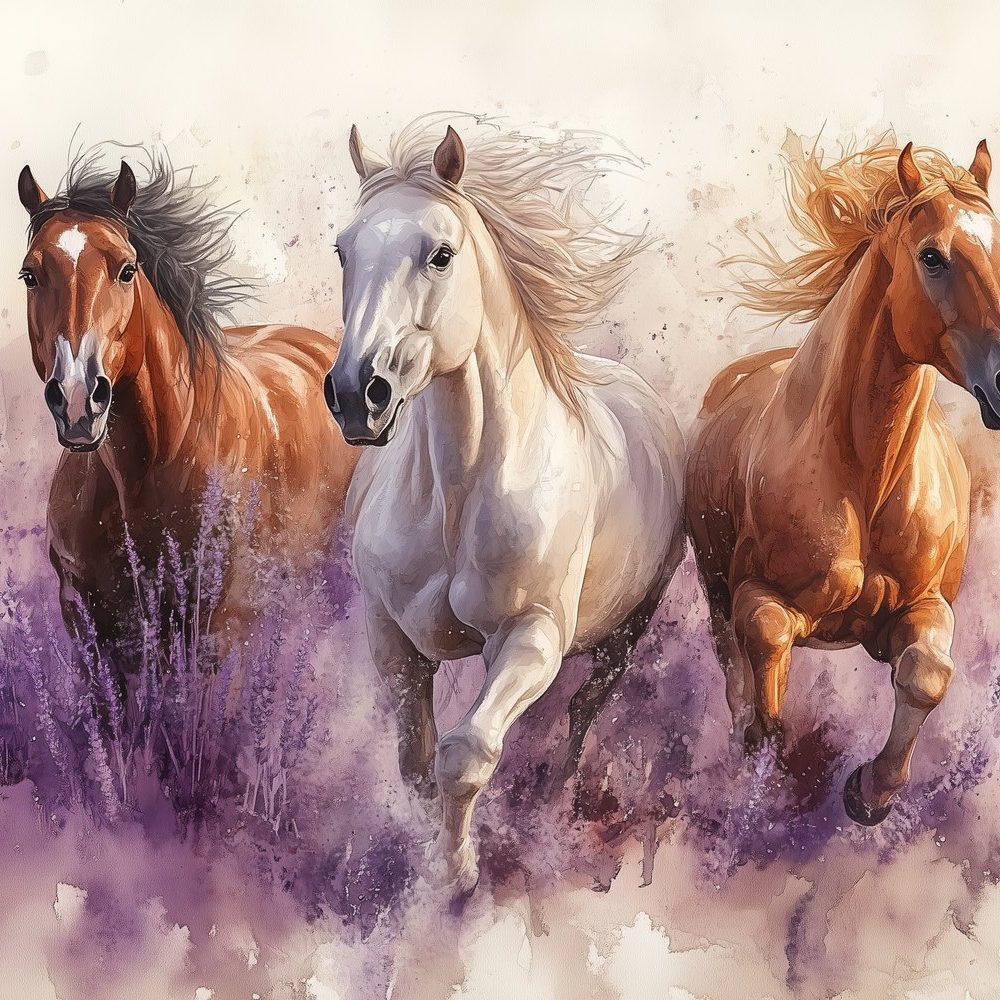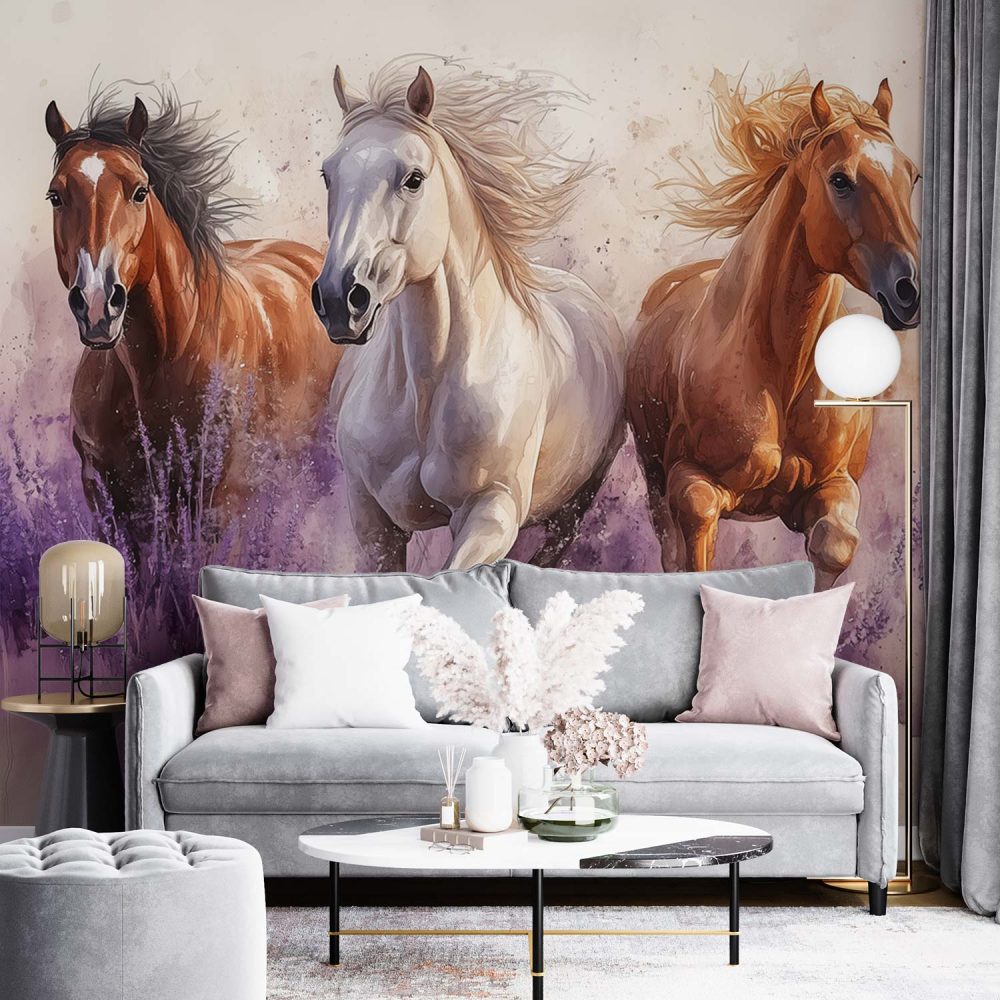 Galopperende paarden in lavendel behang