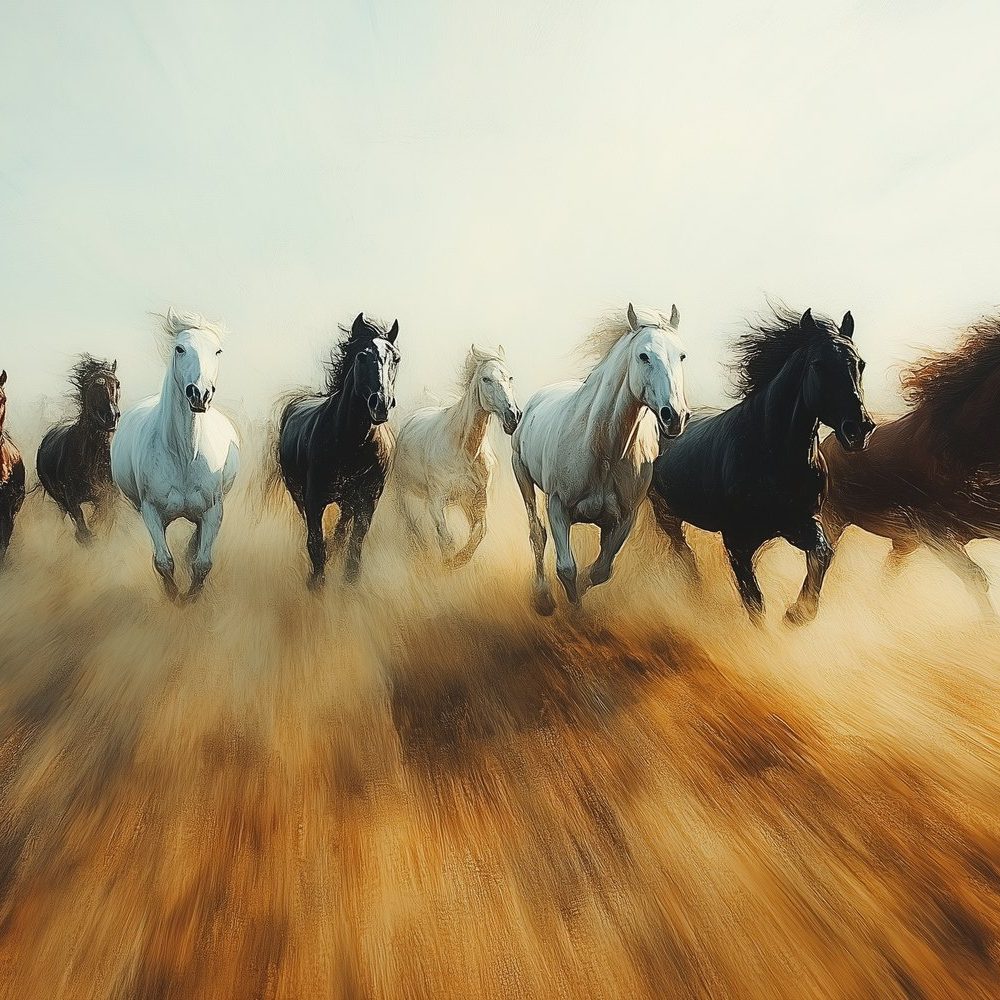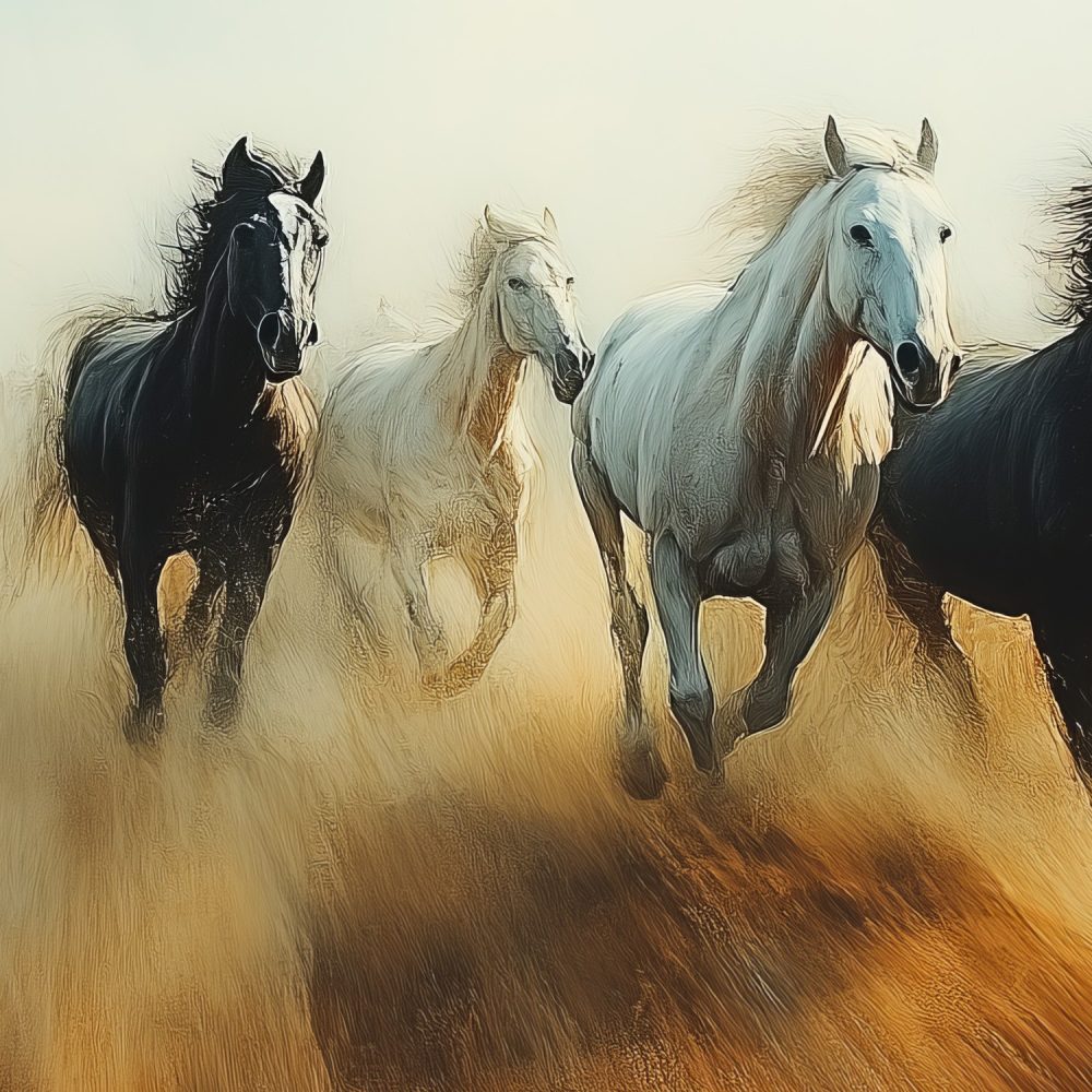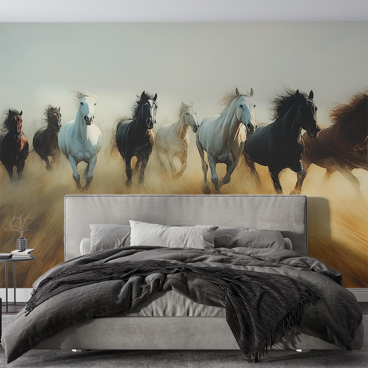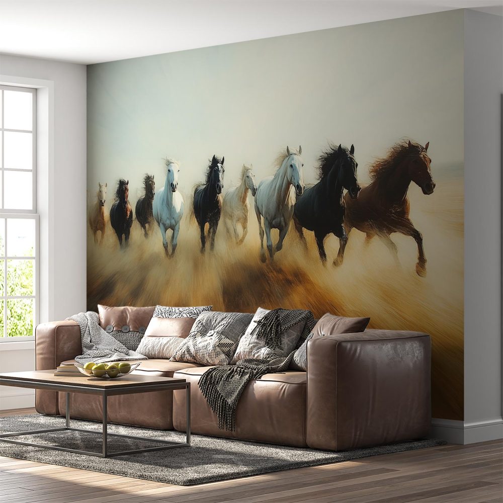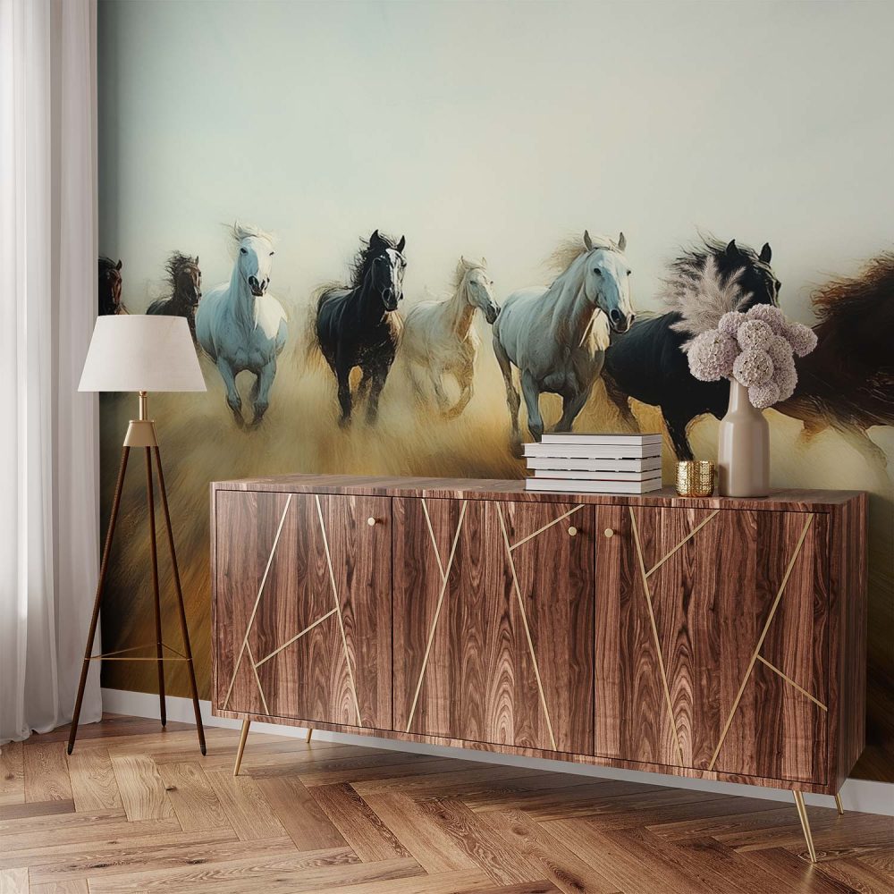 Terug naar collectie / Behang / Galopperende paarden in zand behang