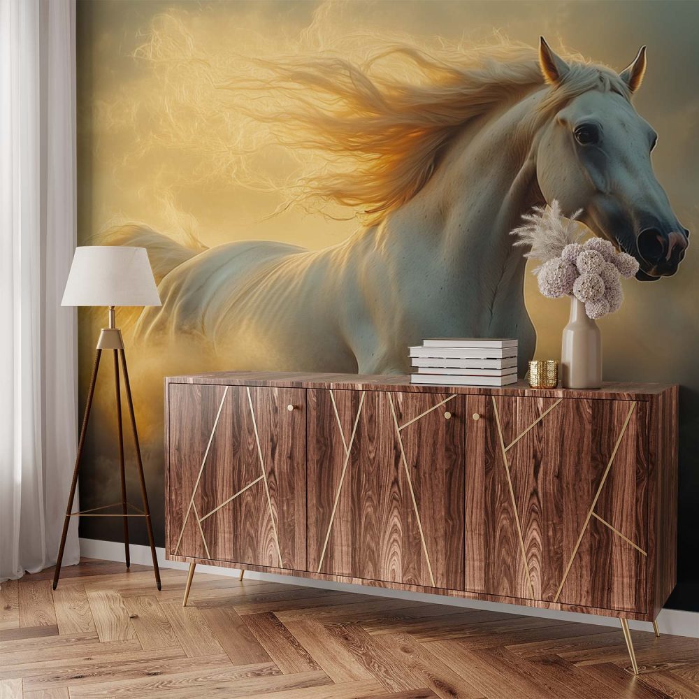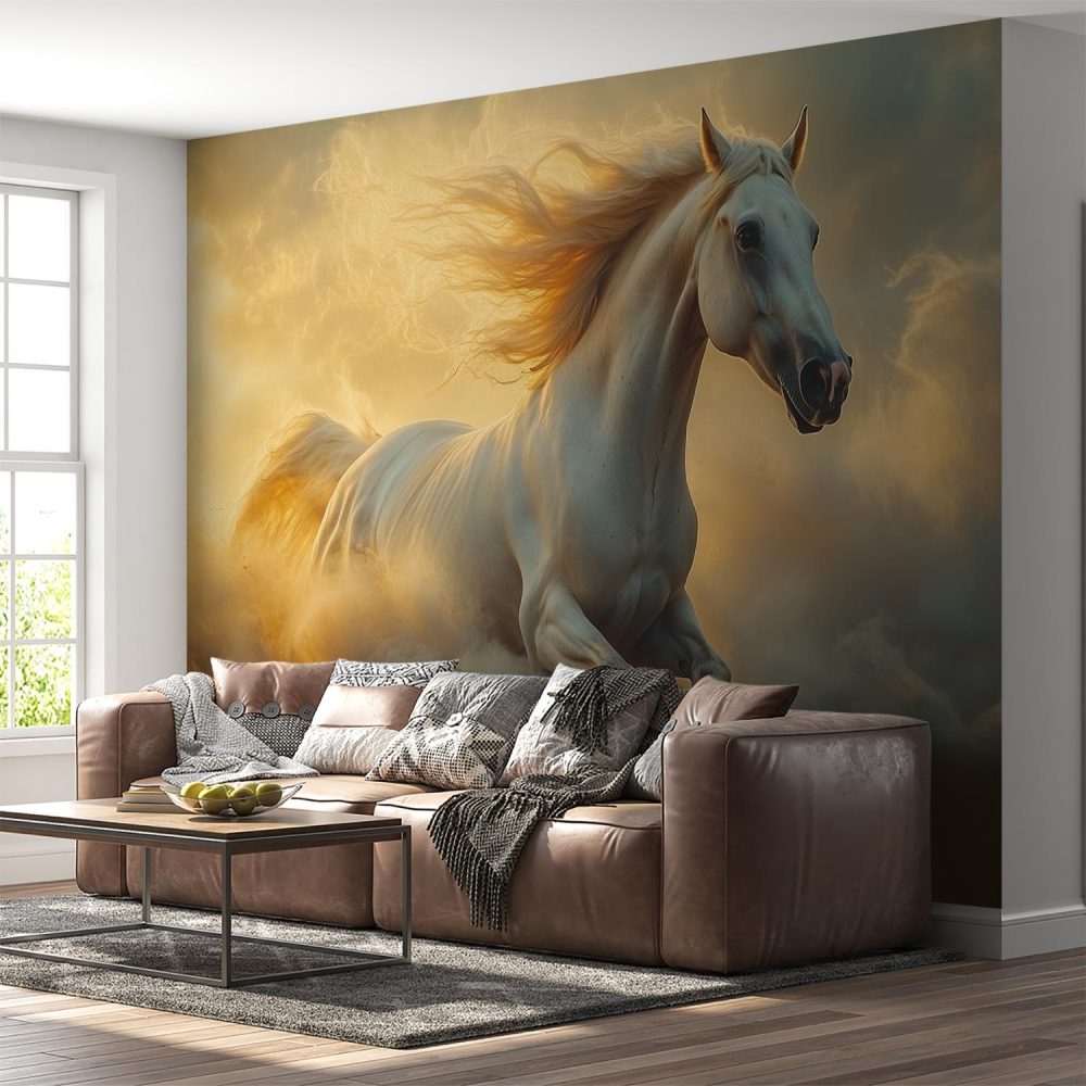 Terug naar collectie / Behang / Galopperende Witte Paardenkracht behang