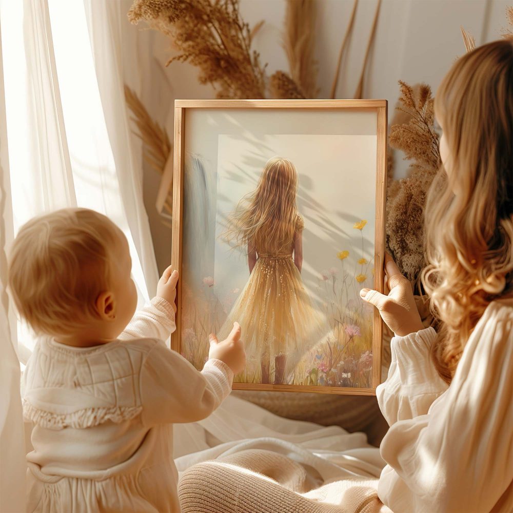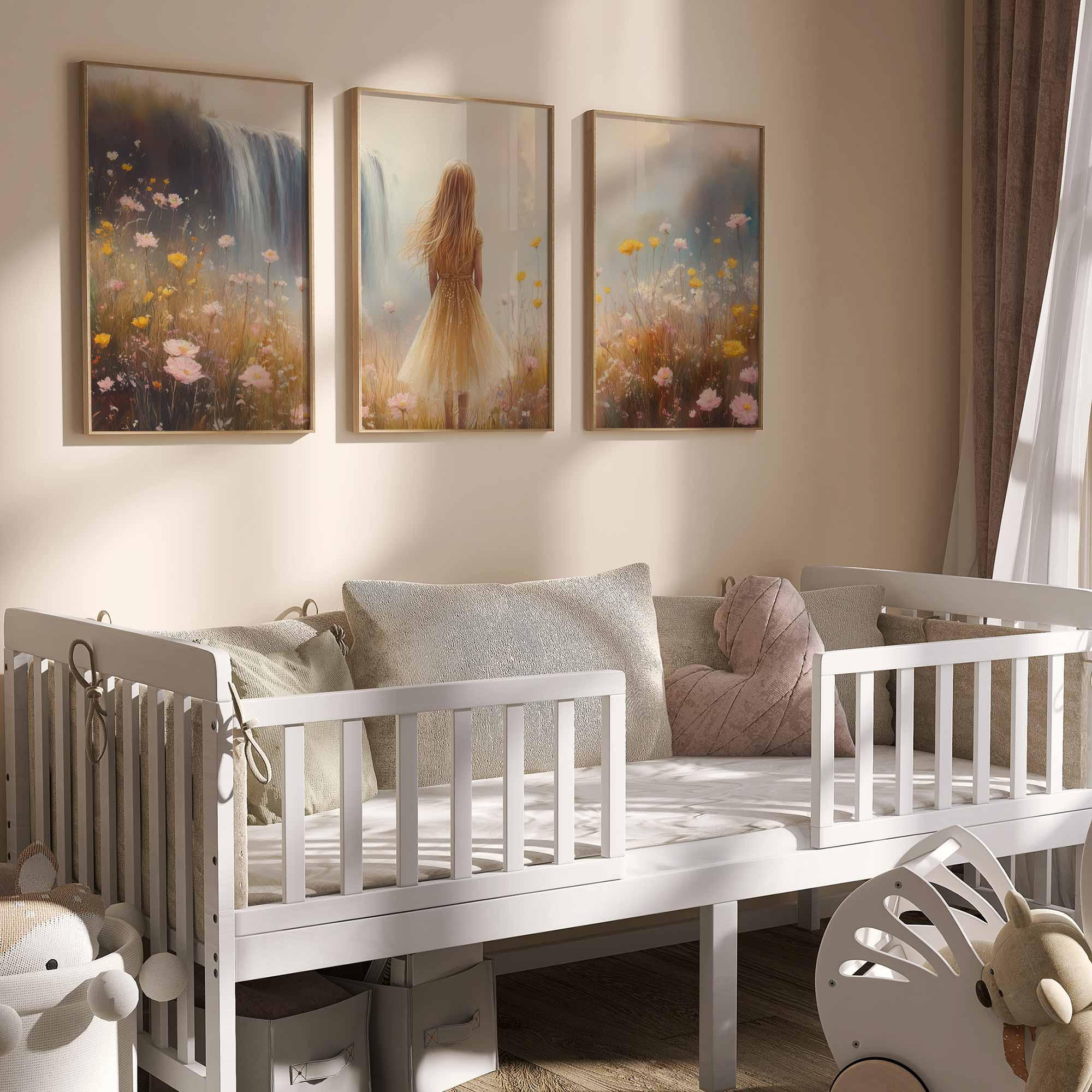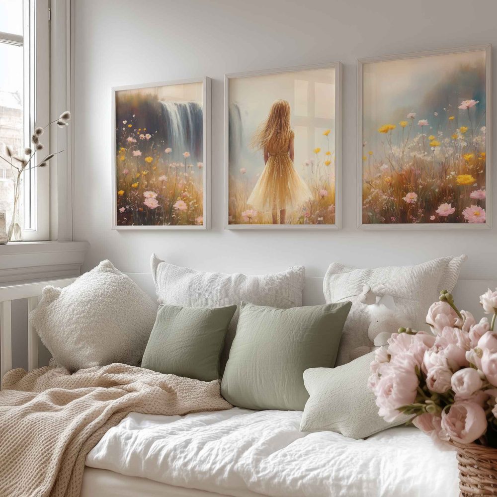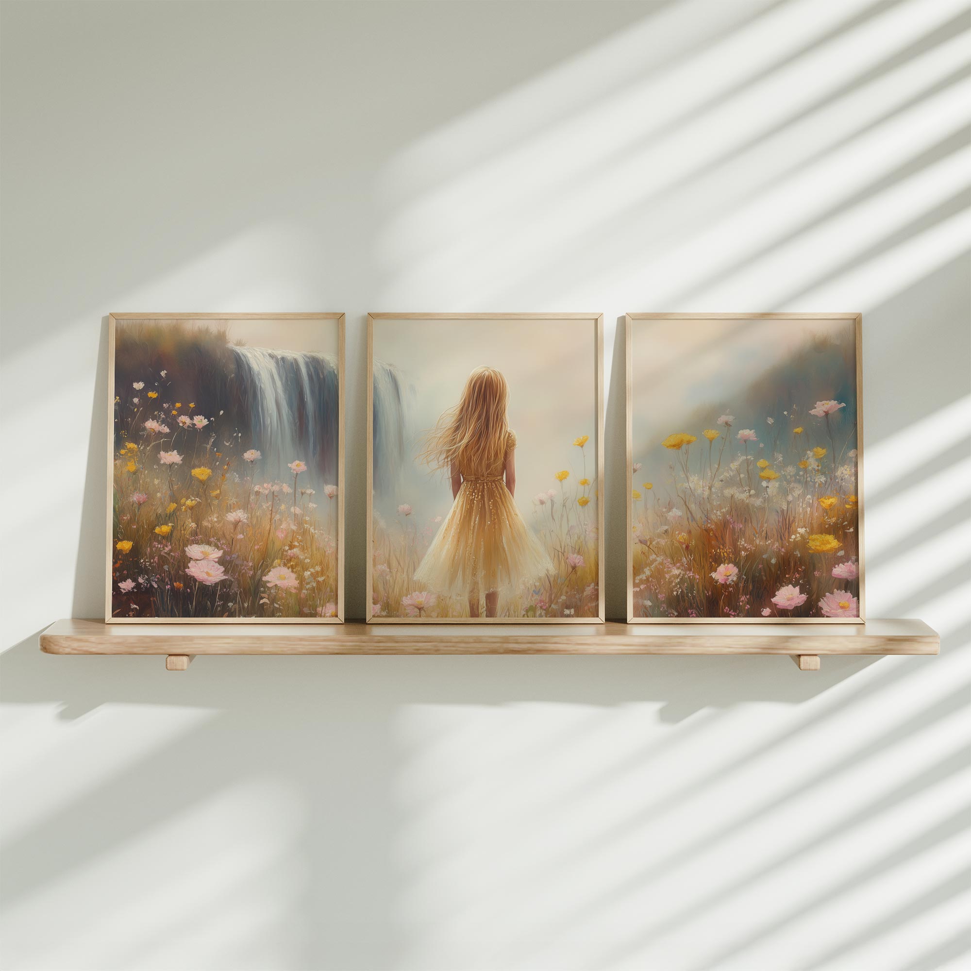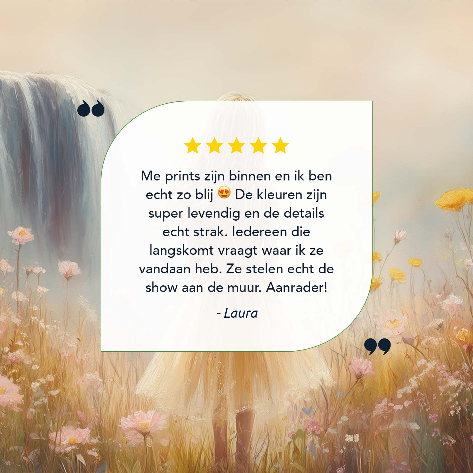 Geel jurkje bij de waterval – Dromerig bloemenveld