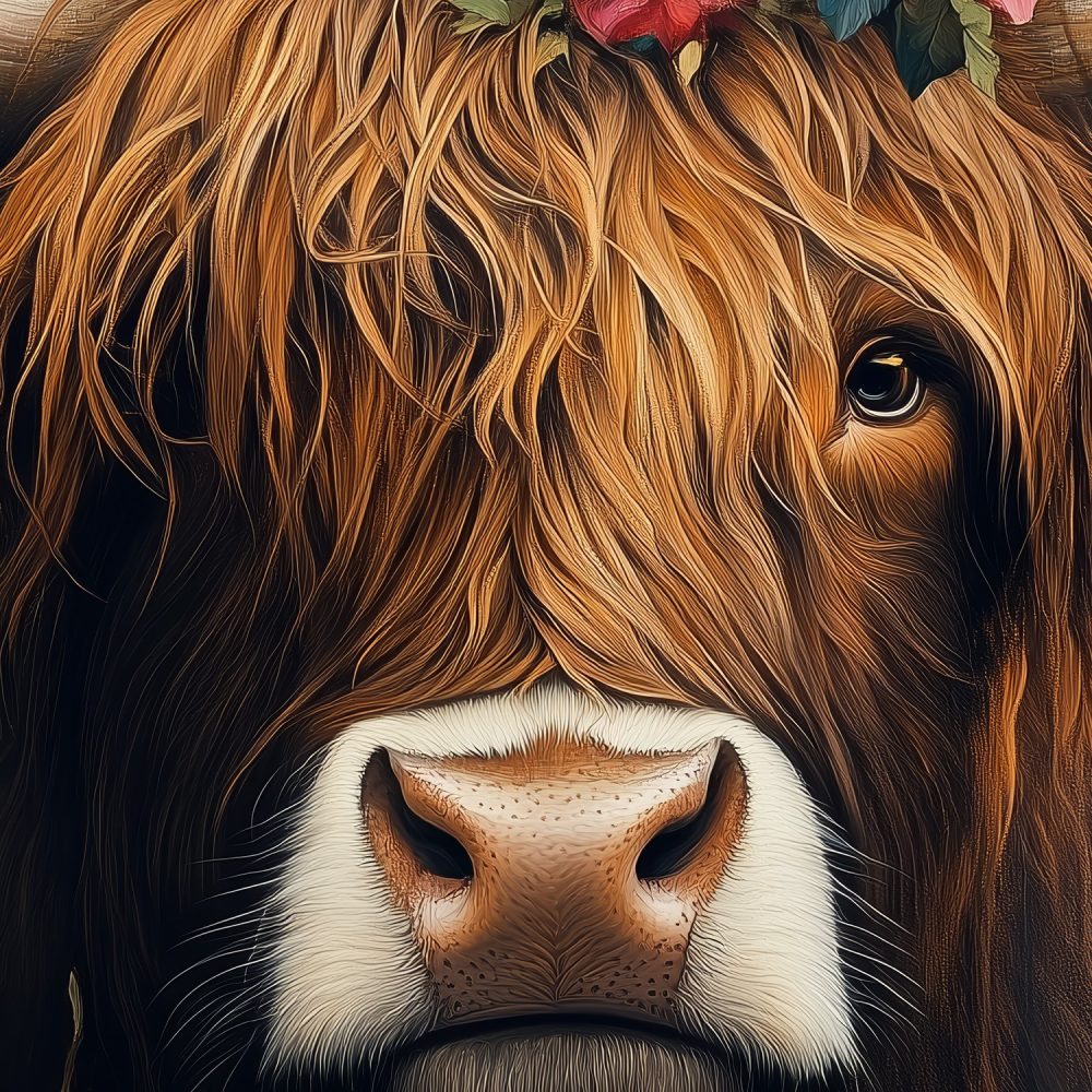 Terug naar collectie / Behang / Gekroonde koe met bloemen behang
