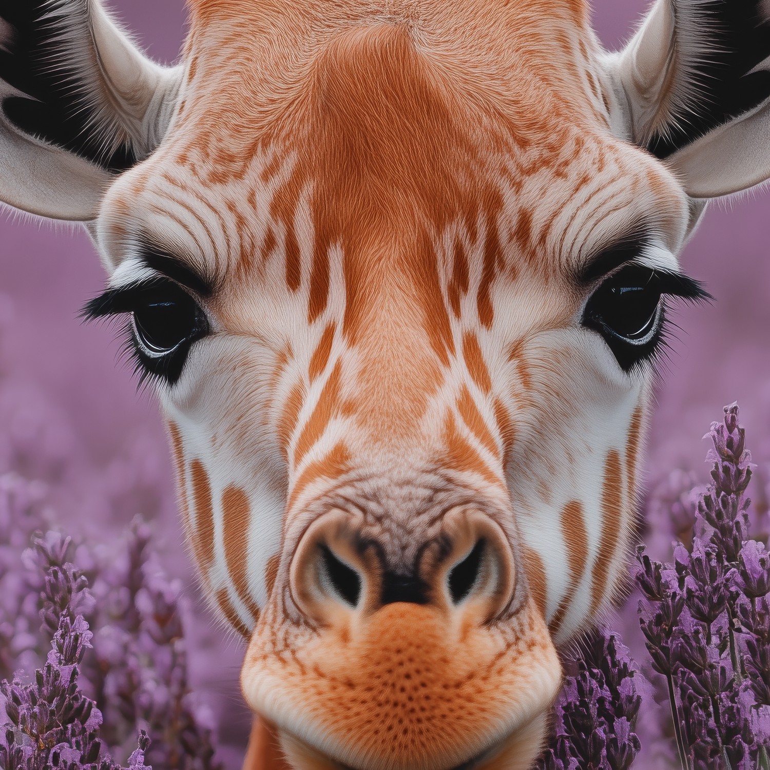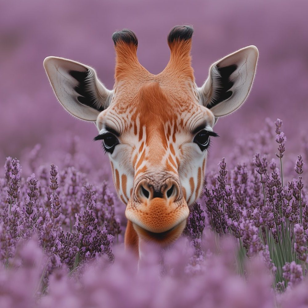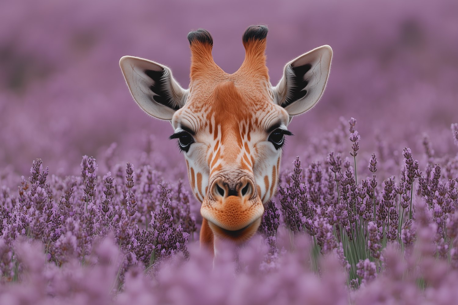 Terug naar collectie / Behang / Giraf in paarse bloemen behang
