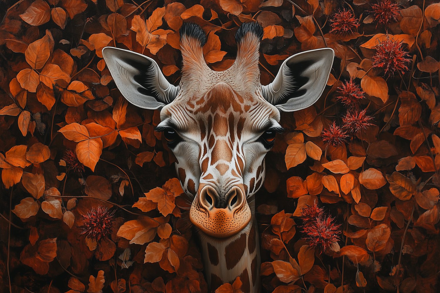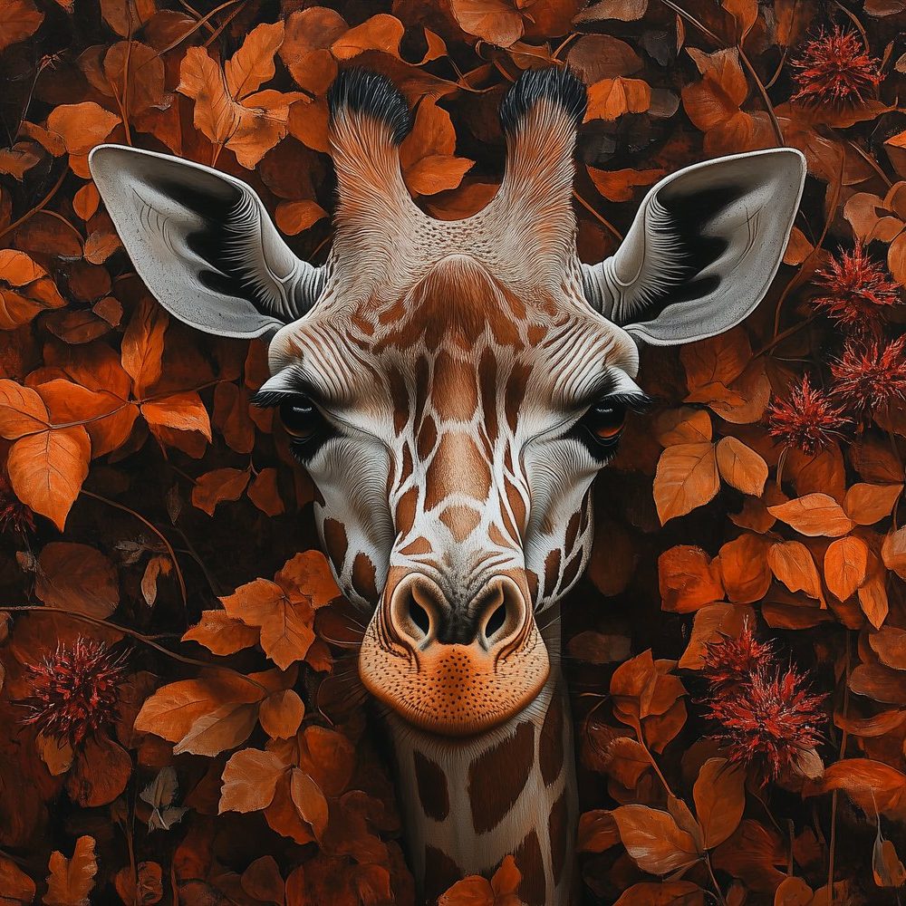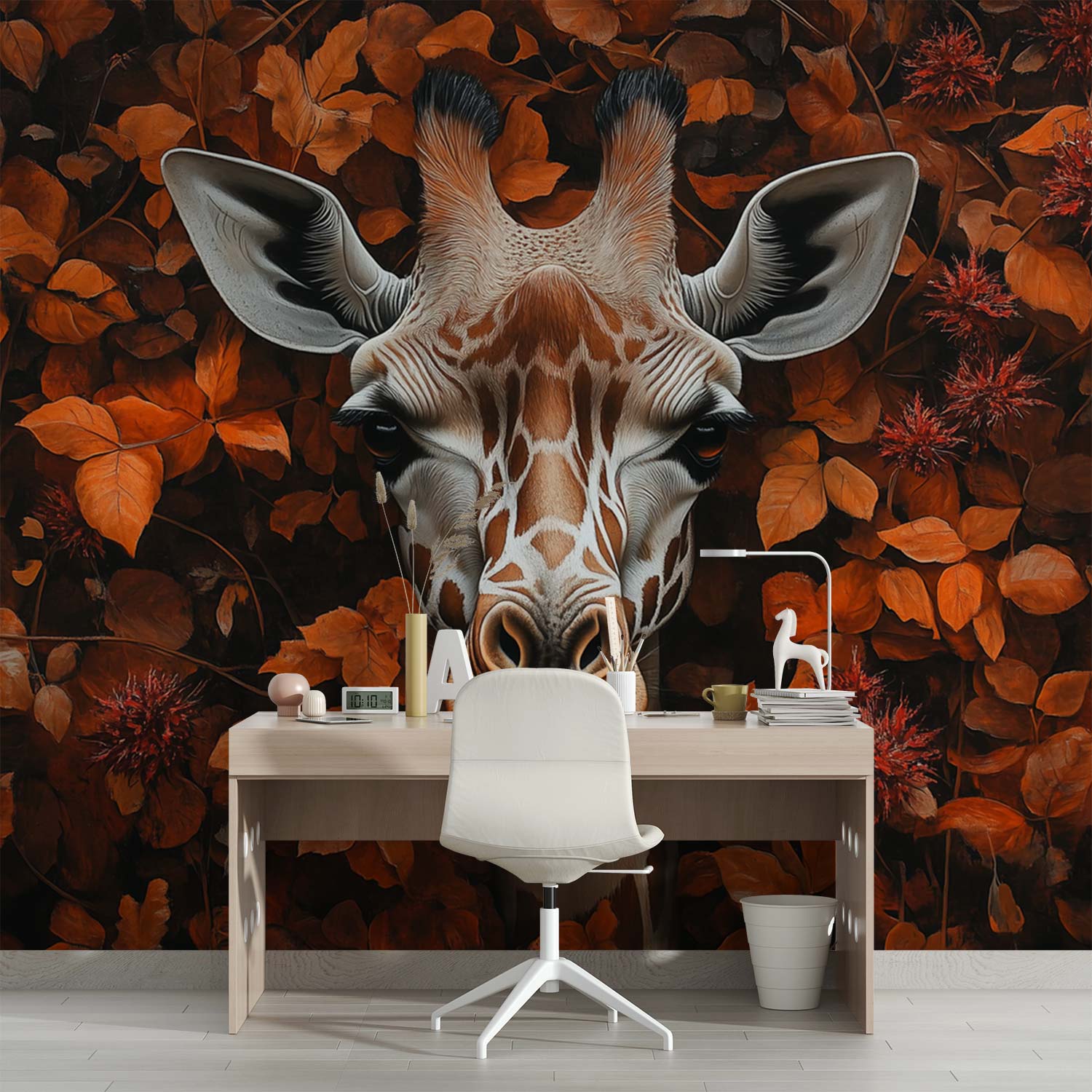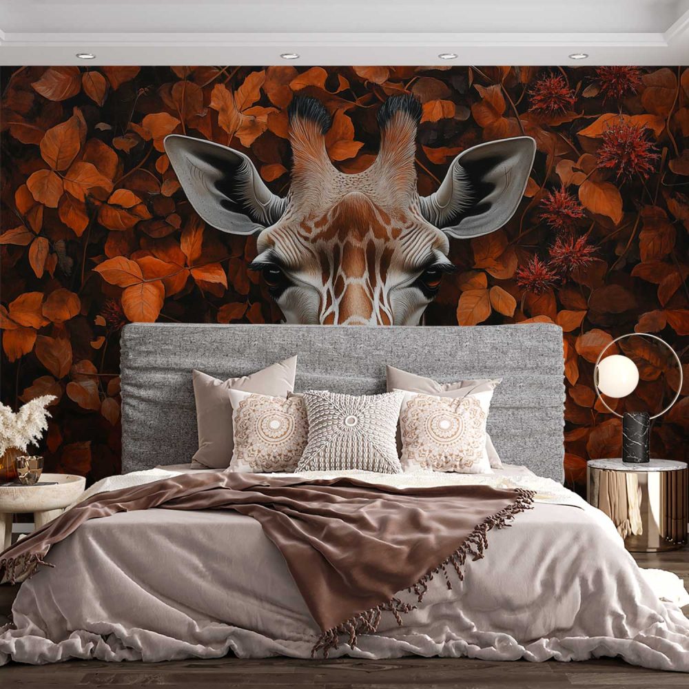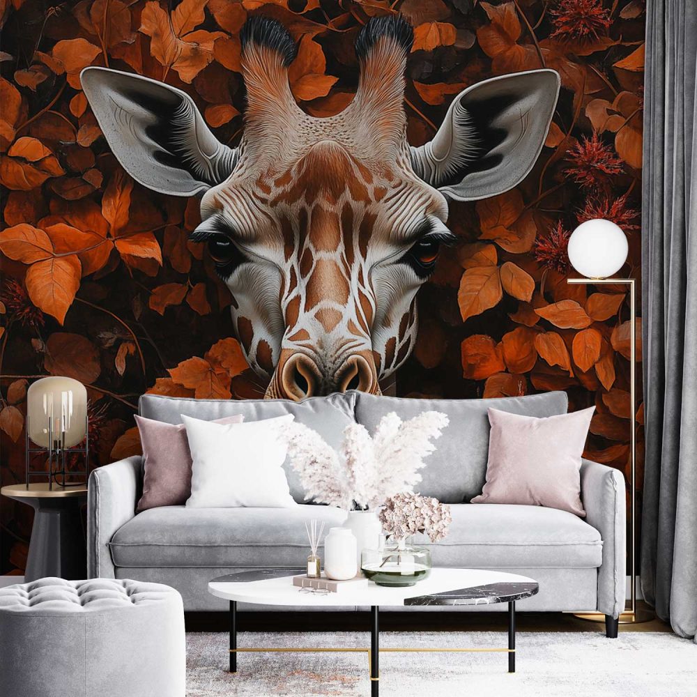 Giraf tussen oranje bladeren behang