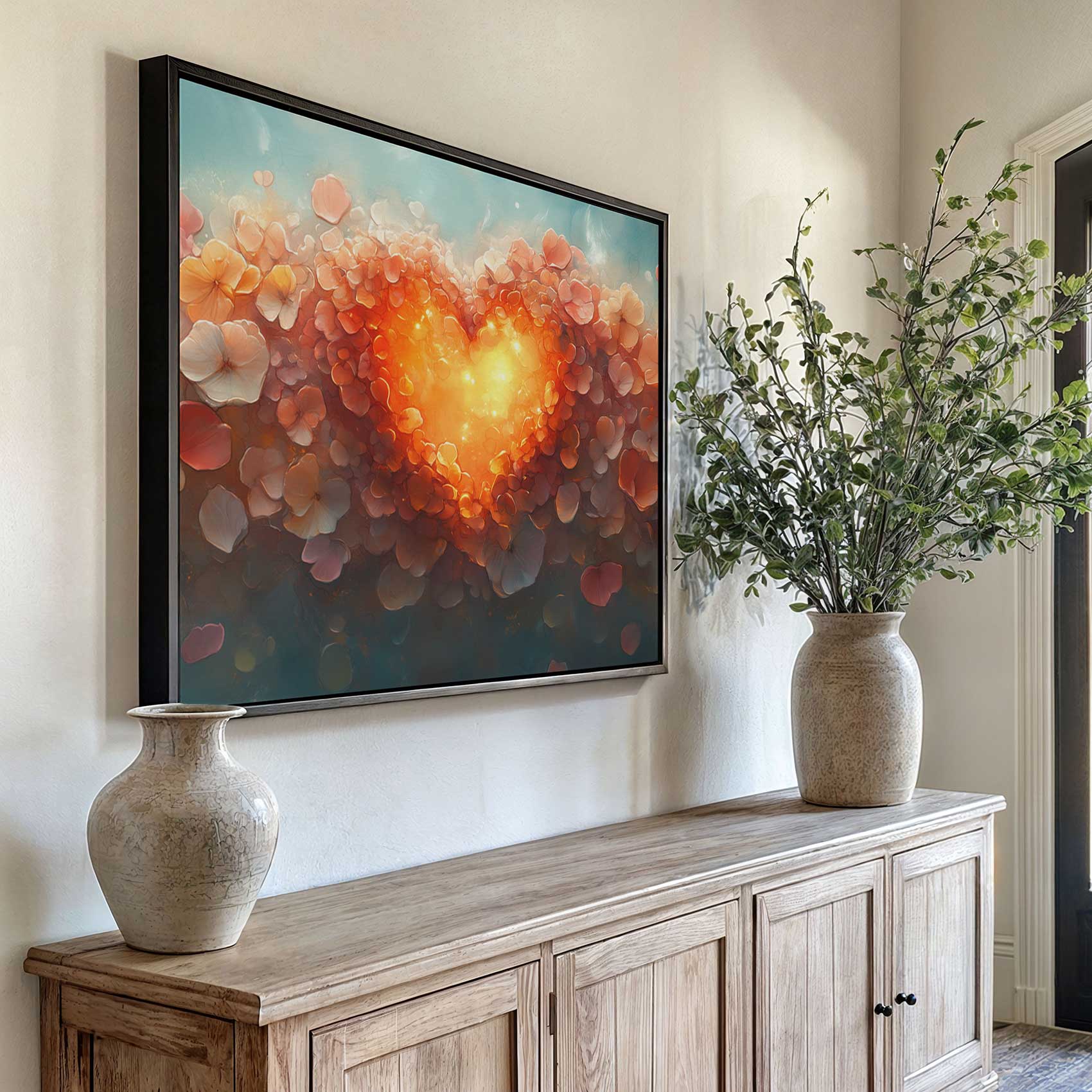 Terug naar collectie / Schilderijen / Abstract Schilderij / Gloeiend Hart met Bloemenpracht
