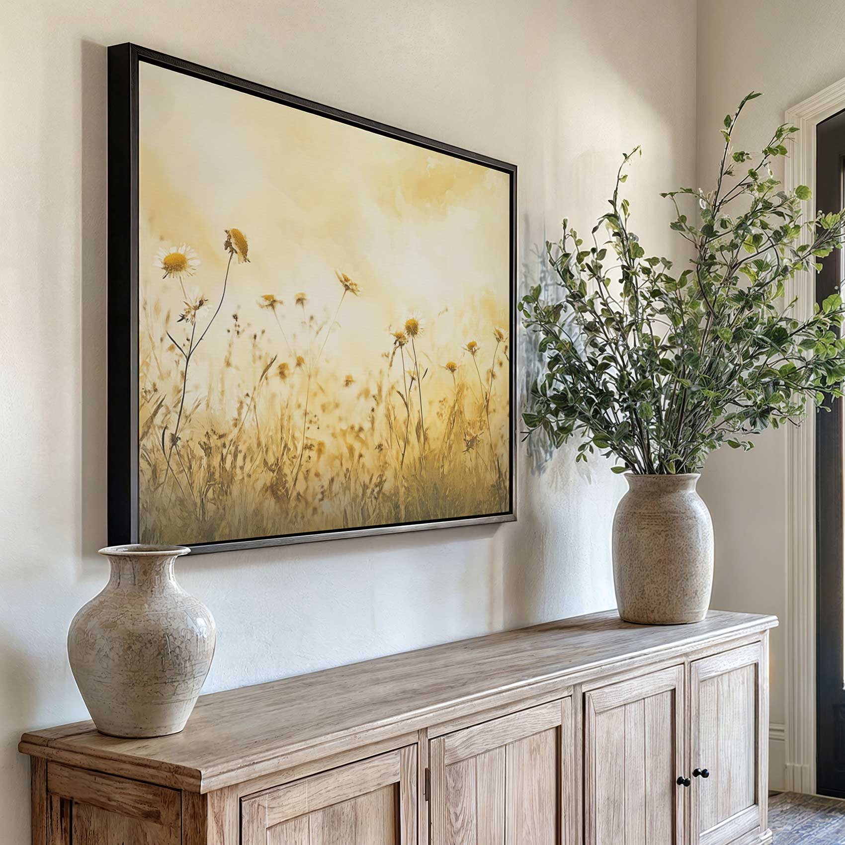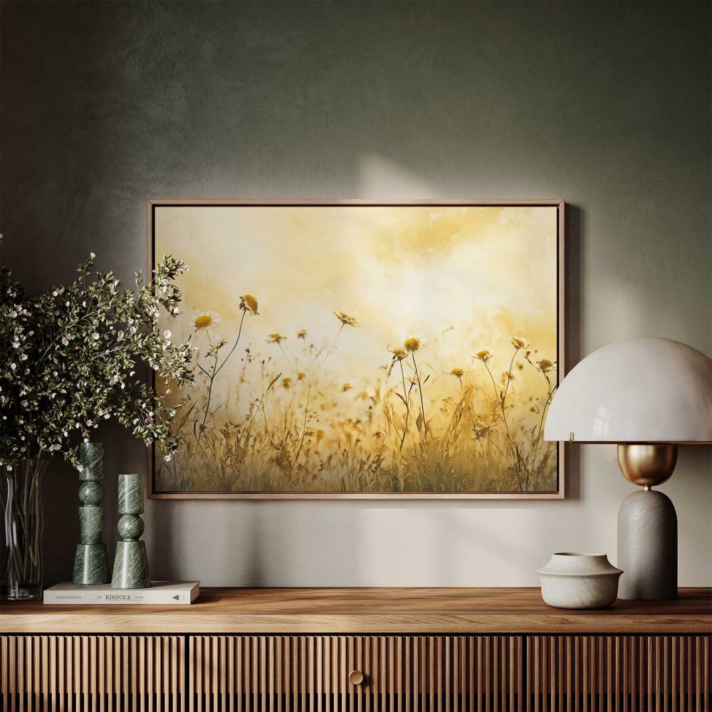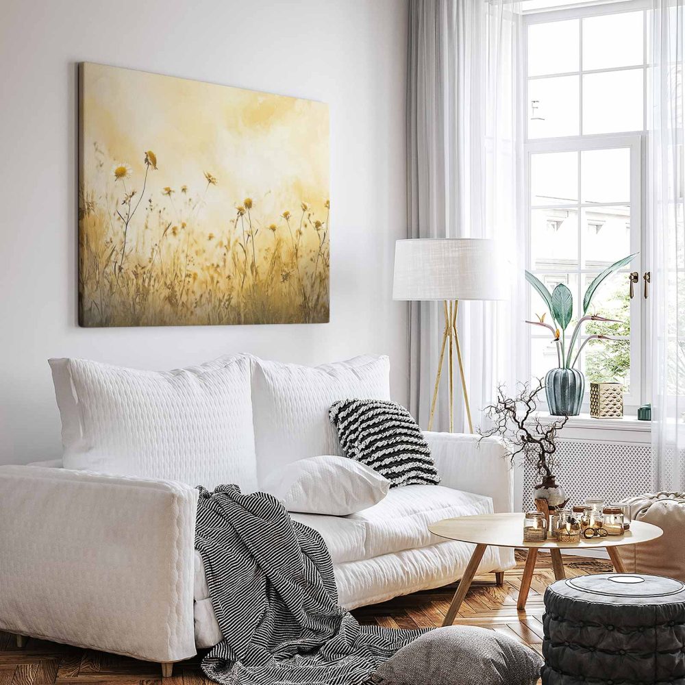 Terug naar collectie / Schilderijen / Bloemen Schilderij / Gouden Bloemenweide in Zonlicht