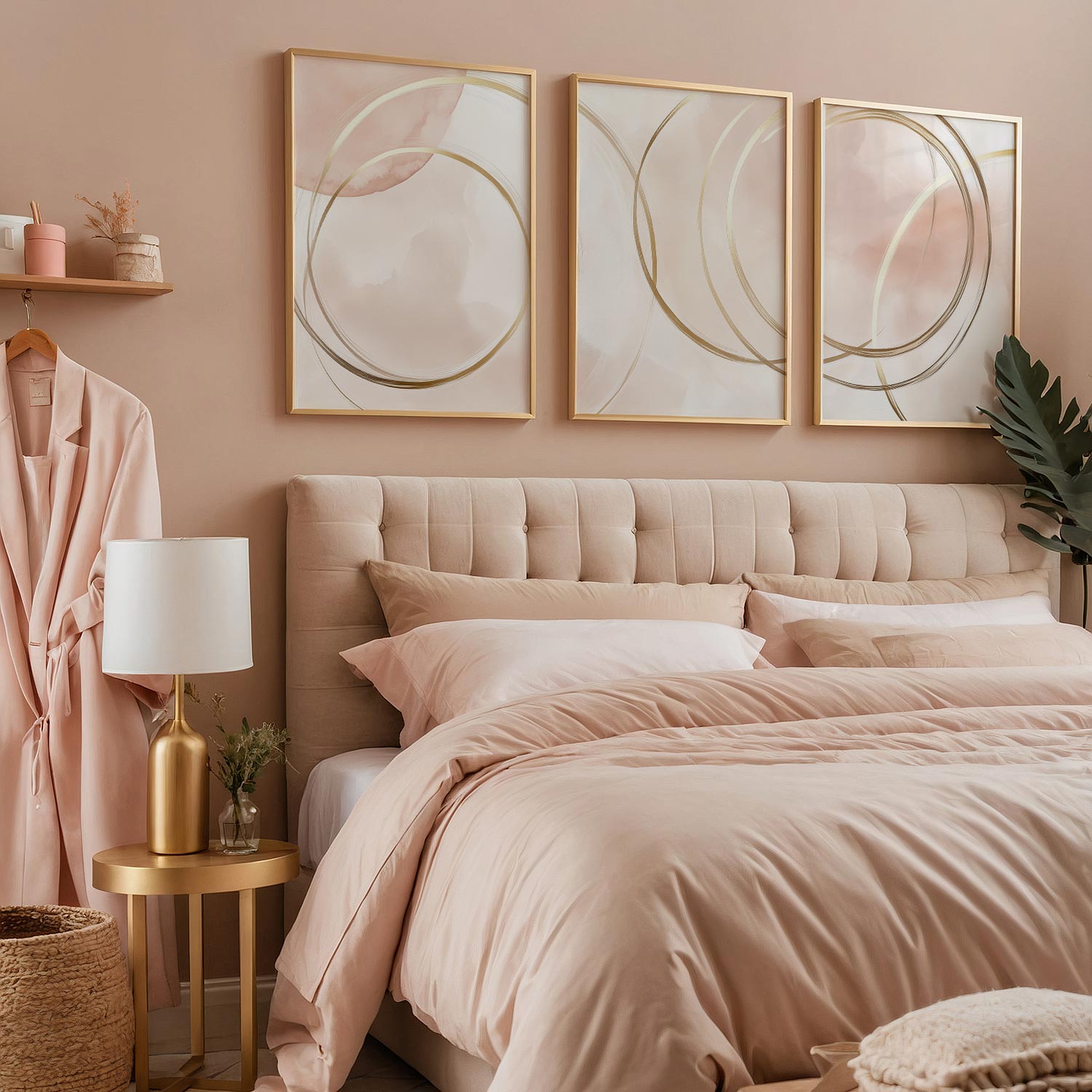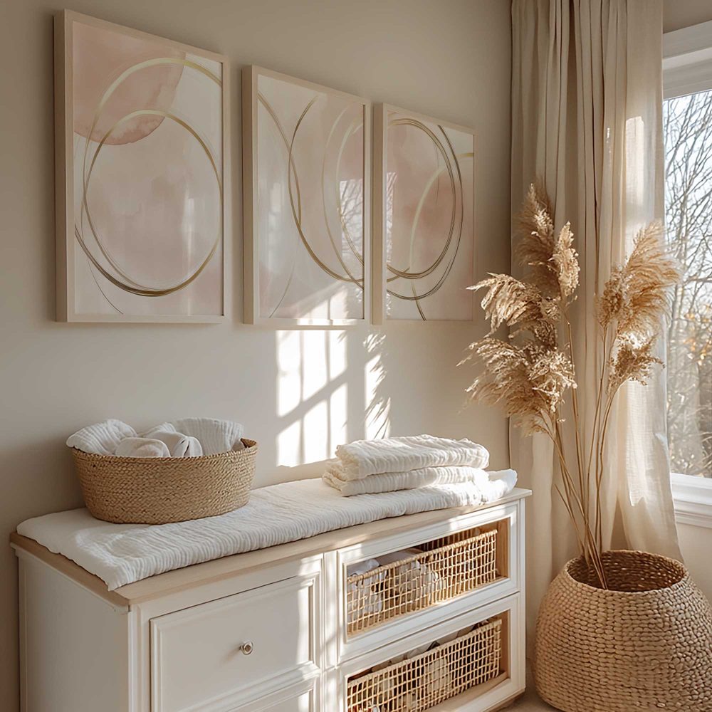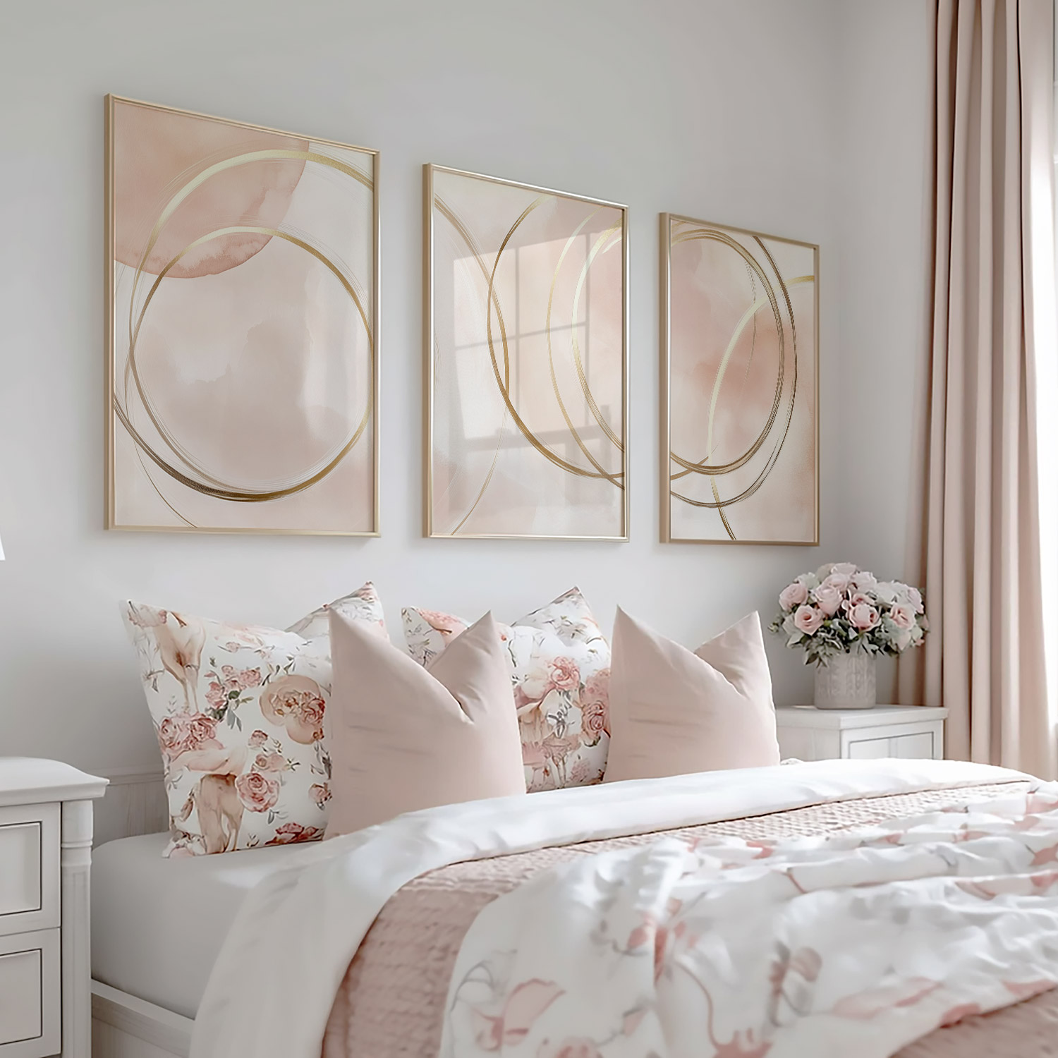Terug naar collectie / Kinderkamer posters / Gouden Cirkels op Roze – Speelse Elegantie