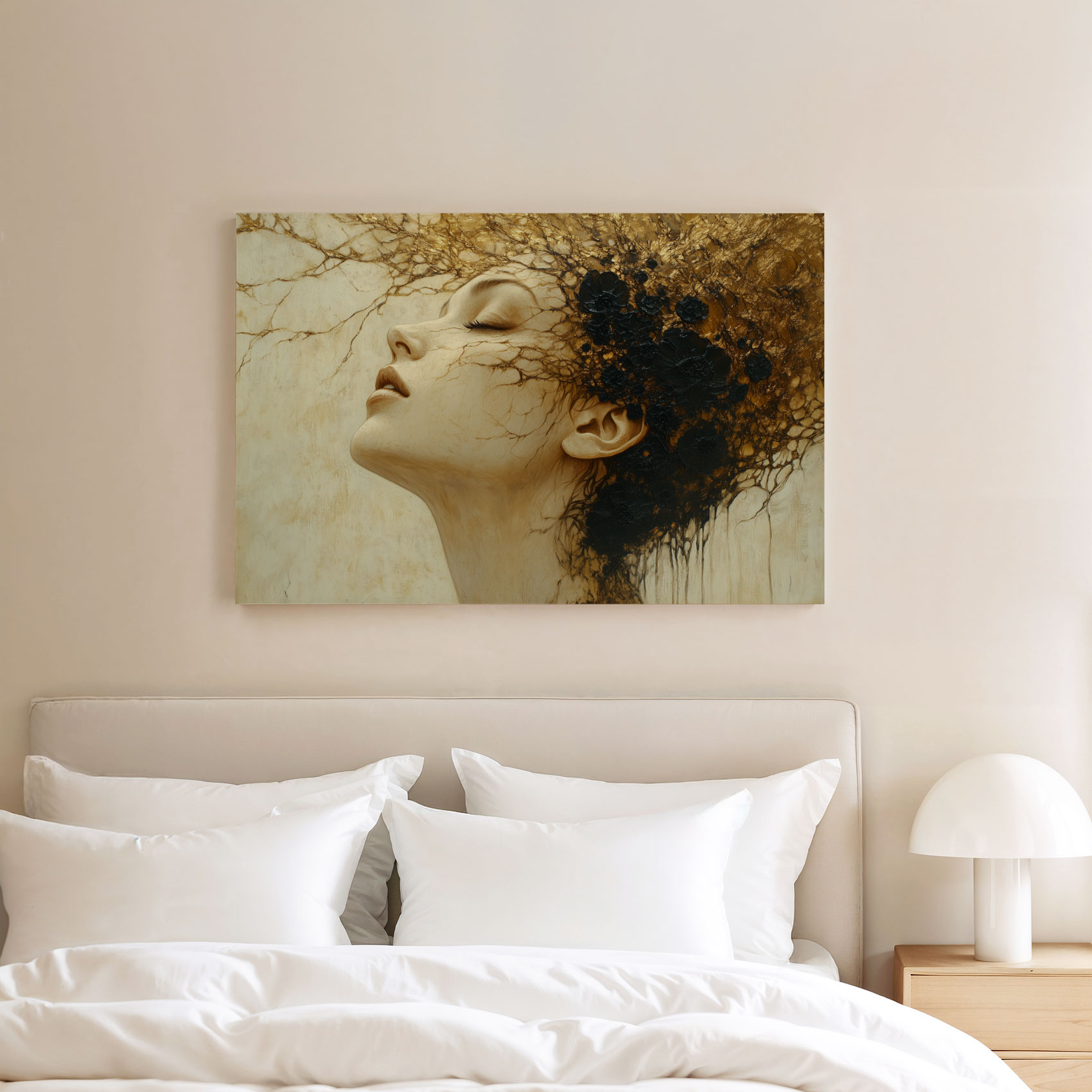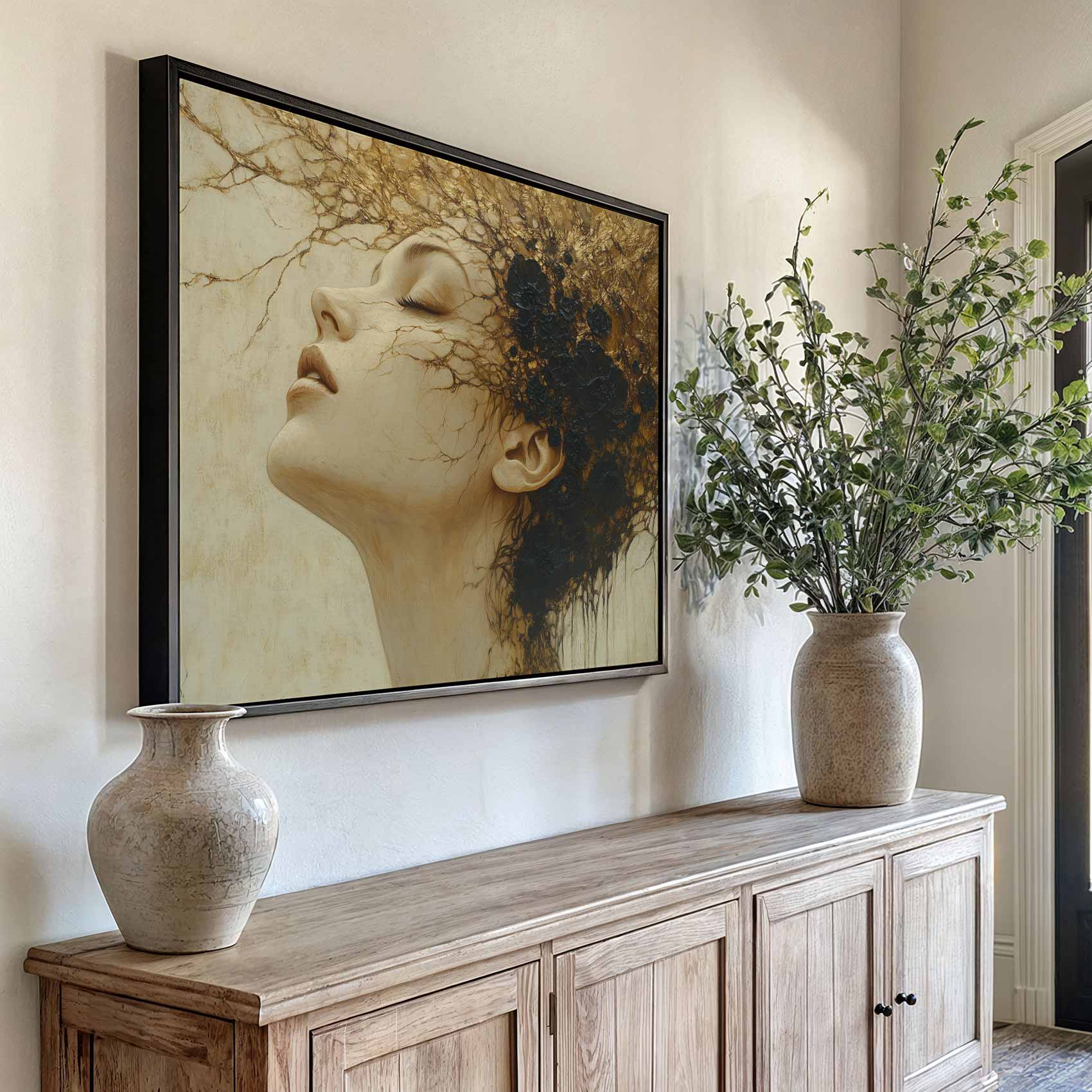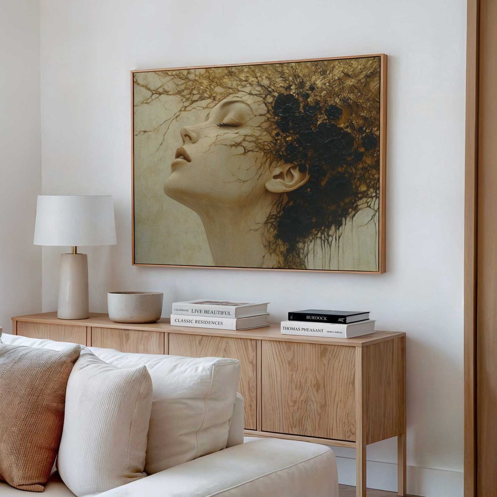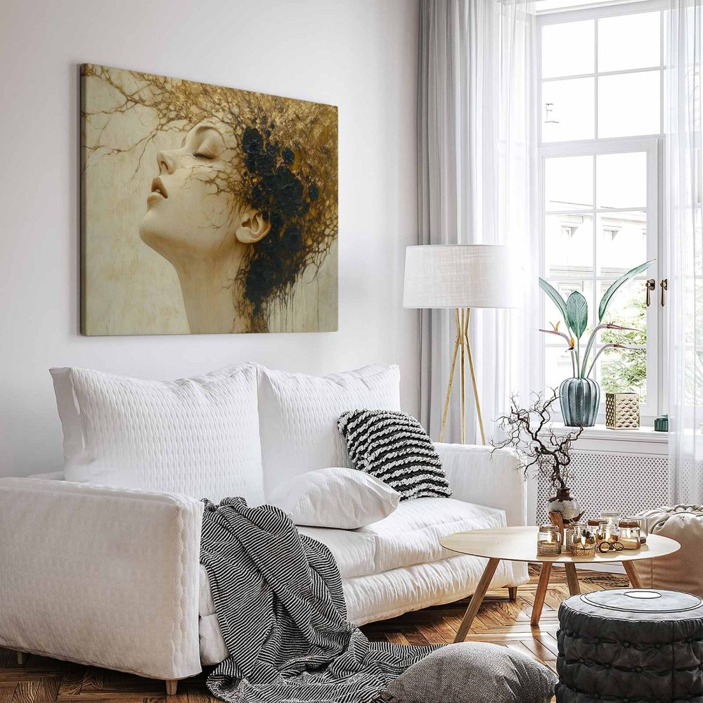 Terug naar collectie / Schilderijen / Abstract Schilderij / Gouden contemplatieve vrouwportret