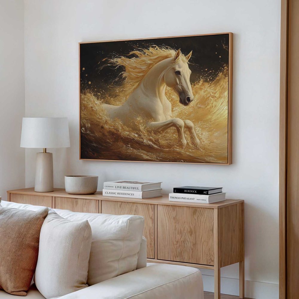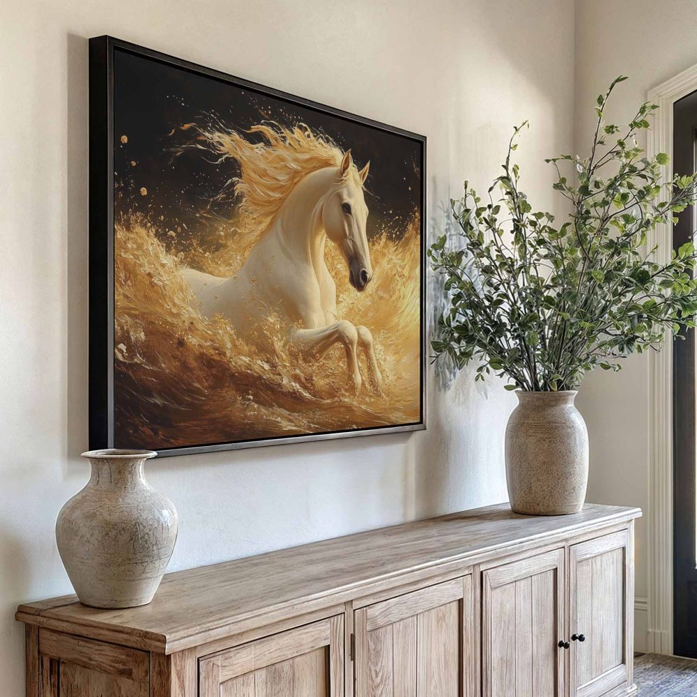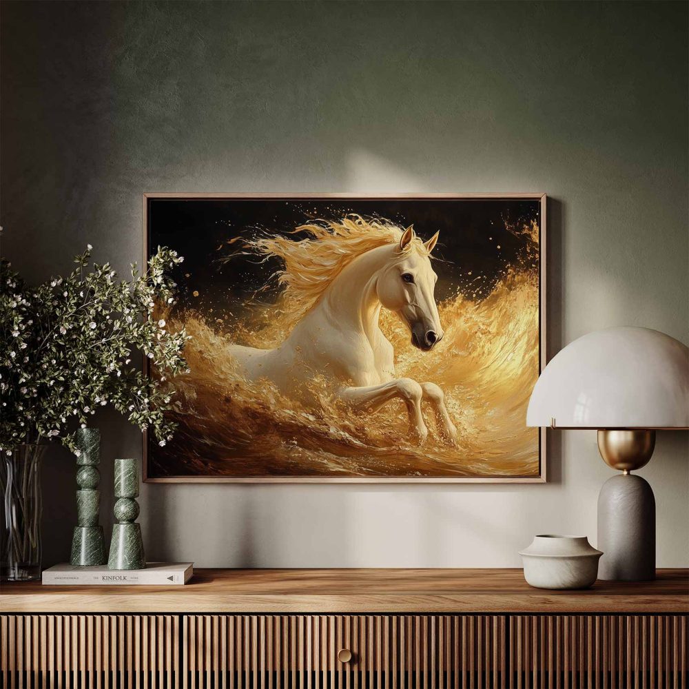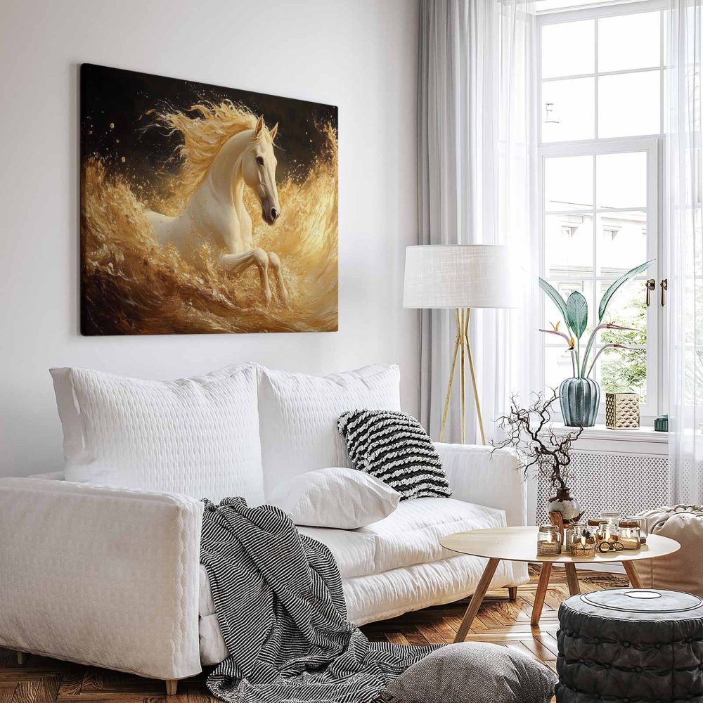 Terug naar collectie / Schilderijen / Dieren Schilderij / Gouden Galopperende Paard
