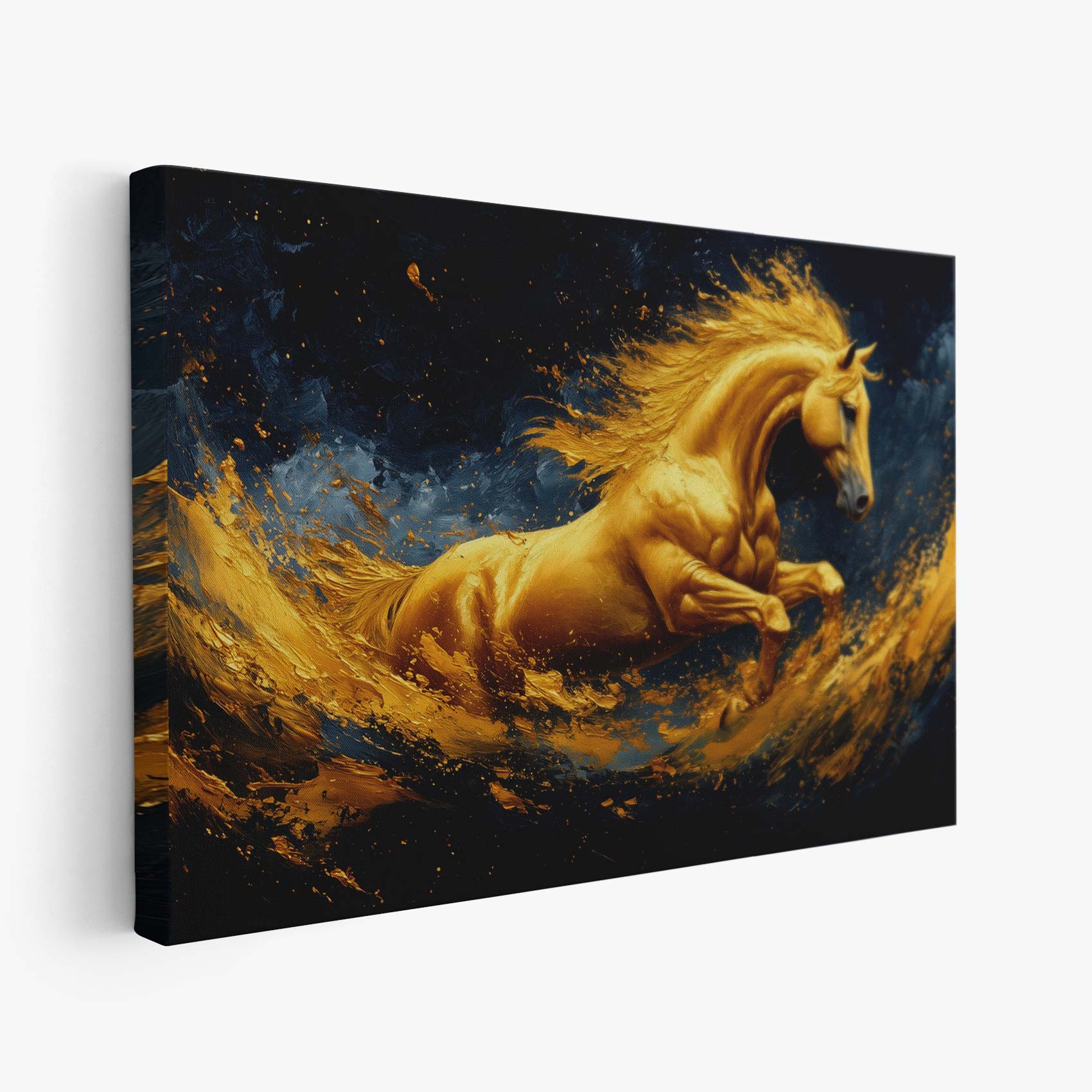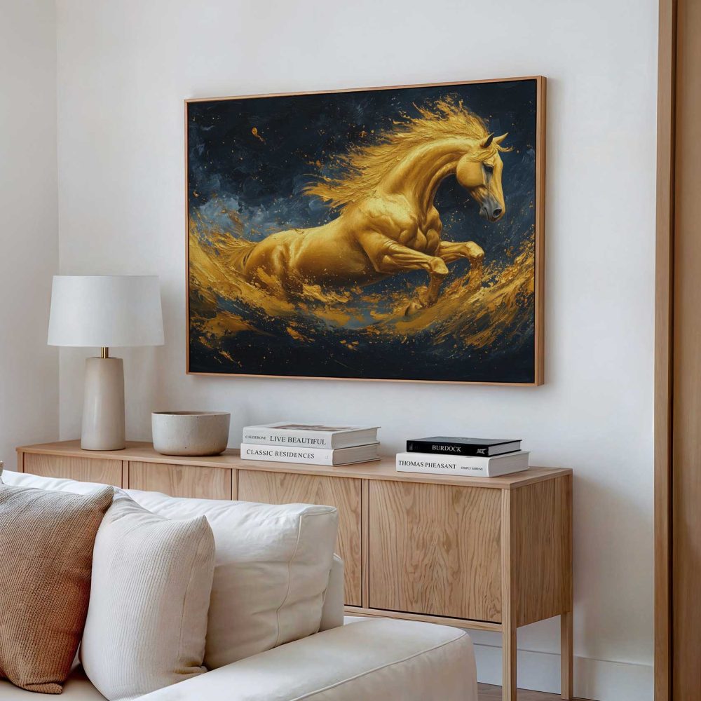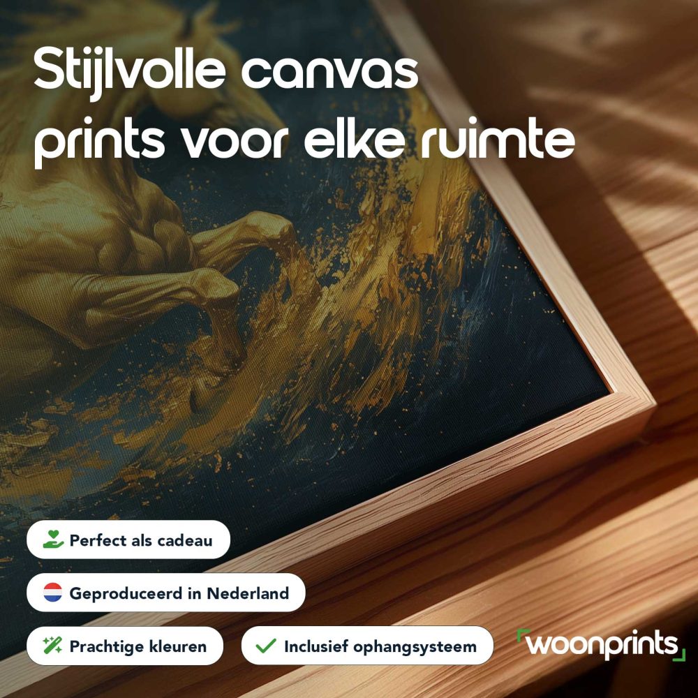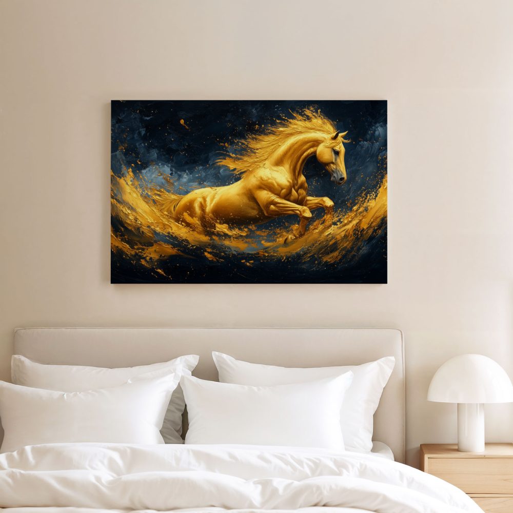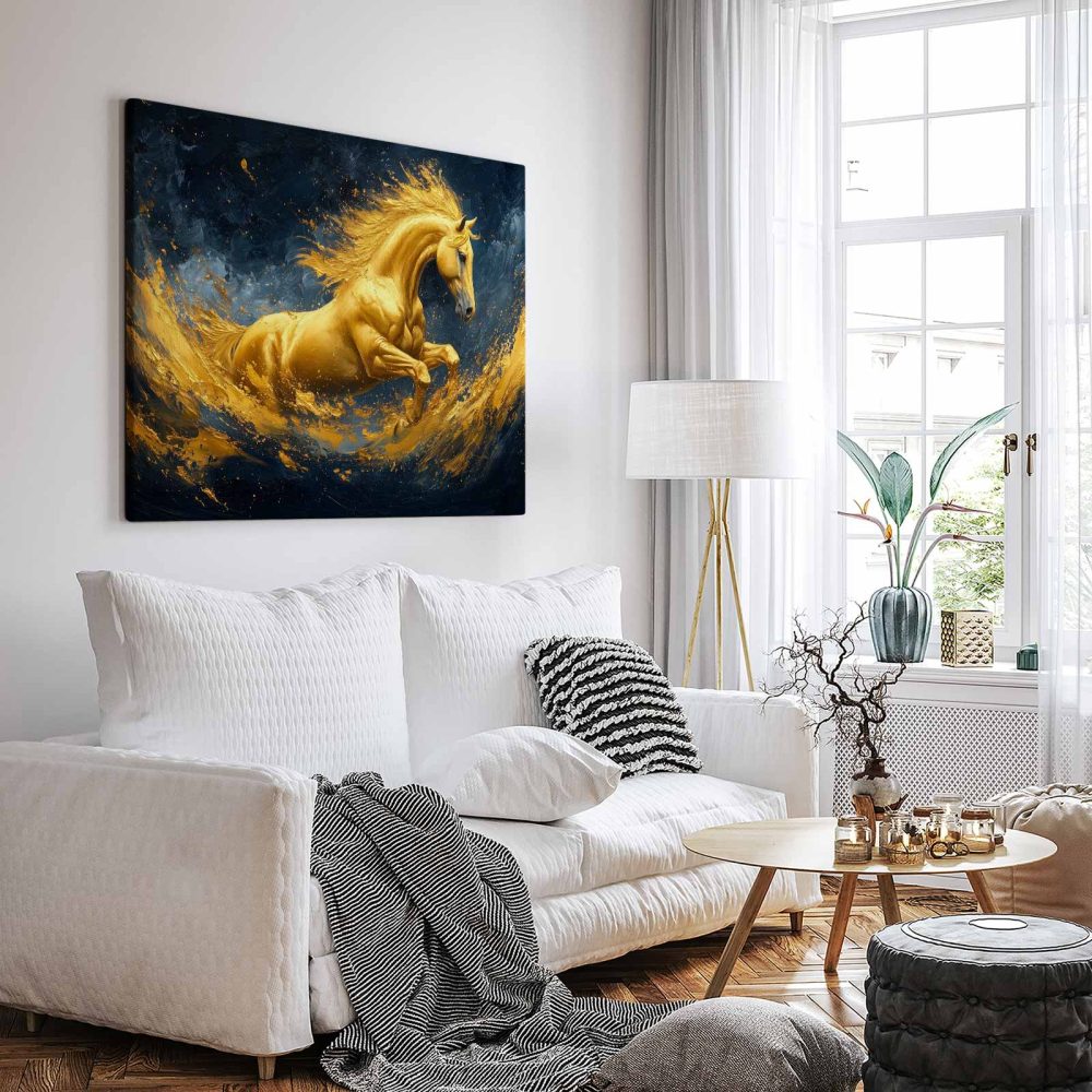 Terug naar collectie / Schilderijen / Abstract Schilderij / Gouden galopperende vlammenpaard