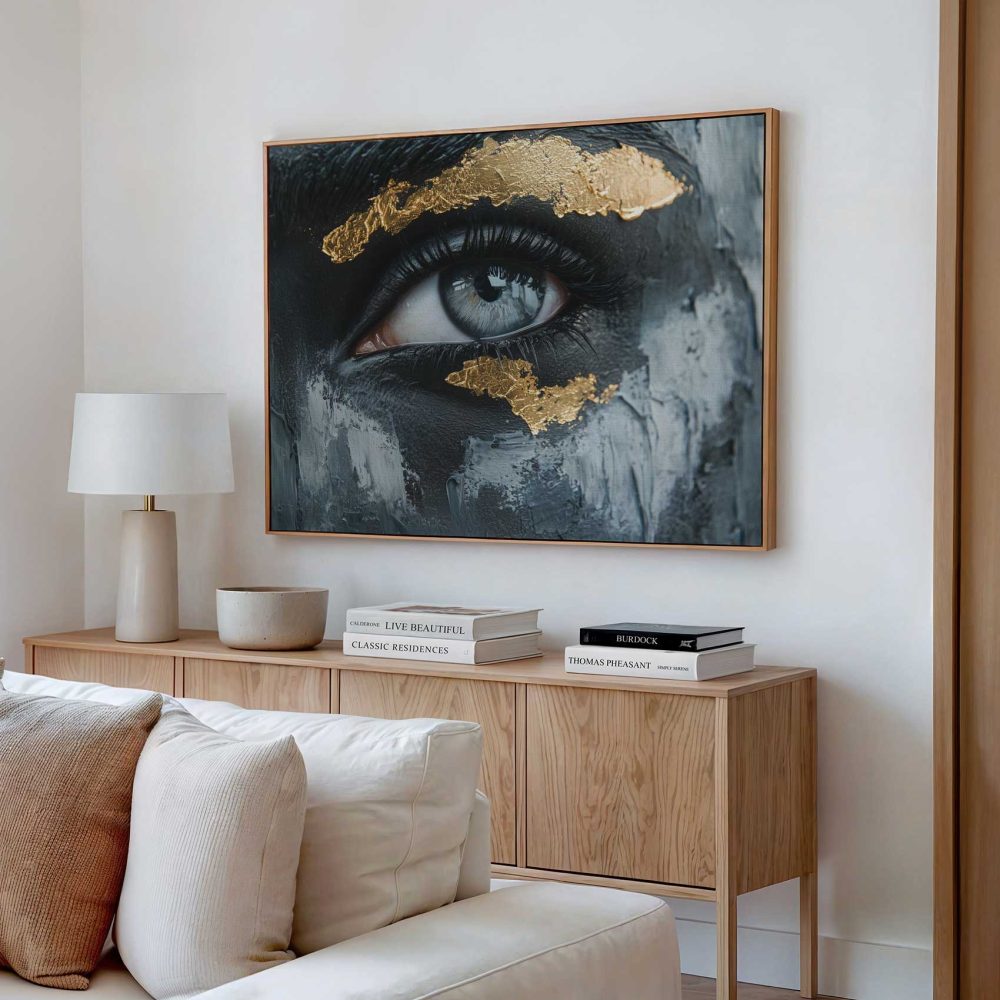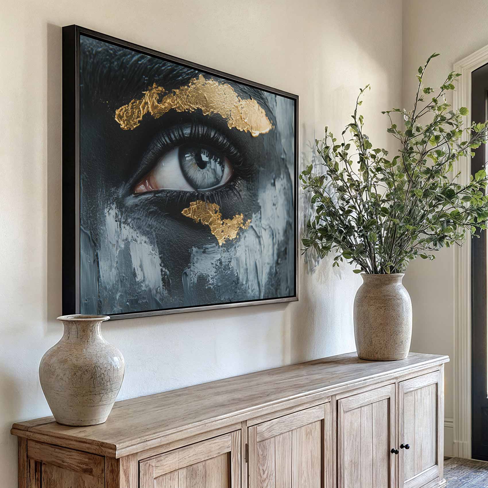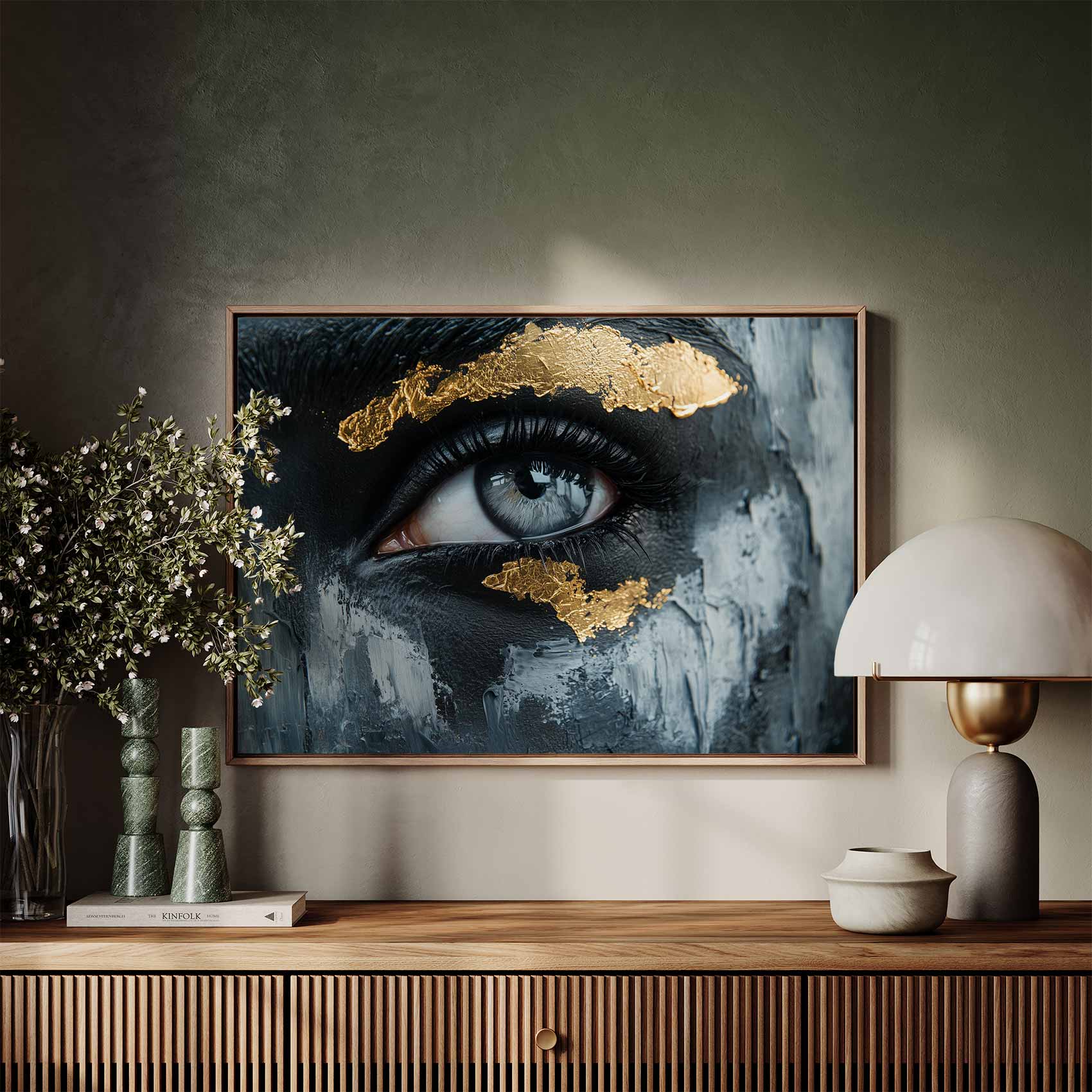 Terug naar collectie / Schilderijen / Abstract Schilderij / Gouden Glamour Oogmake-up