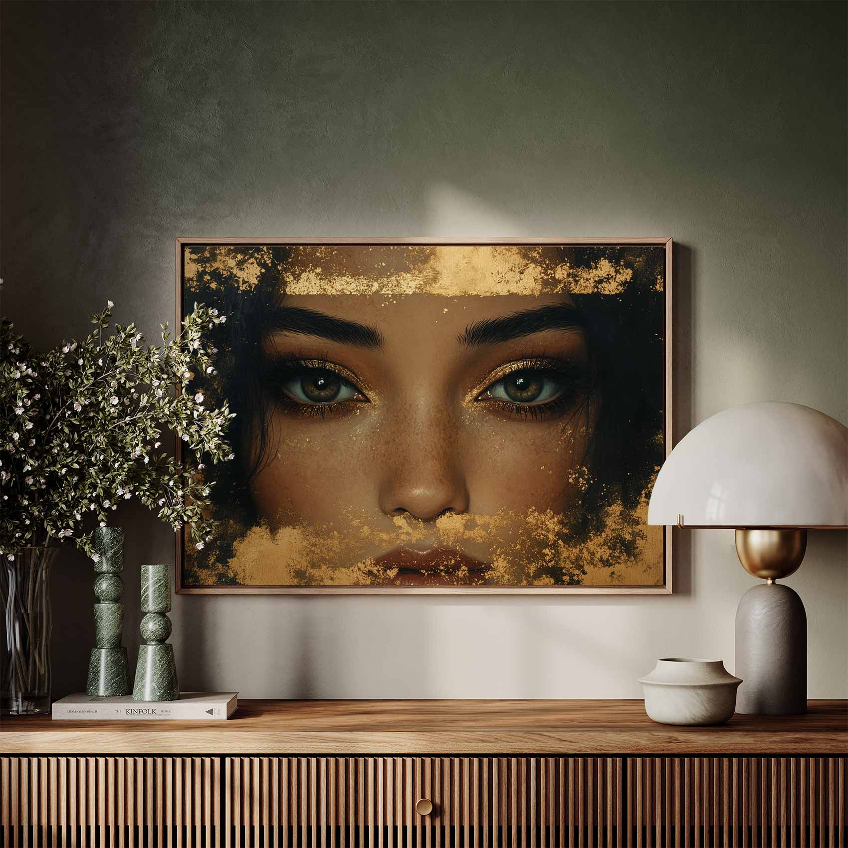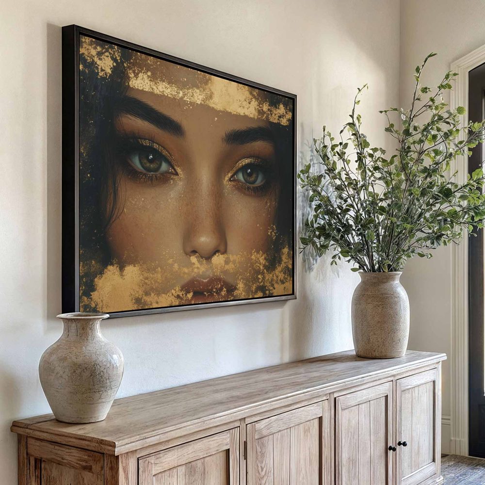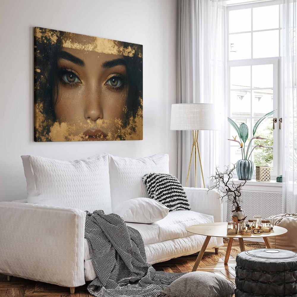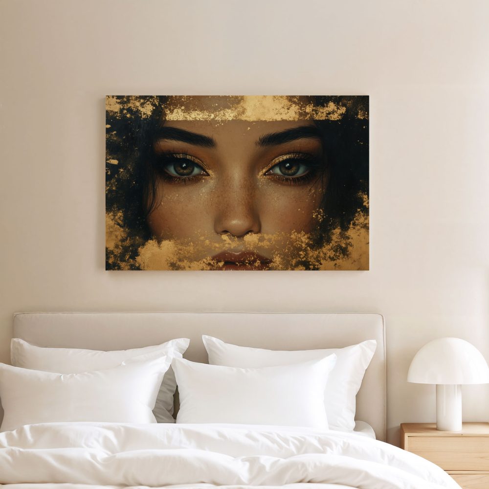 Terug naar collectie / Schilderijen / Exotisch Schilderij / Gouden Glitter Glamour Gezicht