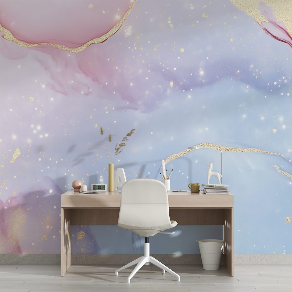 Terug naar collectie / Behang / Abstract behang / Gouden Glitter Roze Blauw behang