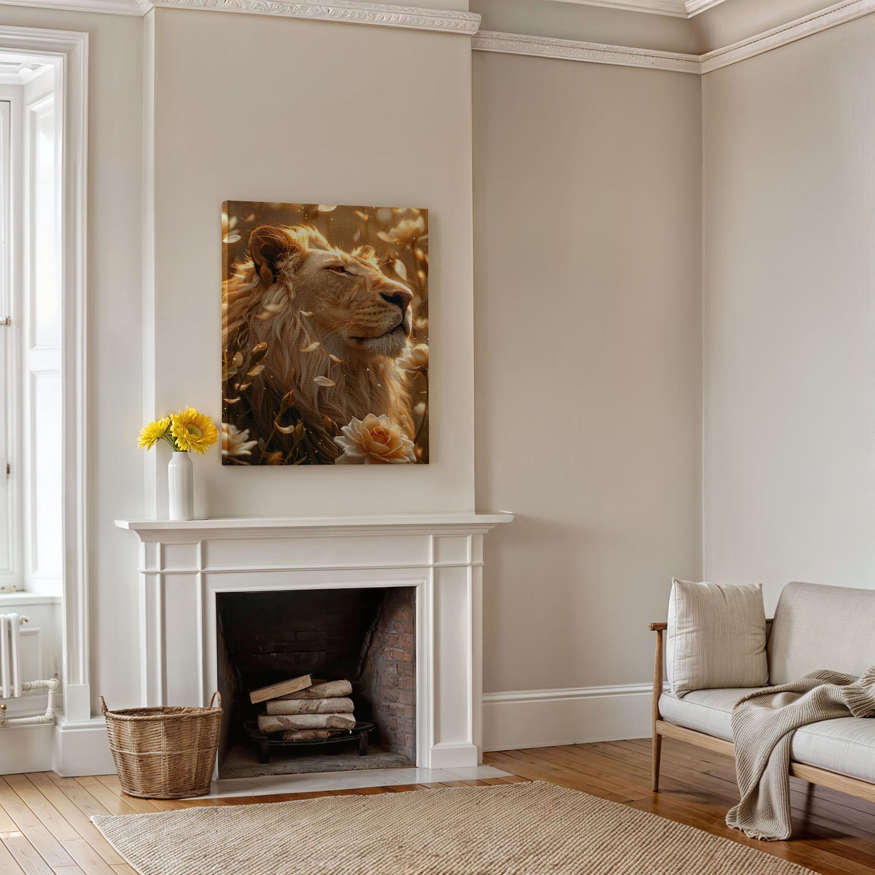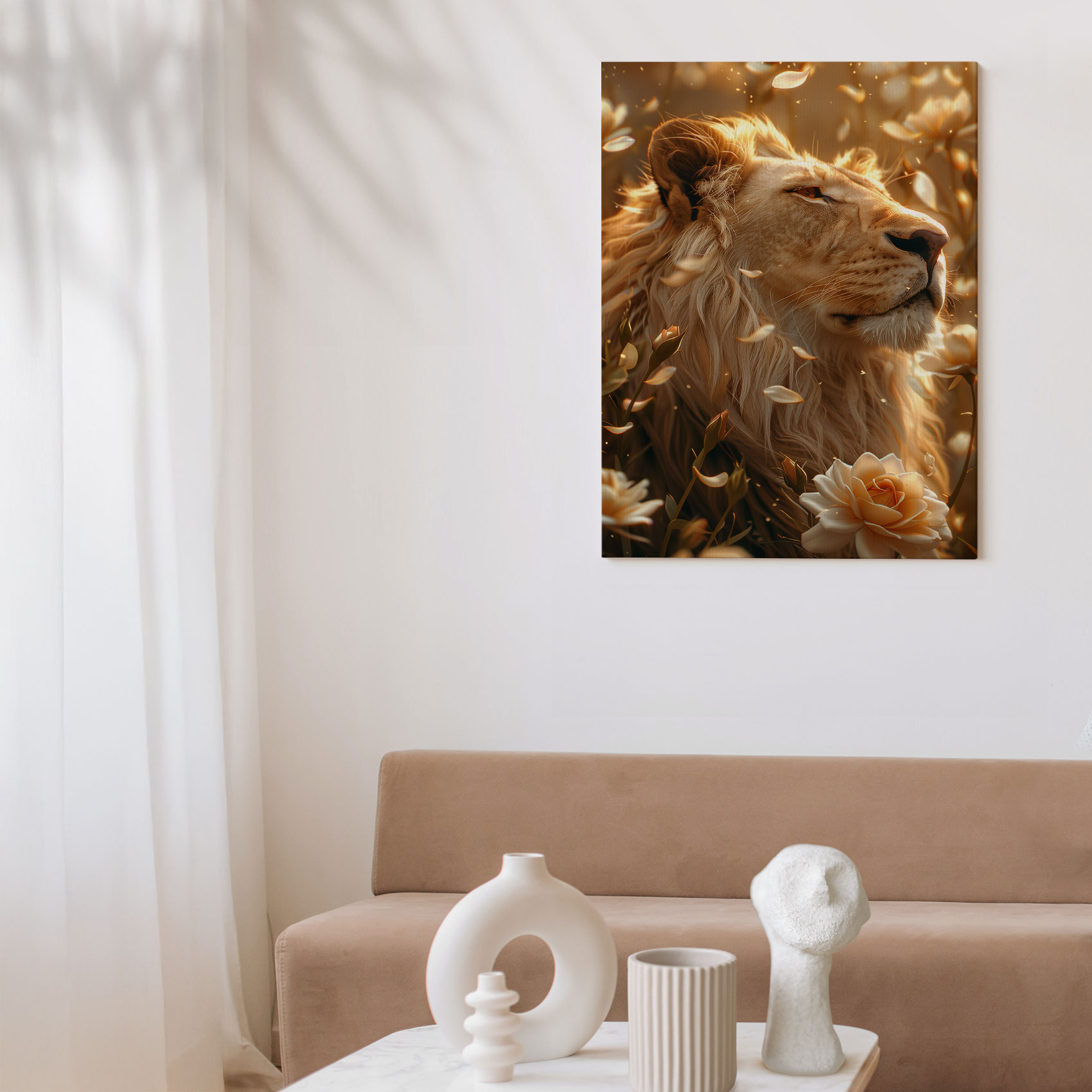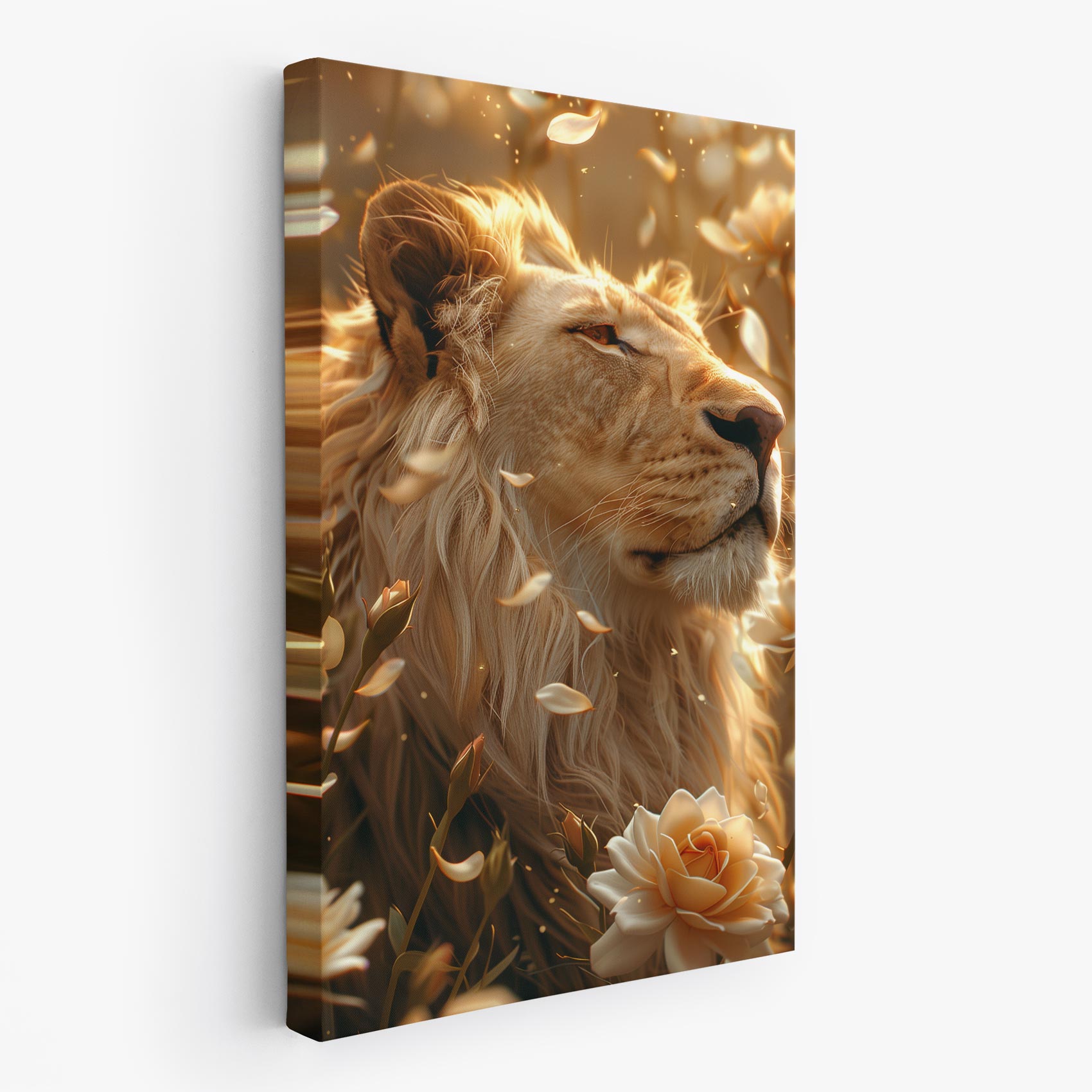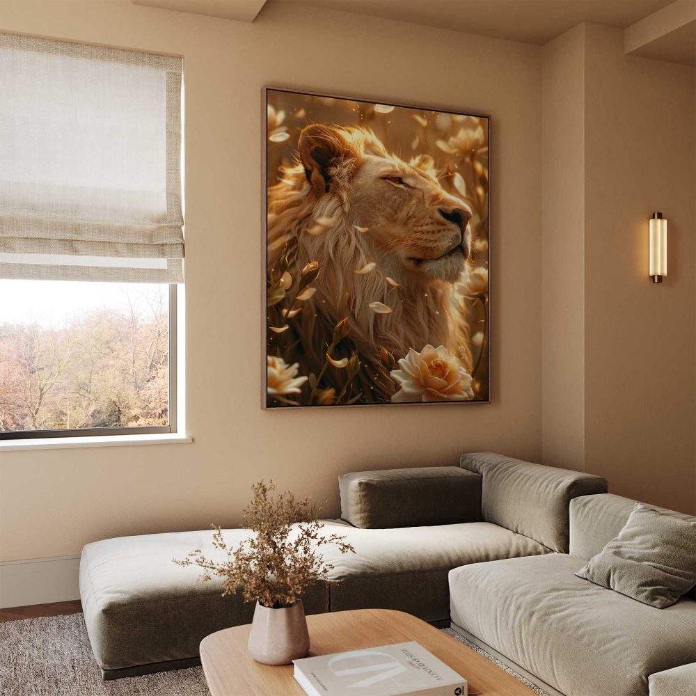 Terug naar collectie / Schilderijen / Bloemen Schilderij / Gouden leeuw in bloemenveld