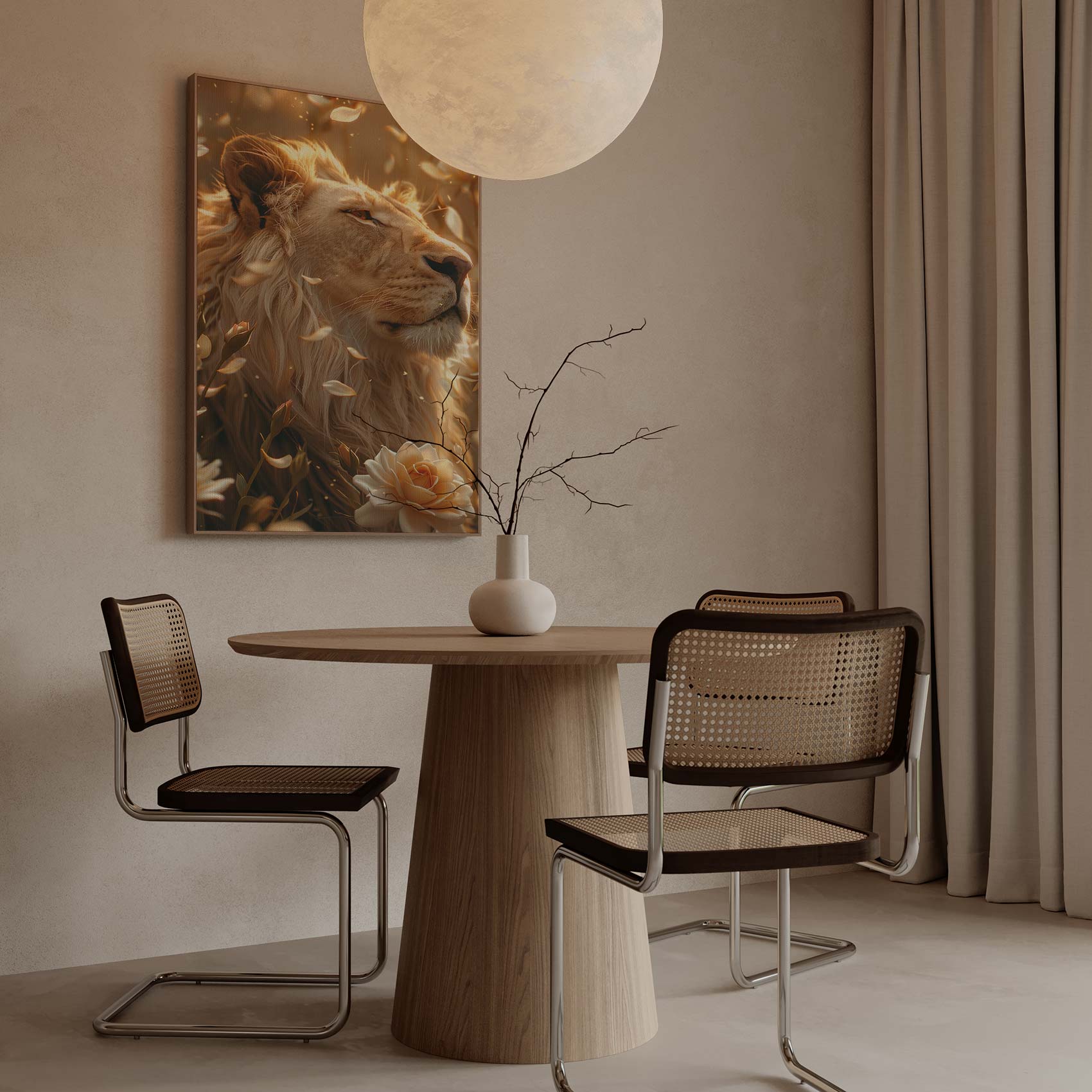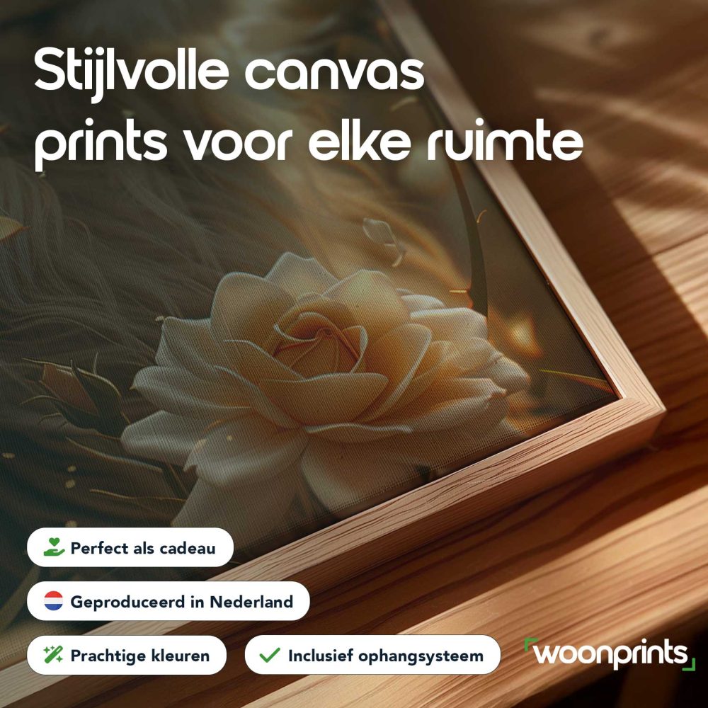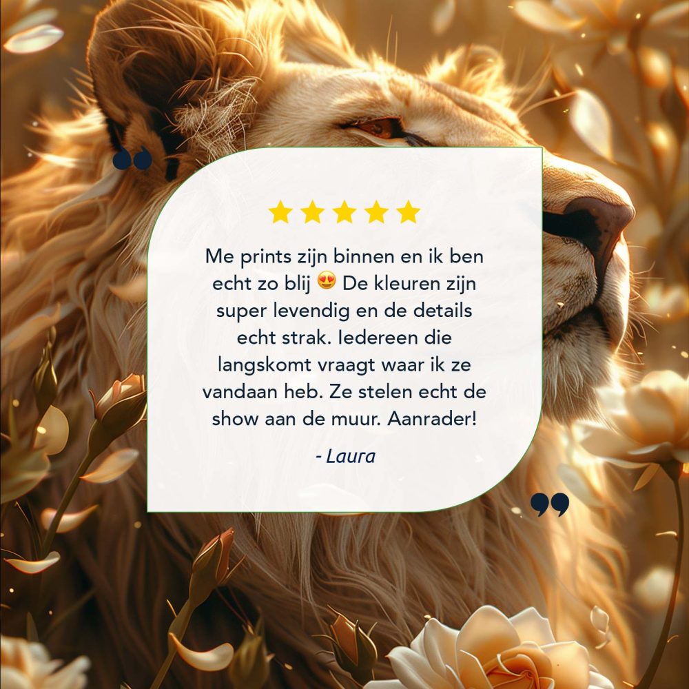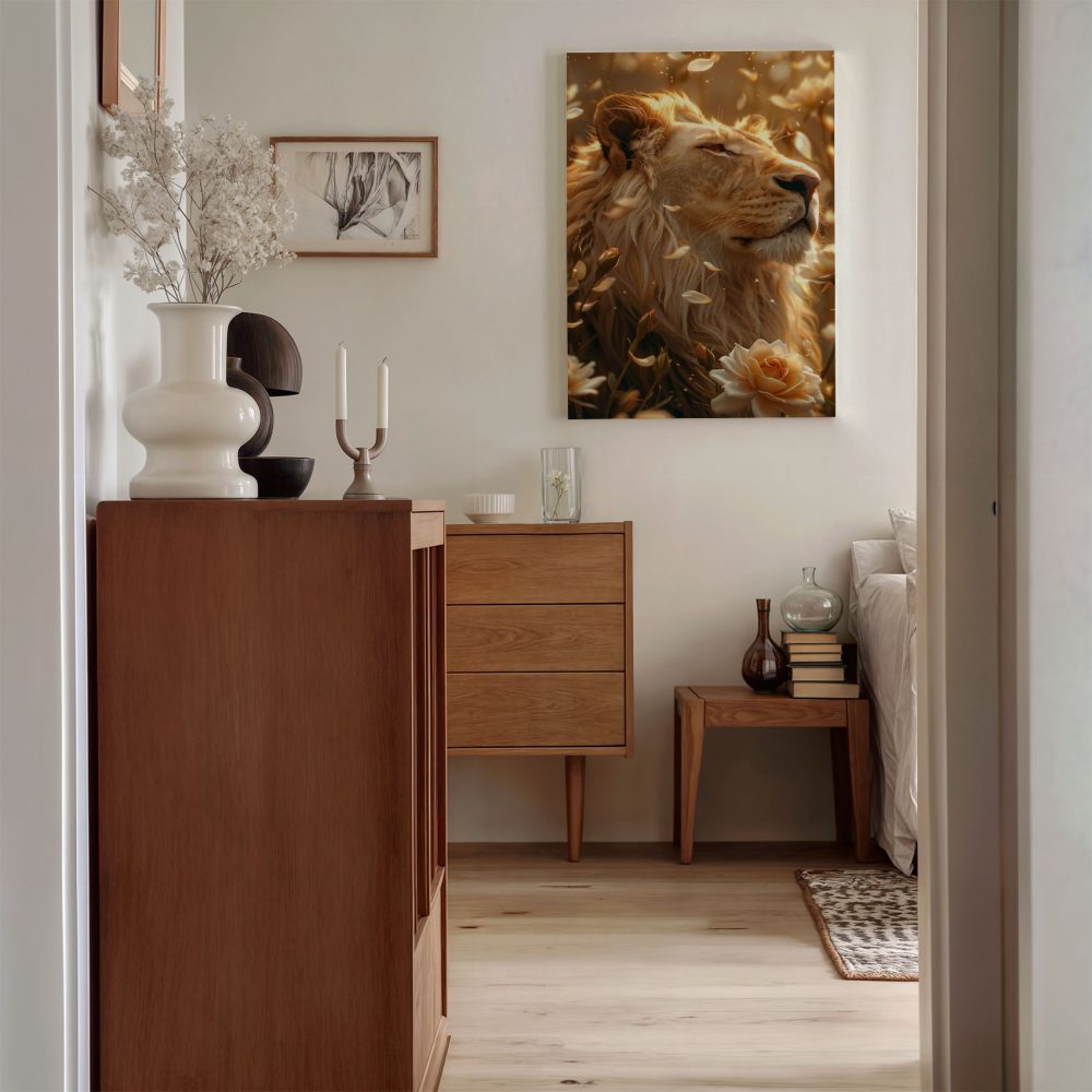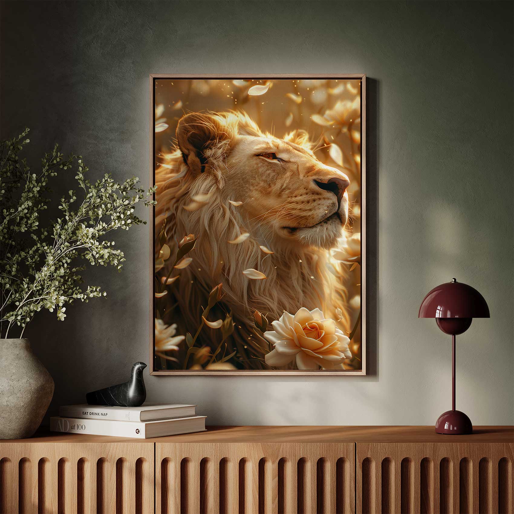Terug naar collectie / Schilderijen / Bloemen Schilderij / Gouden leeuw in bloemenveld