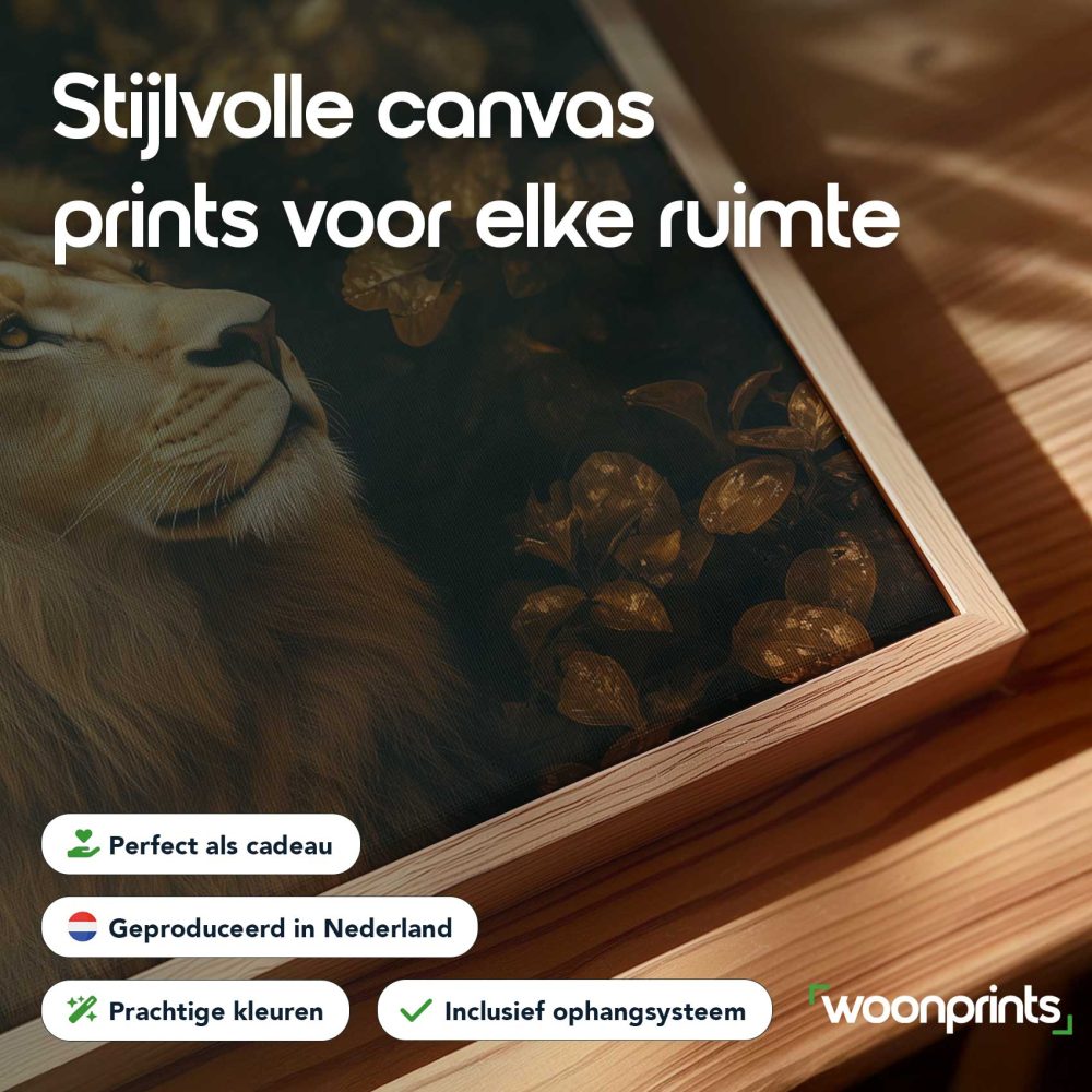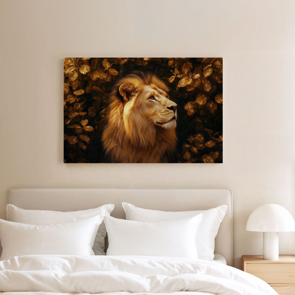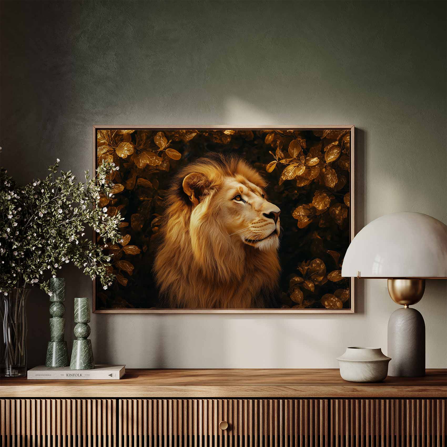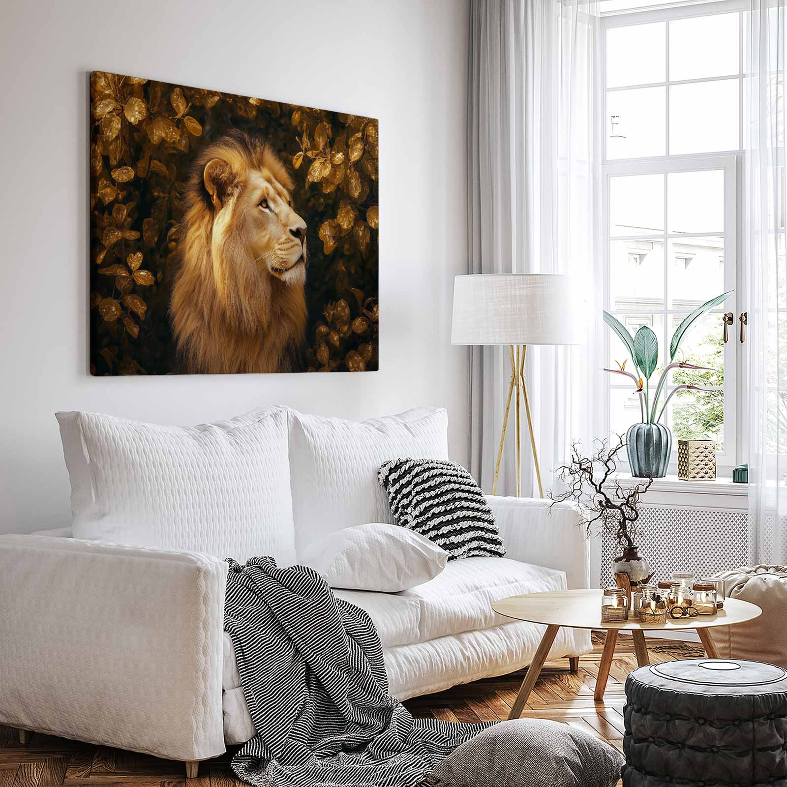 Terug naar collectie / Schilderijen / Bloemen Schilderij / Gouden leeuw in groen woud