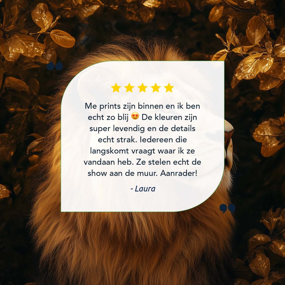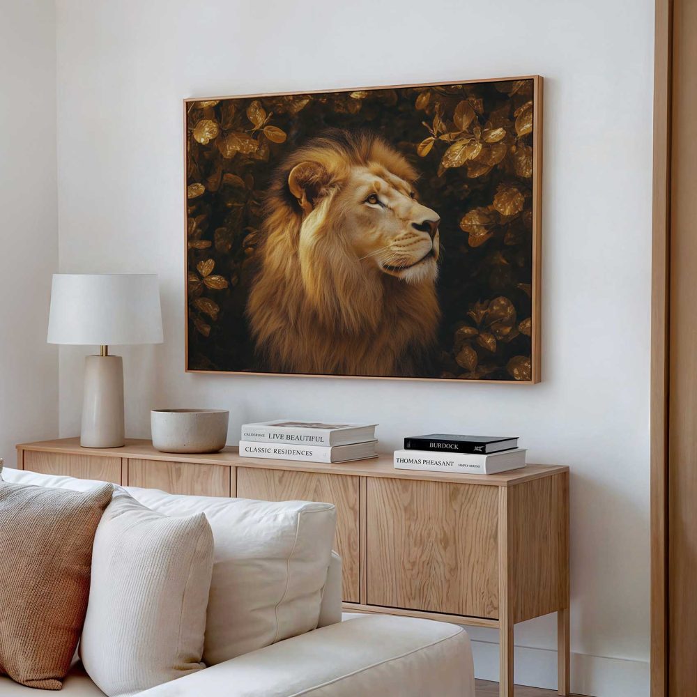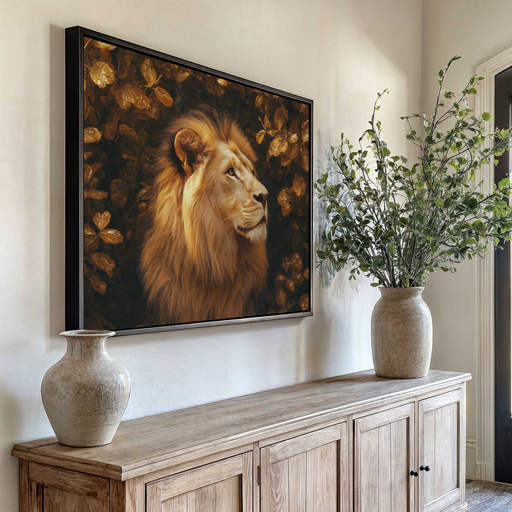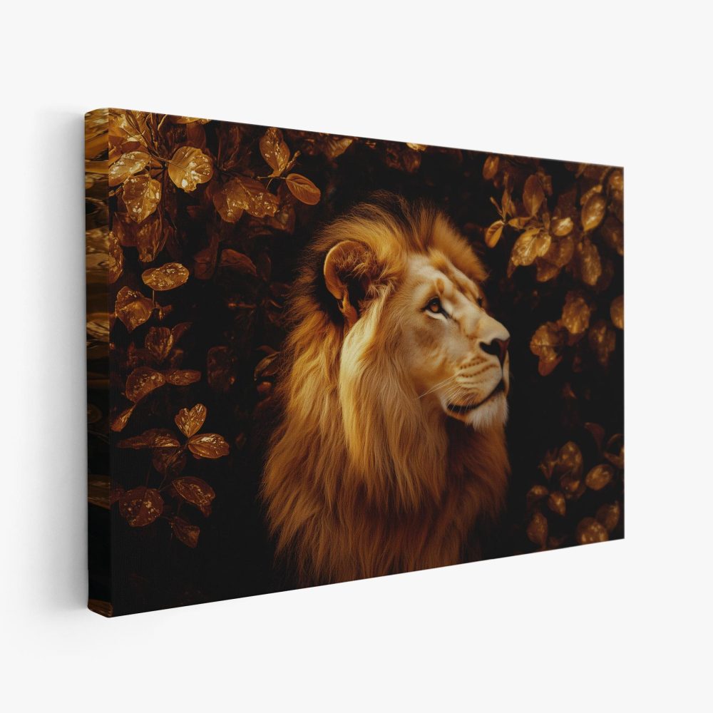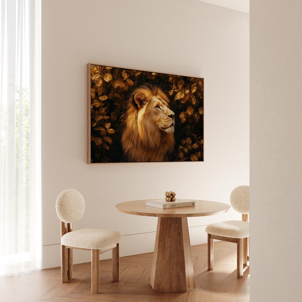 Terug naar collectie / Schilderijen / Bloemen Schilderij / Gouden leeuw in groen woud