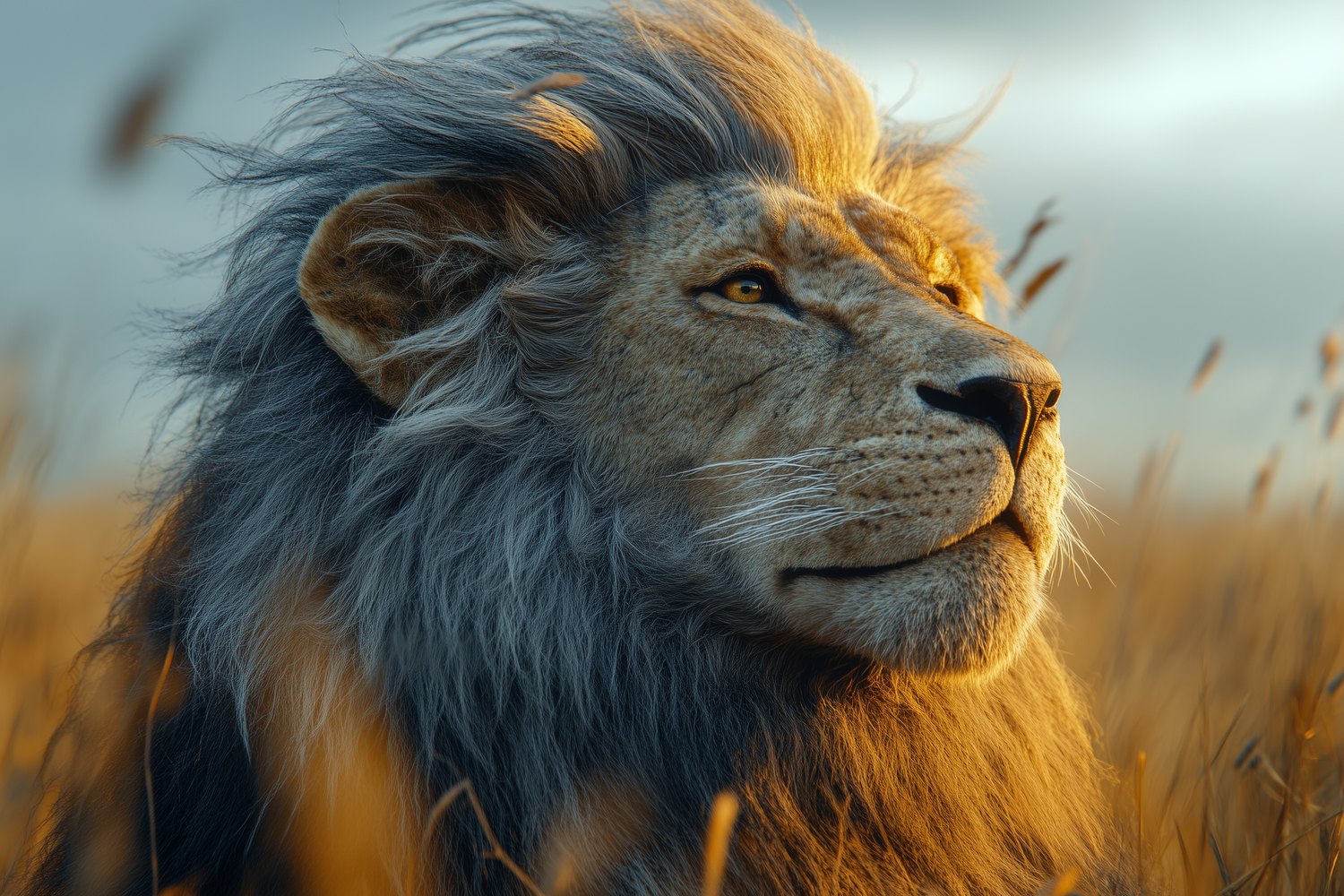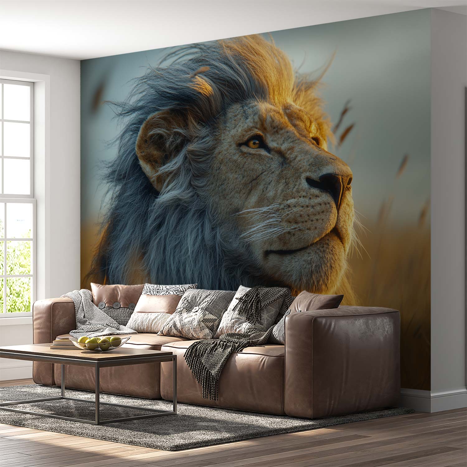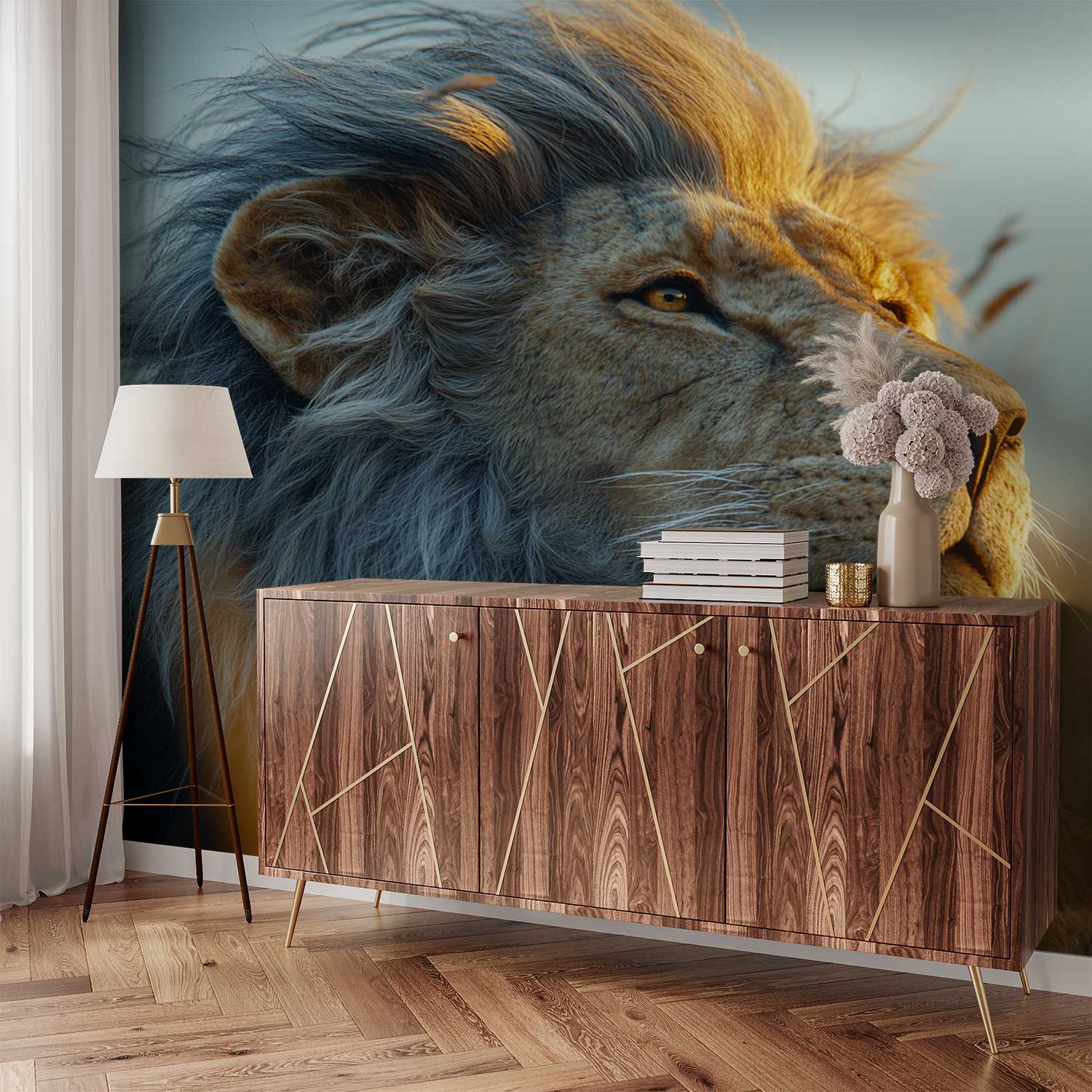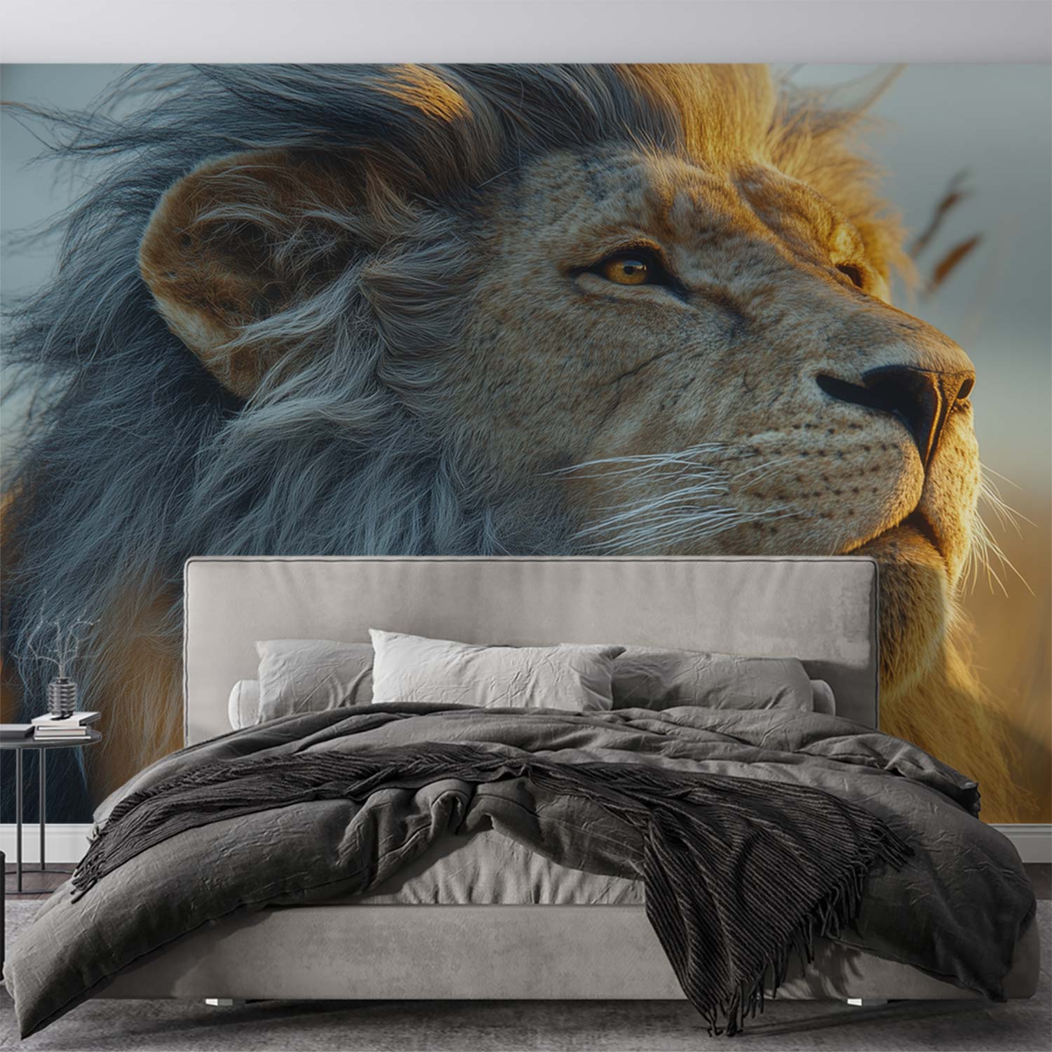 Terug naar collectie / Behang / Gouden leeuw in savanne behang